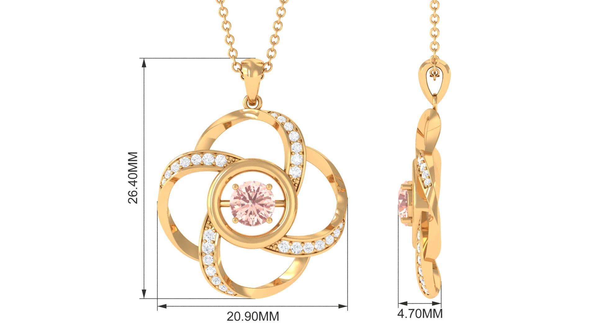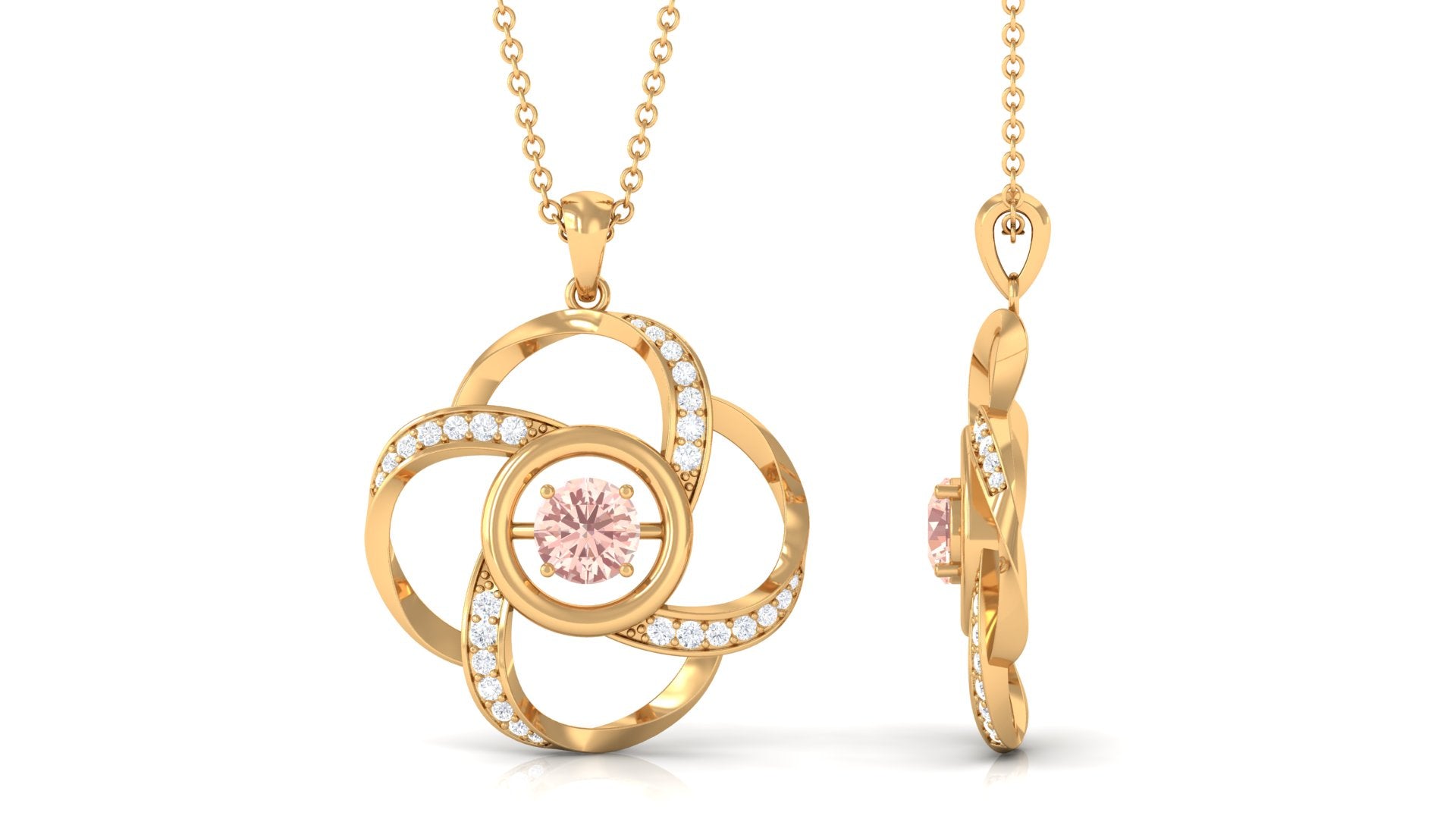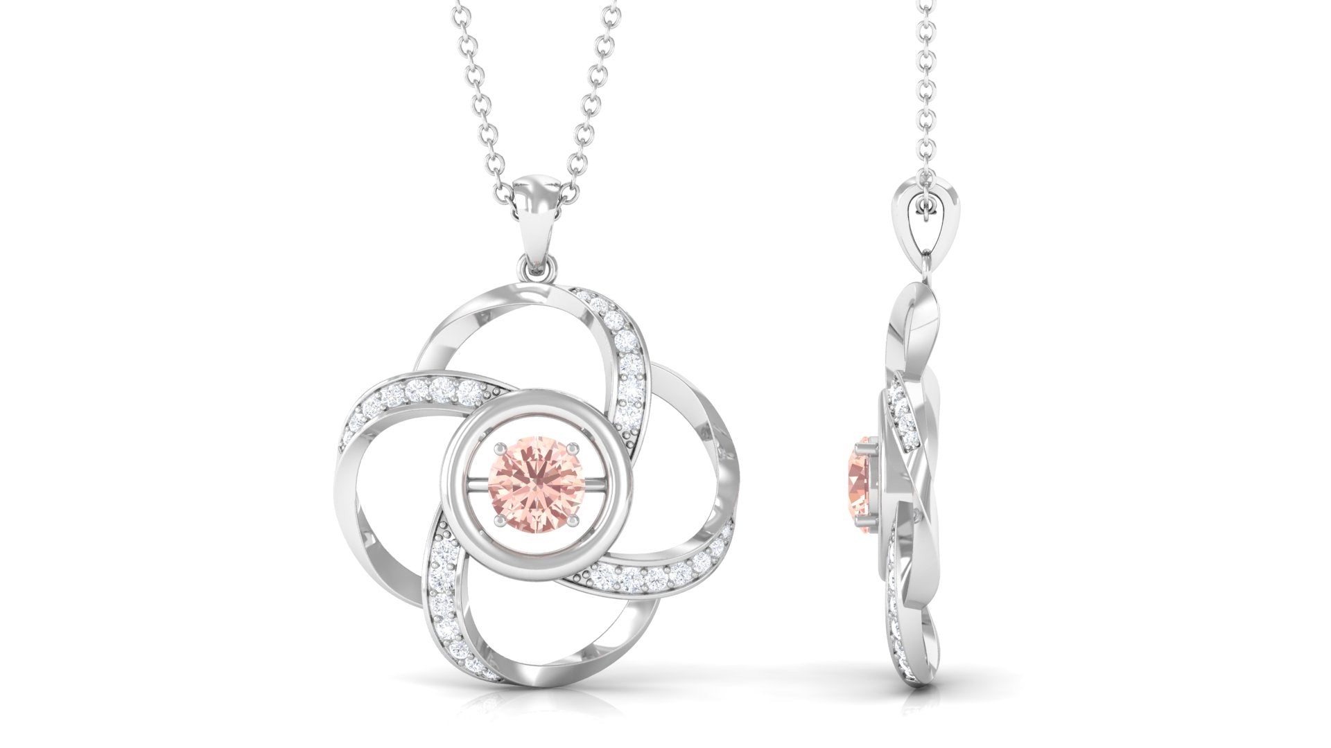 Perfect to wear on any occasion, this Floral Pendant Necklace is embellished with a Round Shape Morganite in the center while dainty Round Diamond studded on a Floral Design. The Morganite Pendant will complement your casual or dressy attire with ease. Give our fantastic Flower Pendant Necklace to your love as a birthday present to make her heart flutter.