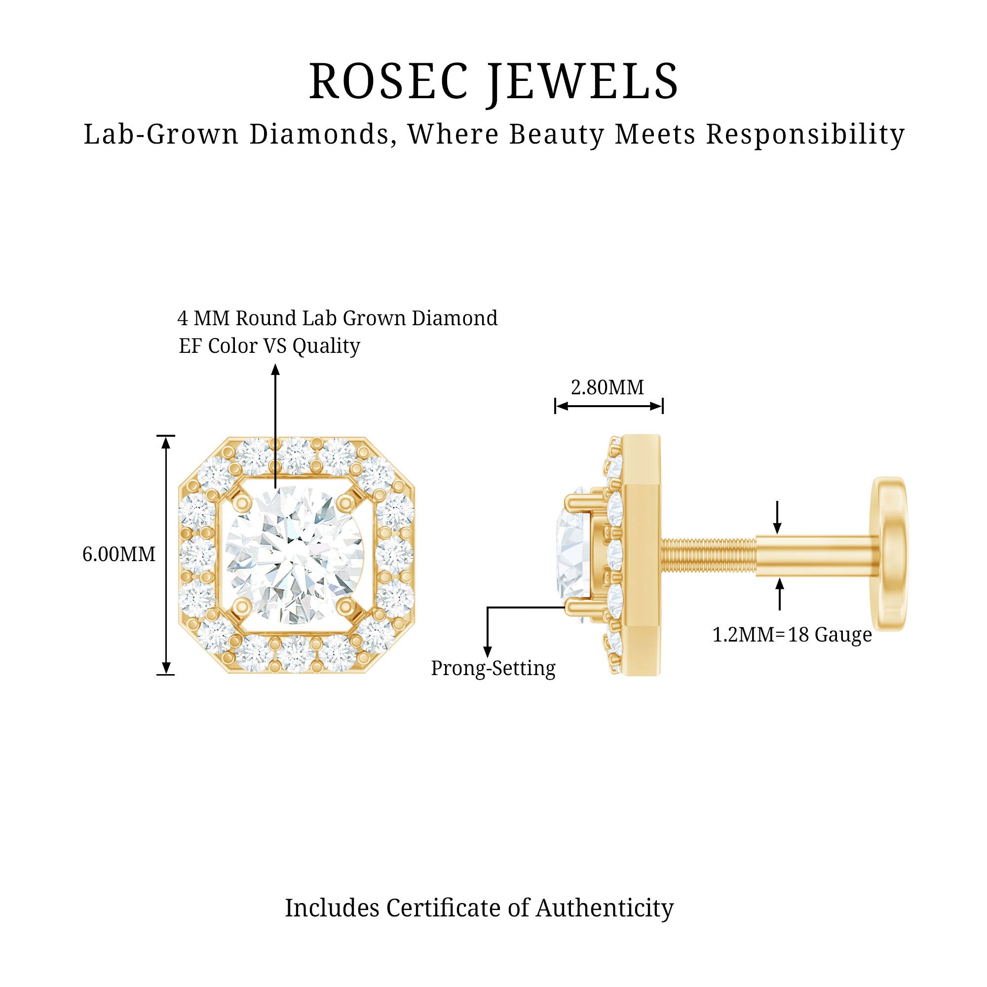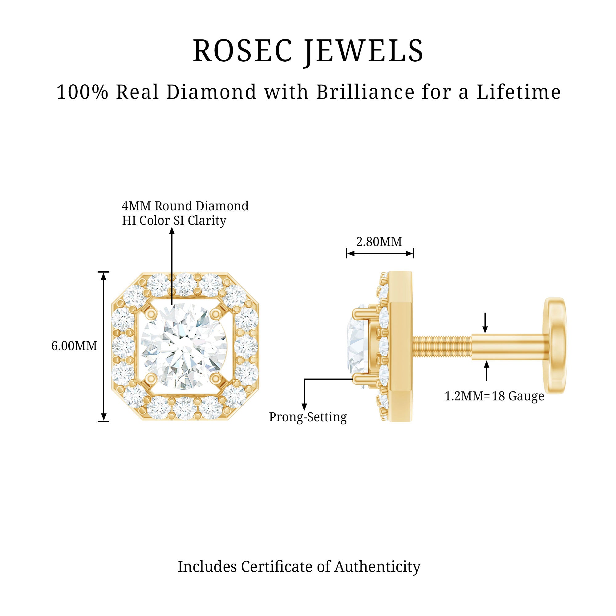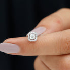 - Featuring a Round Diamond in the center while dainty round diamonds studded as a halo on an octagon shaped motif.