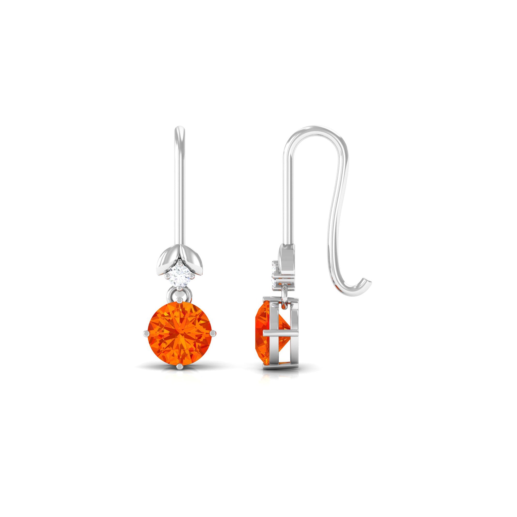 These simple yet elegant earrings feature a stunning orange sapphire as the centerpiece, surrounded by sparkling Diamonds set in warm. The orange sapphire adds a pop of color to the classic design, making it perfect for adding a touch of sophistication to any outfit. The earrings hang from a hook, allowing the gems to dangle beautifully. These earrings are lightweight and comfortable to wear, making them perfect for all-day wear. Whether your dressing up for a night out or adding a touch of glamour to your everyday look, these orange sapphire and Diamond drop earrings are the perfect addition to any jewelry collection.