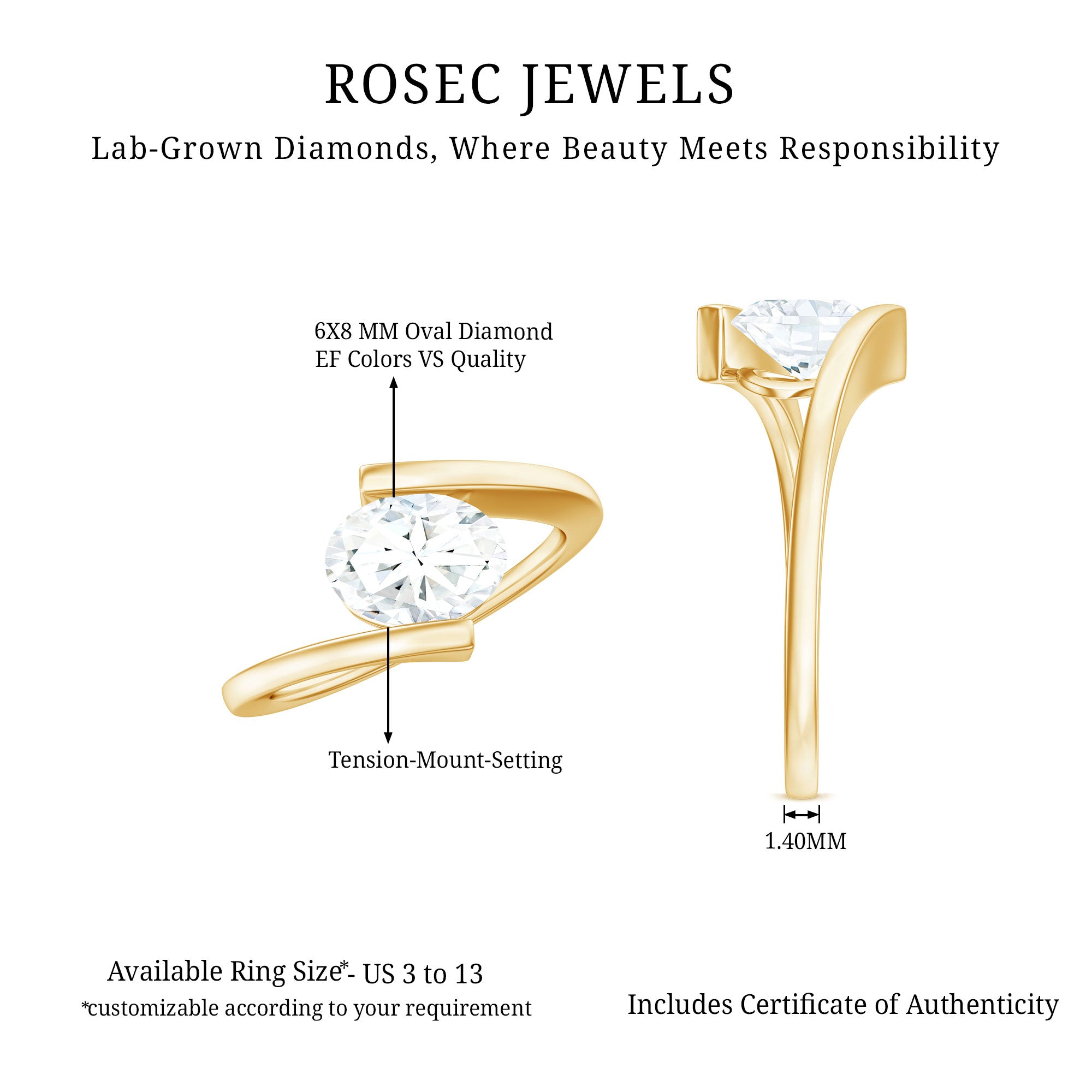Simple Oval Shape Lab Grown Diamond Solitaire Bypass Ring