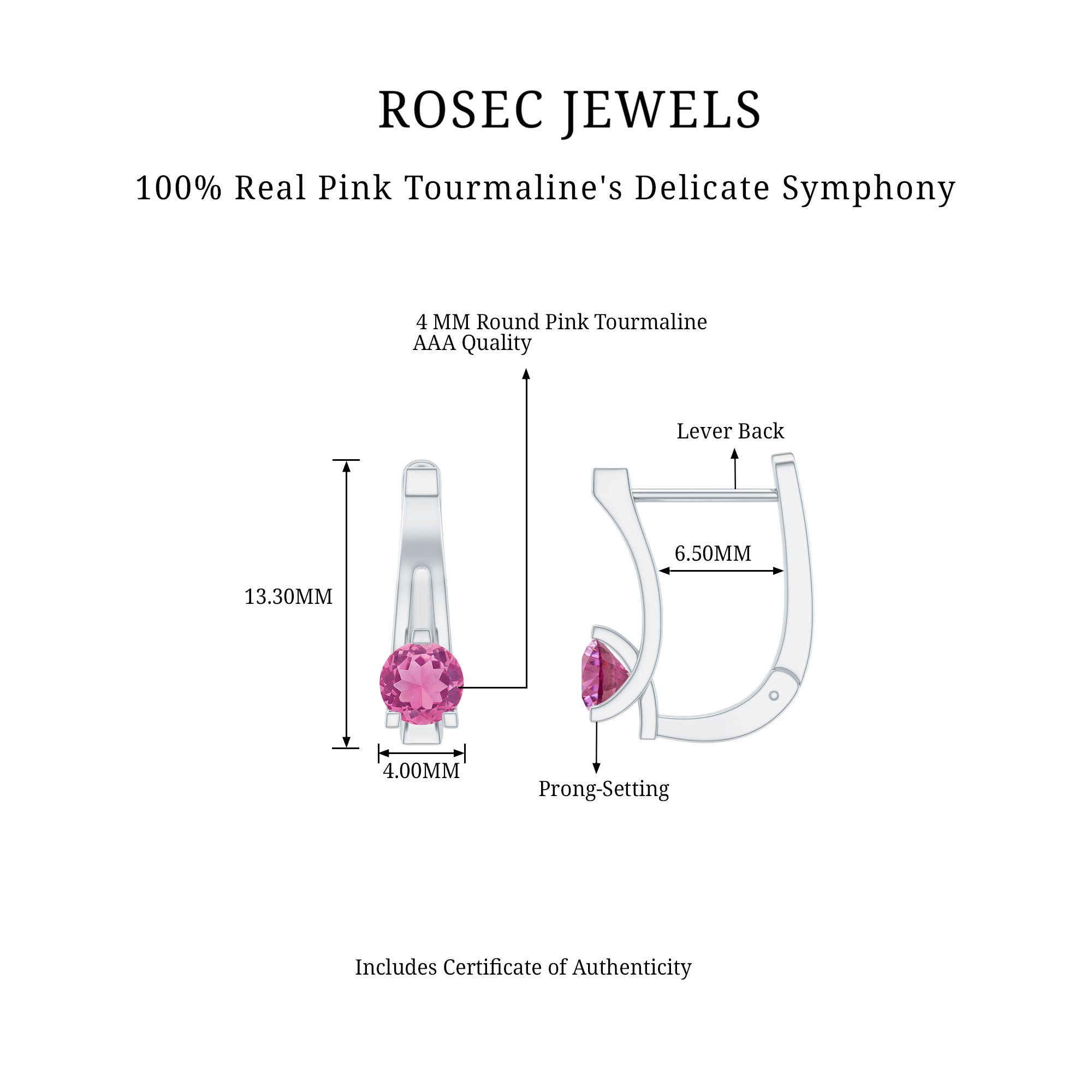 Surprise your beloved with an enduring jewelry item the exquisite J Hoop Earrings. These earrings elegantly display a captivating Round Shape Pink Tourmaline, delicately placed as a centerpiece in a secure 3 Prong Setting. Designed with a Lever Back Finding for easy wear, these Solitaire Hoop Earrings serve as a flawless embodiment of your deep affection and care.