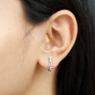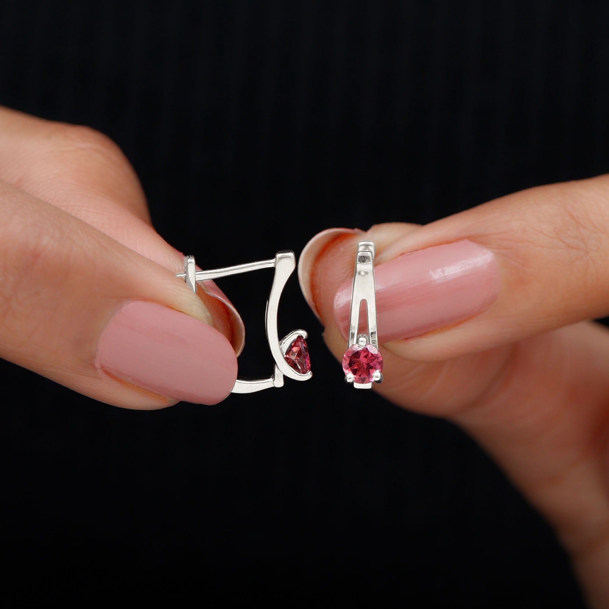 Simple Pink Tourmaline Solitaire J Hoop Earrings
