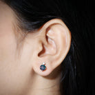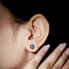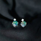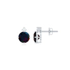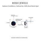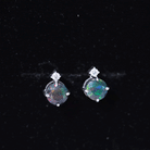 Simple Round Black Opal Solitaire Stud Earrings with Dainty Moissanite