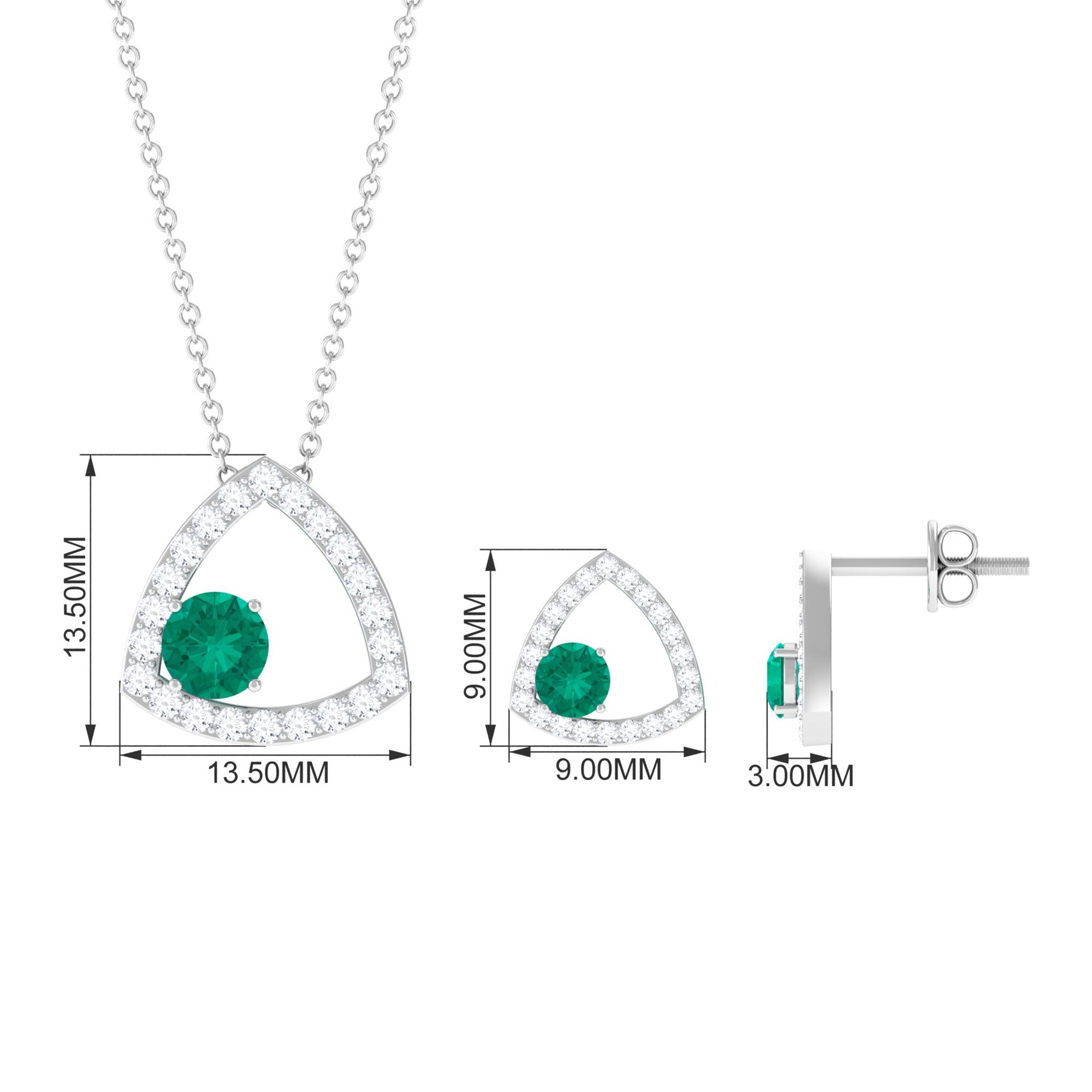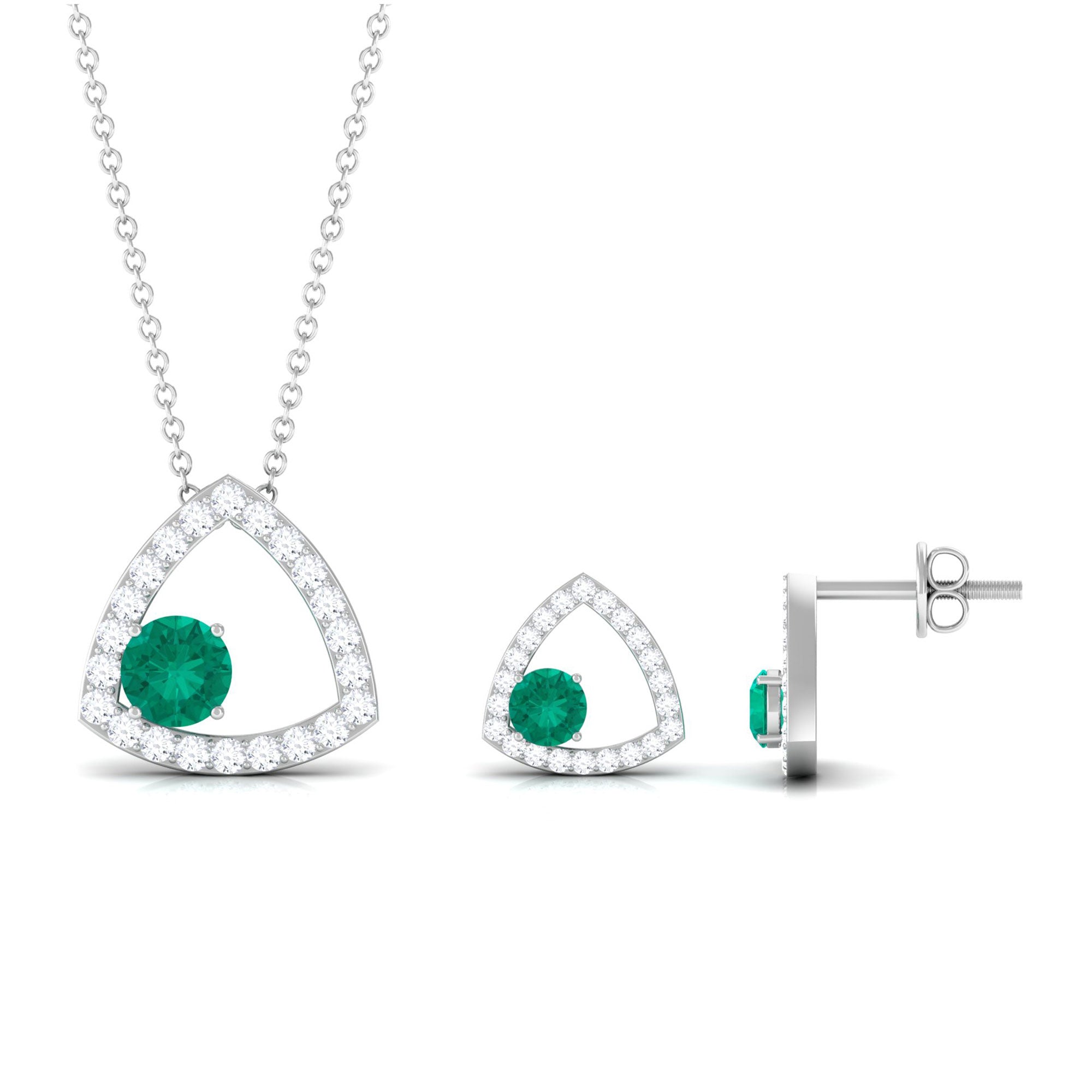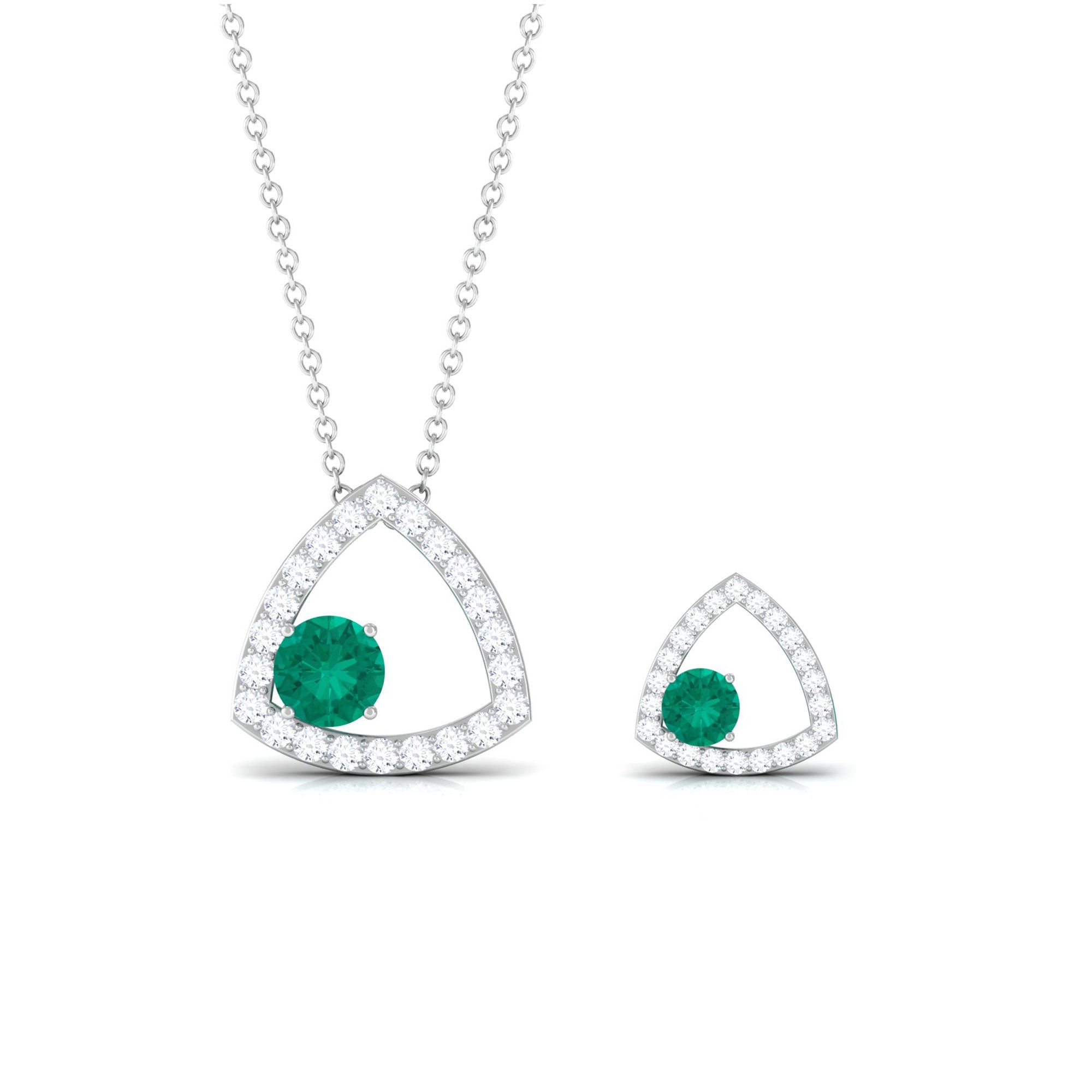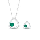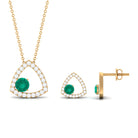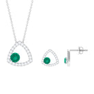 Simple Round Cut Emerald and Triangle Shape Moissanite jewelry Set