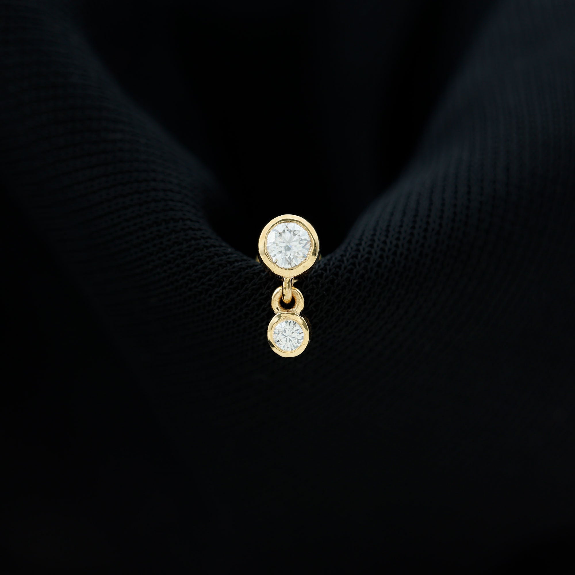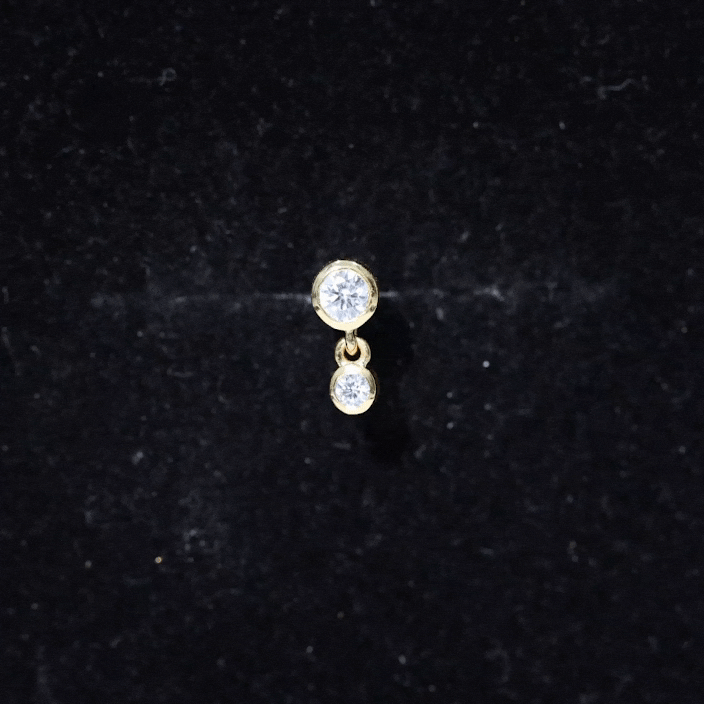 Elevate your style effortlessly with the enchanting Diamond Helix Drop Earring! Featuring a dainty Round Diamond on top set in bezel setting with a dangling diamond.