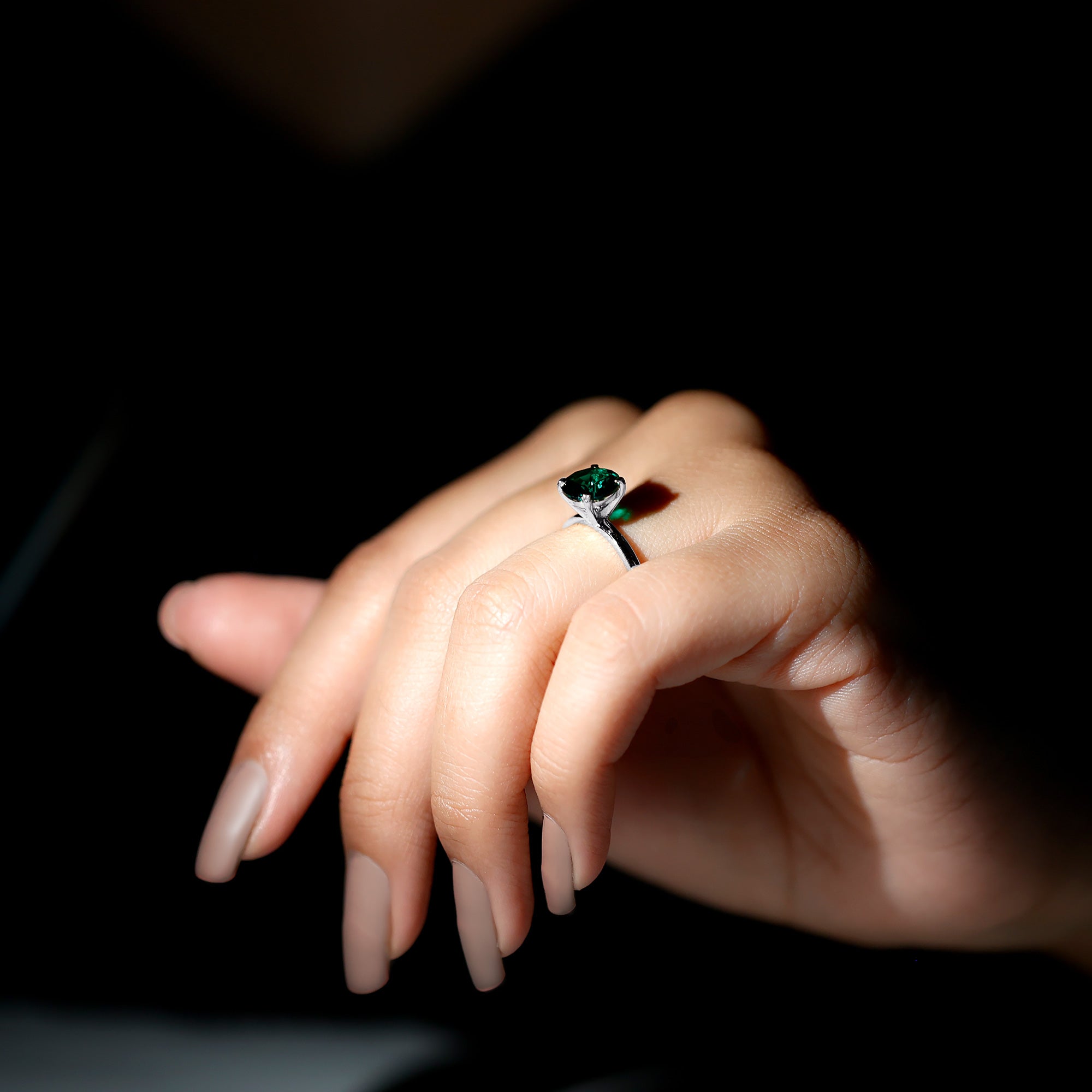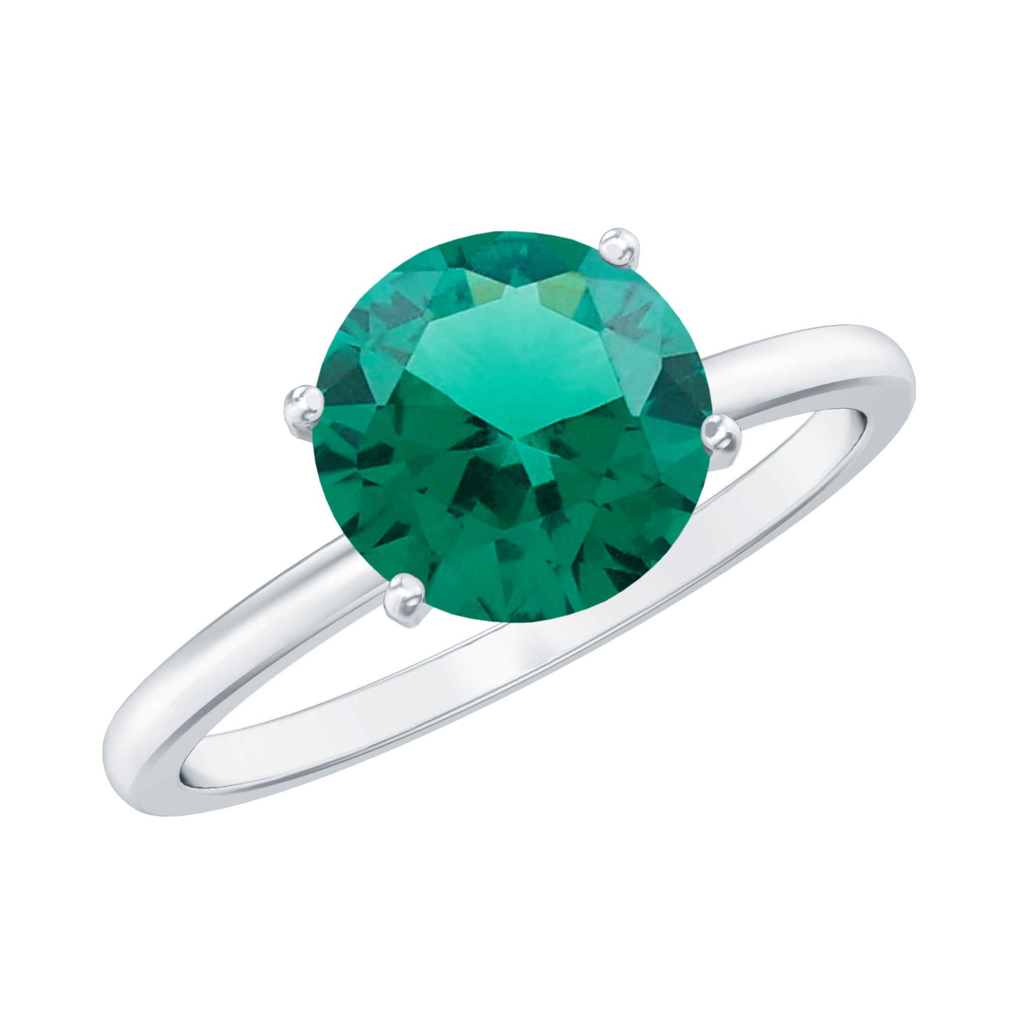 Capture her heart with eternal affection as you offer this exquisite Solitaire Ring to your beloved. Adorned with an 8 MM Round Cut Created Emerald in a Peg-Head Setting, this ring is destined to become a cherished possession.
