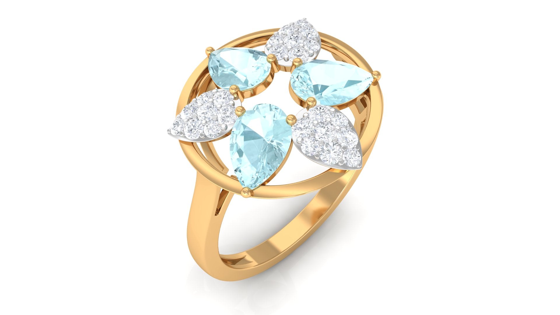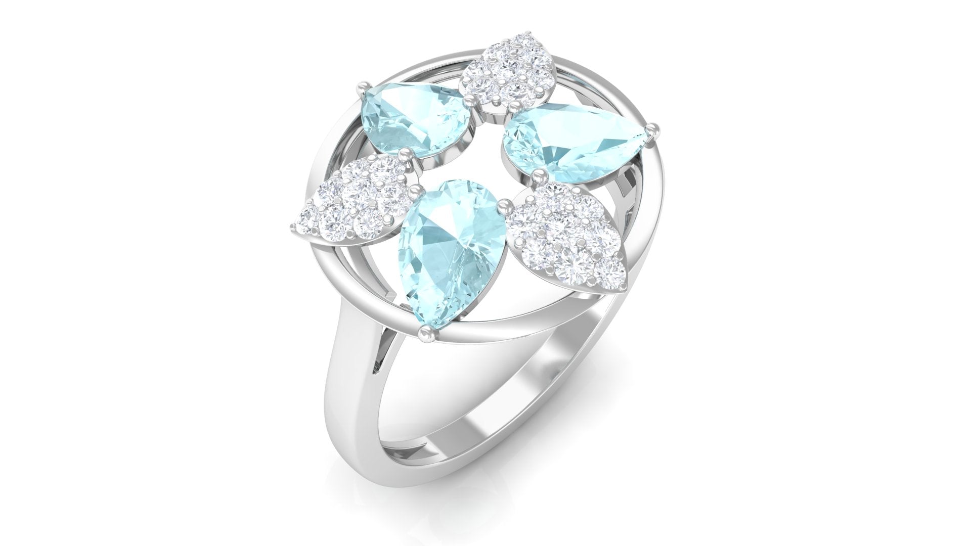 Unleash your inner beauty with this Floral Cocktail Ring that features Sky Blue Topaz and Diamond, a stunning statement piece that blooms with elegance.