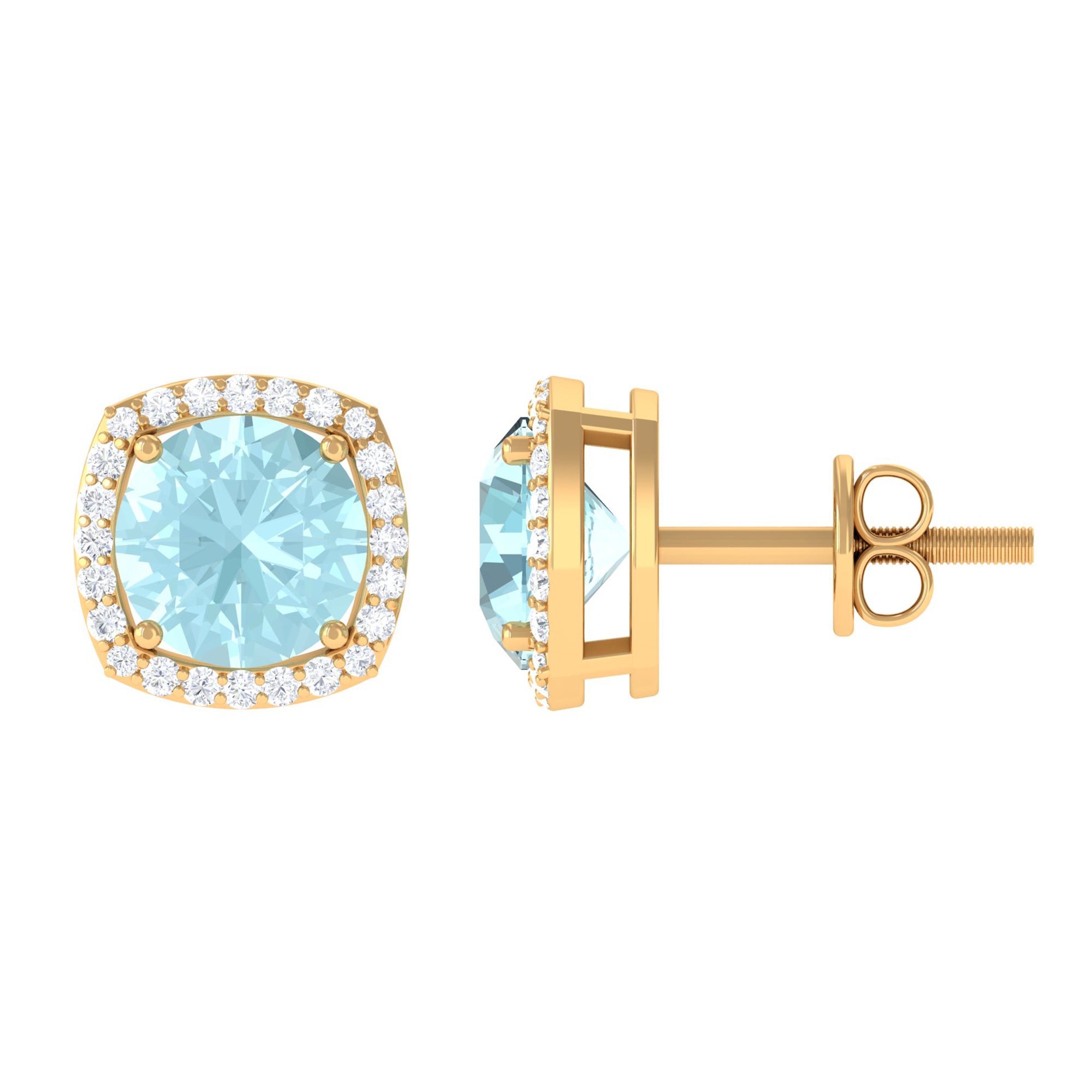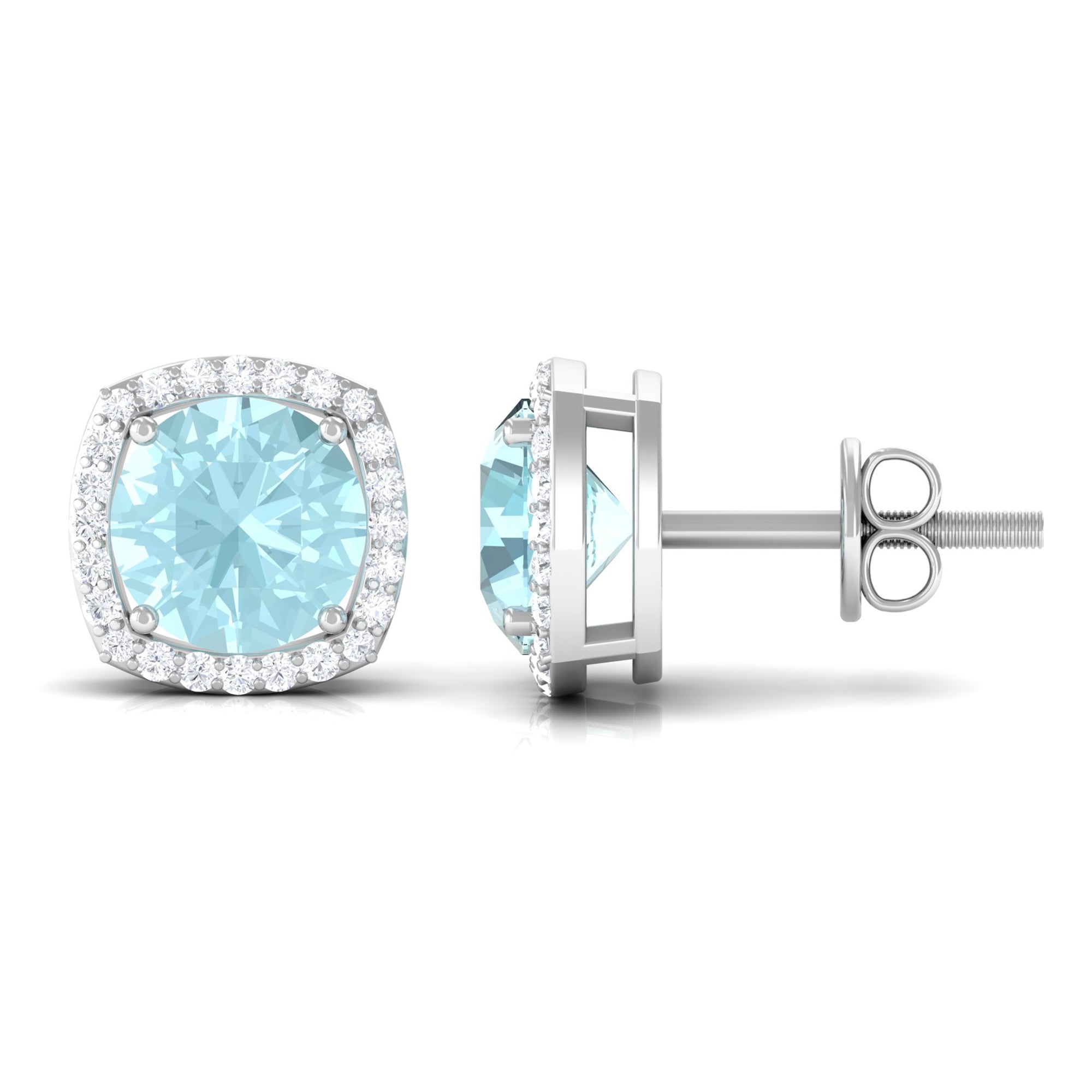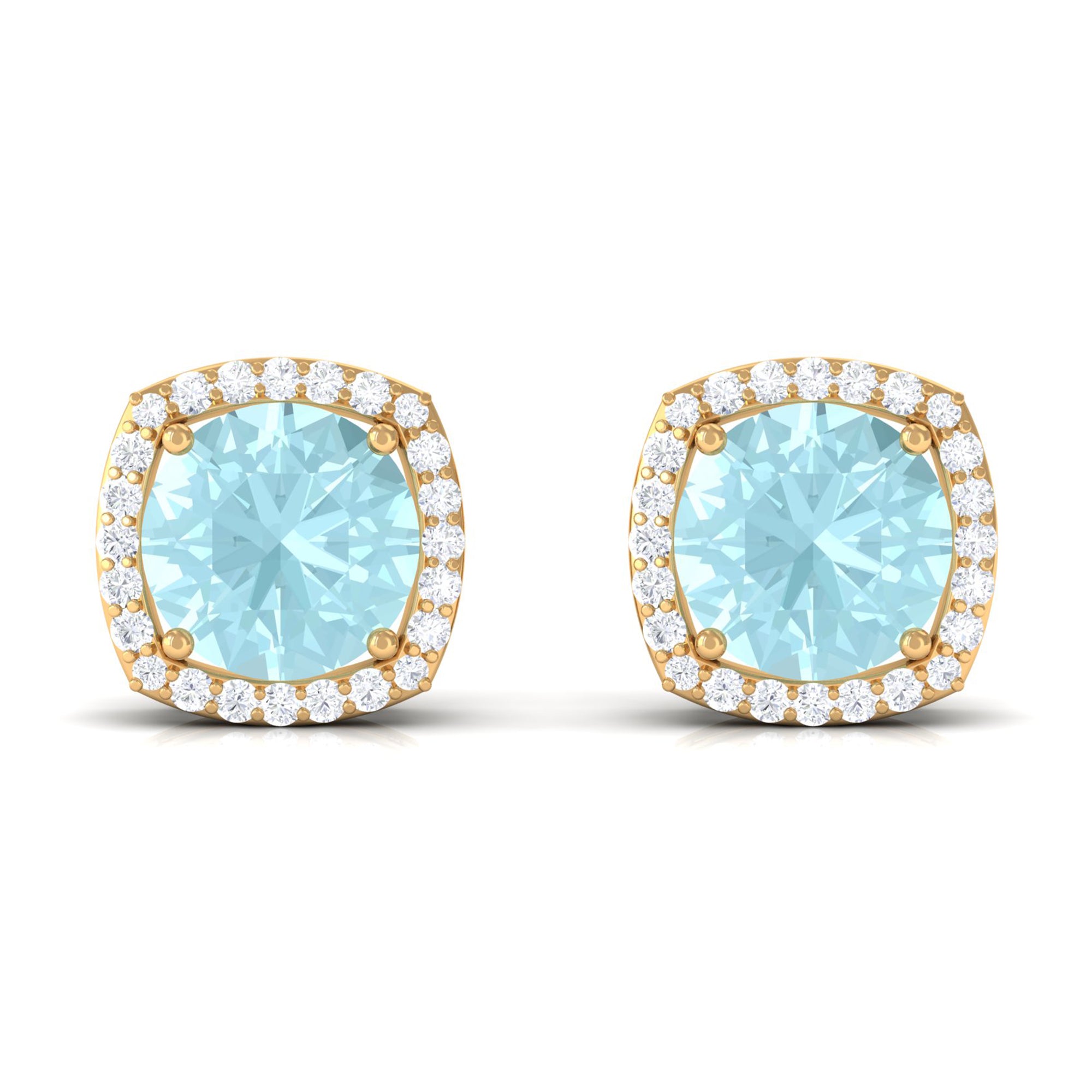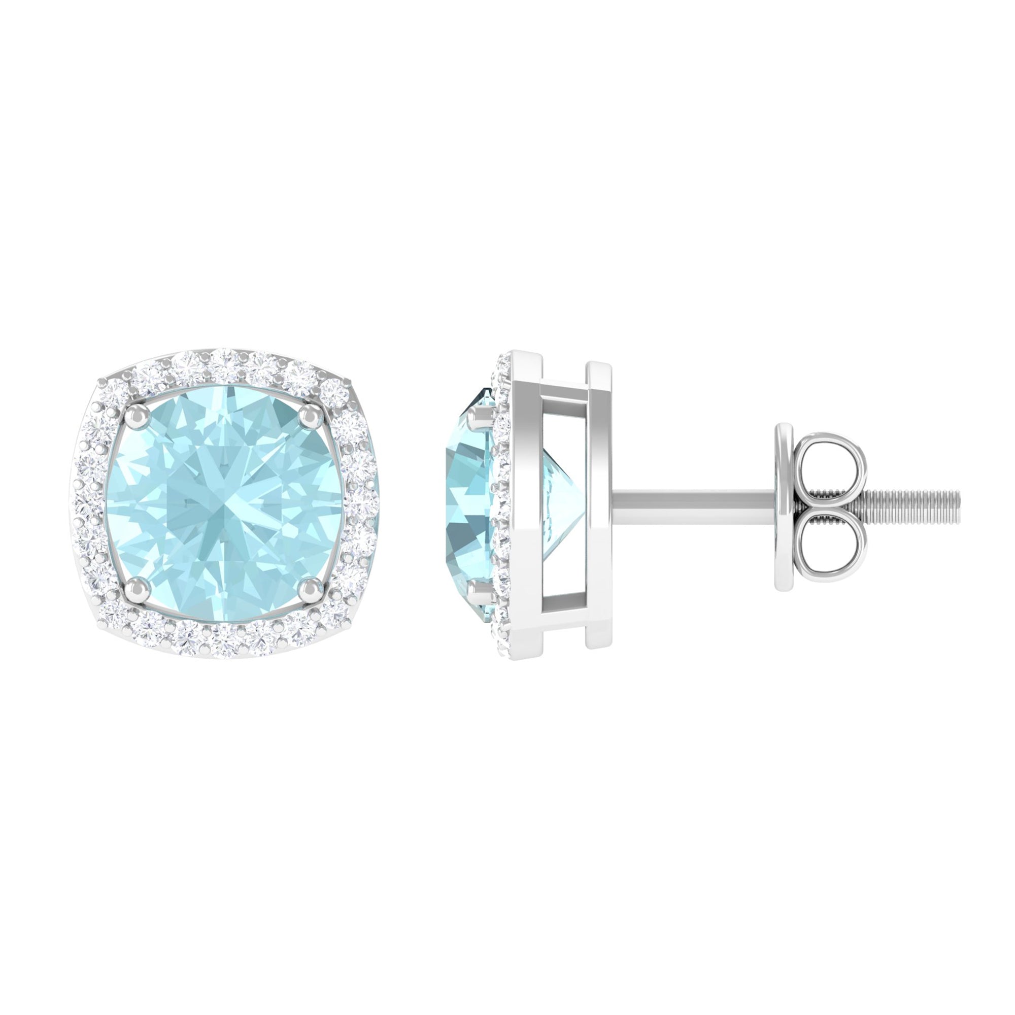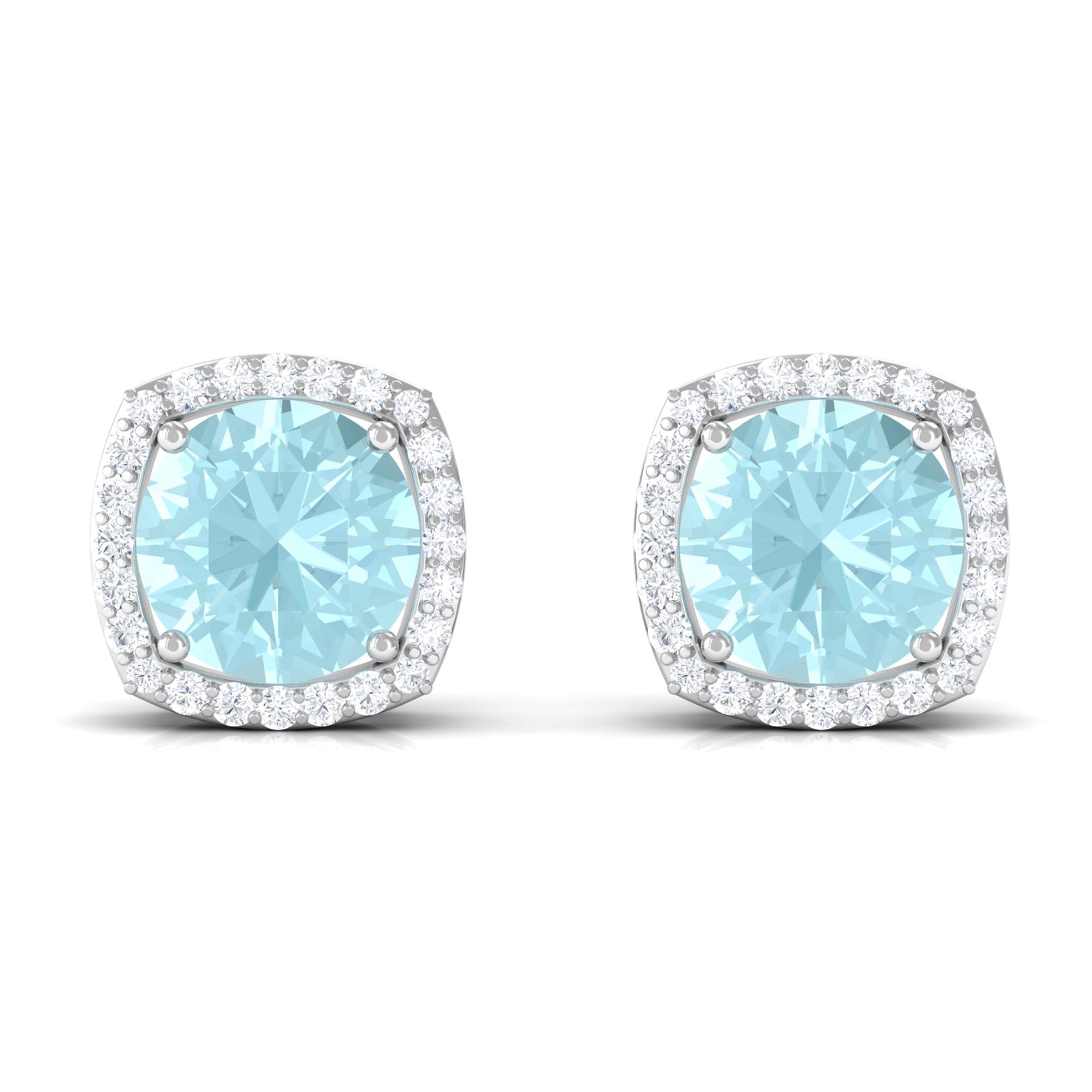 Sky Blue Topaz and Diamond Halo Stud Earrings
