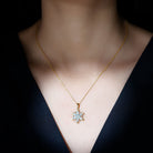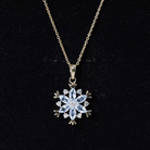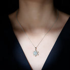 Surprise her with this exquisite Snowflake Pendant, featuring a stunning combination of Marquise Cut Sky Blue Topaz and round shape Diamonds in a prong setting. This luxurious pendant is the perfect addition to any jewelry collection.