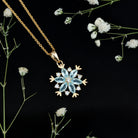 Sky Blue Topaz and Diamond Snowflake Pendant Necklace