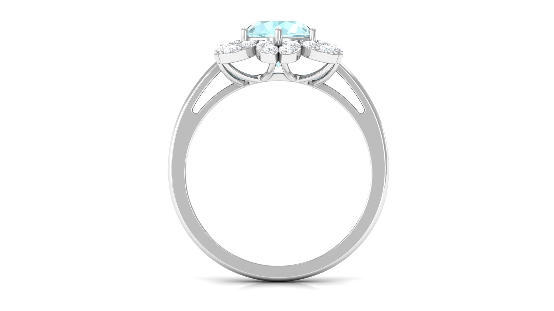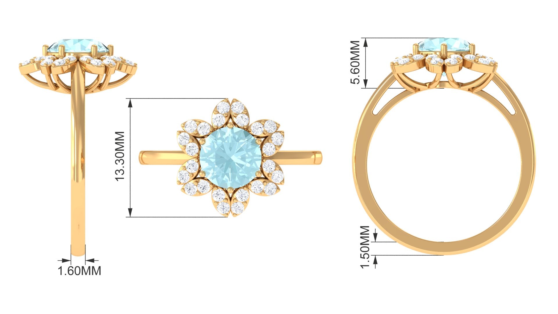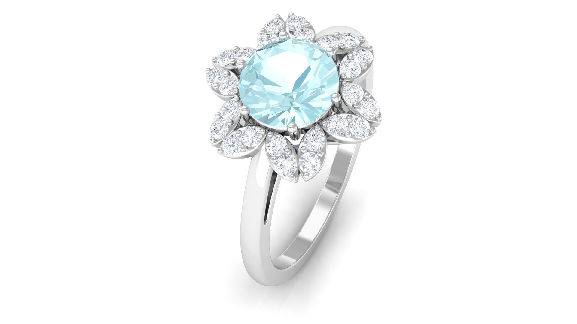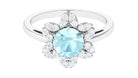 Sky Blue Topaz Flower Ring with Diamond Halo