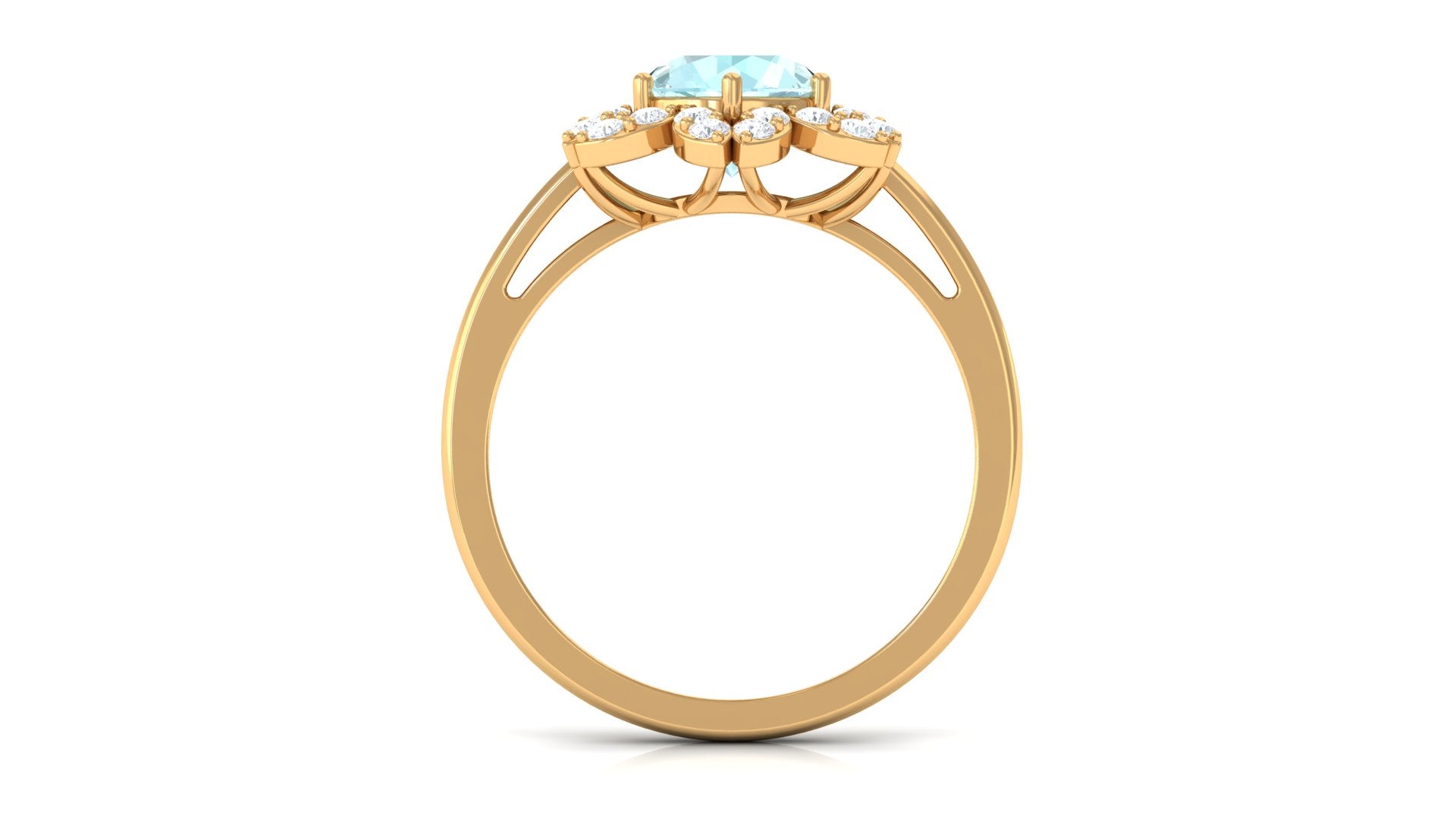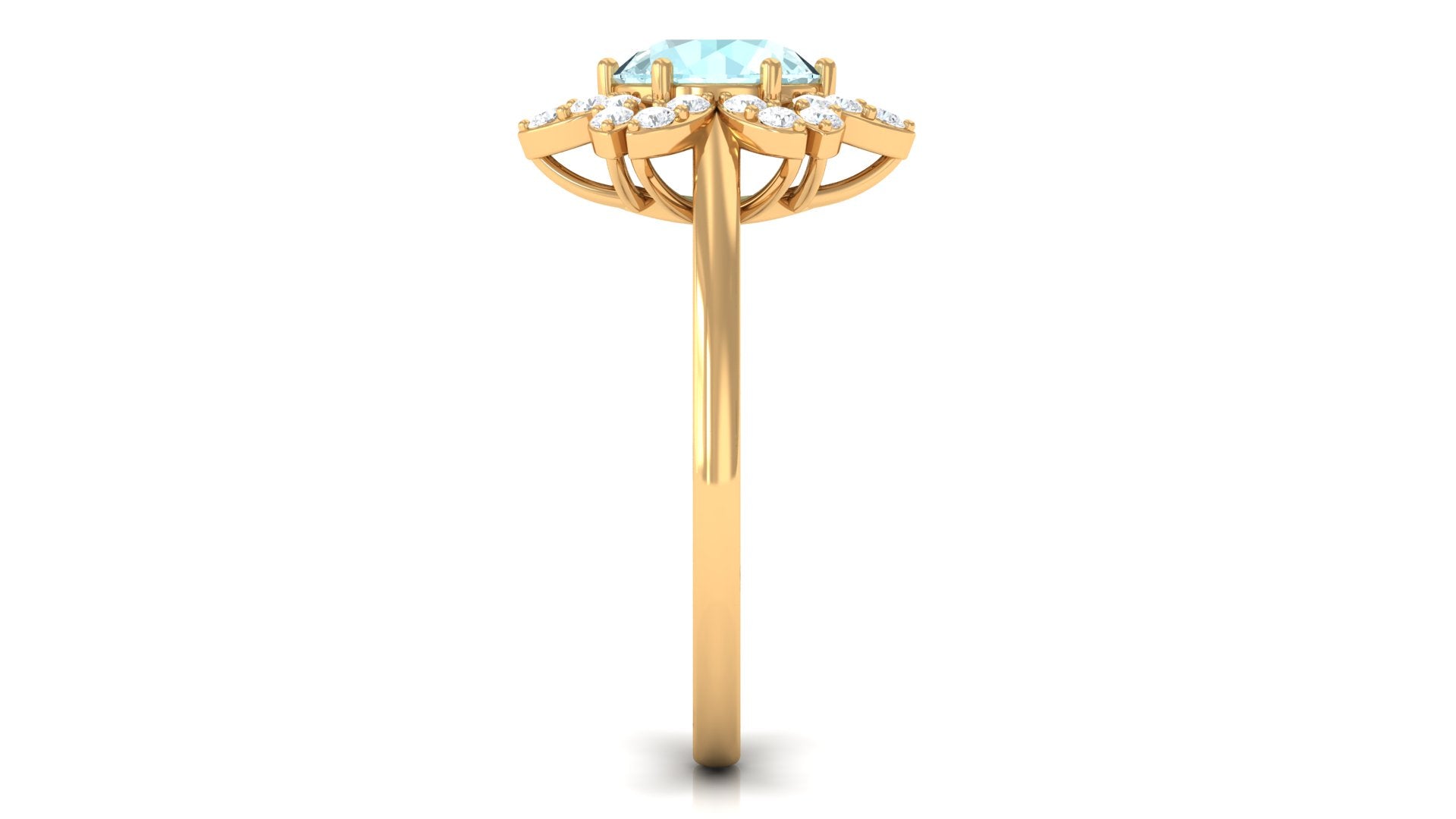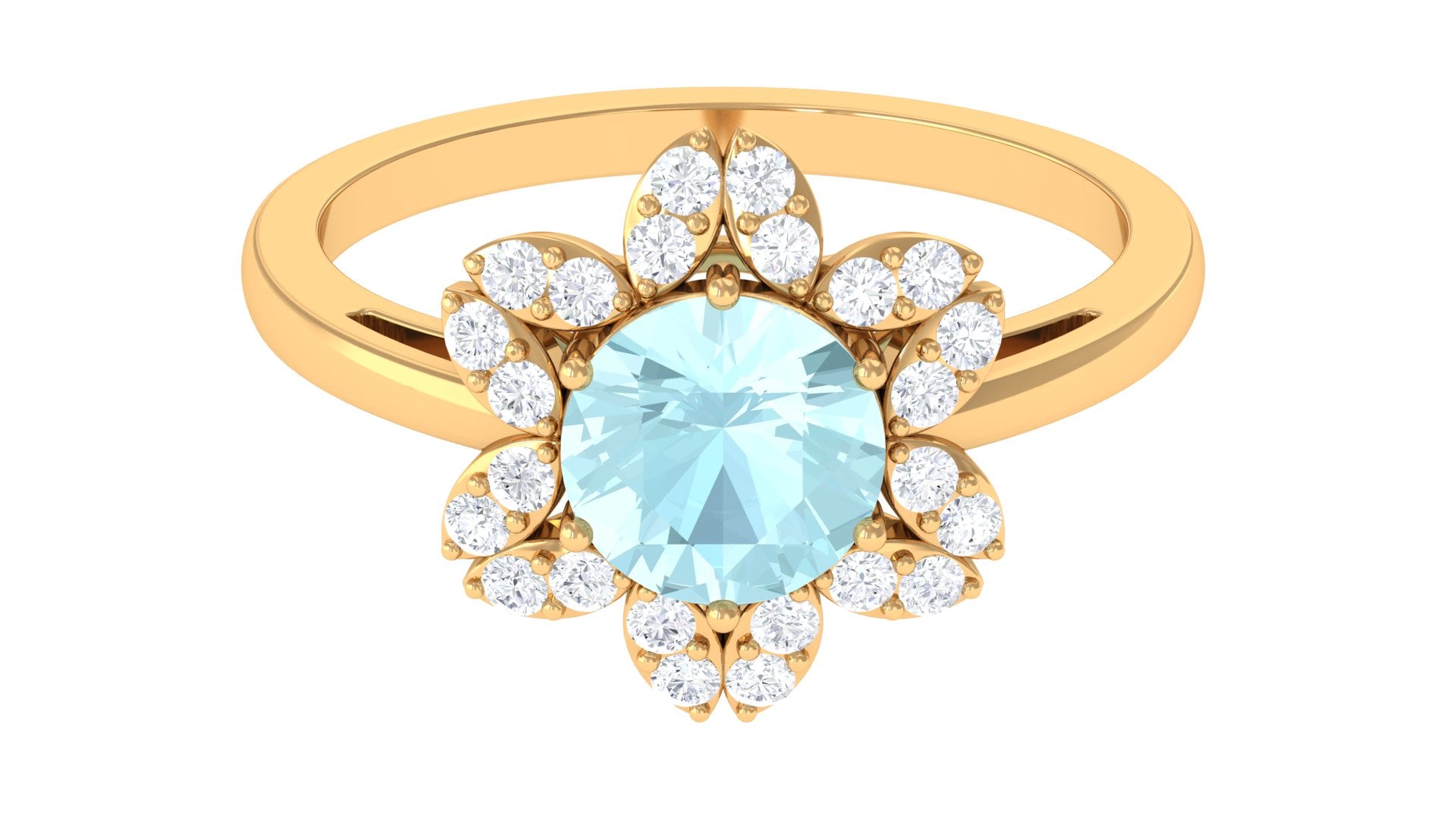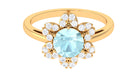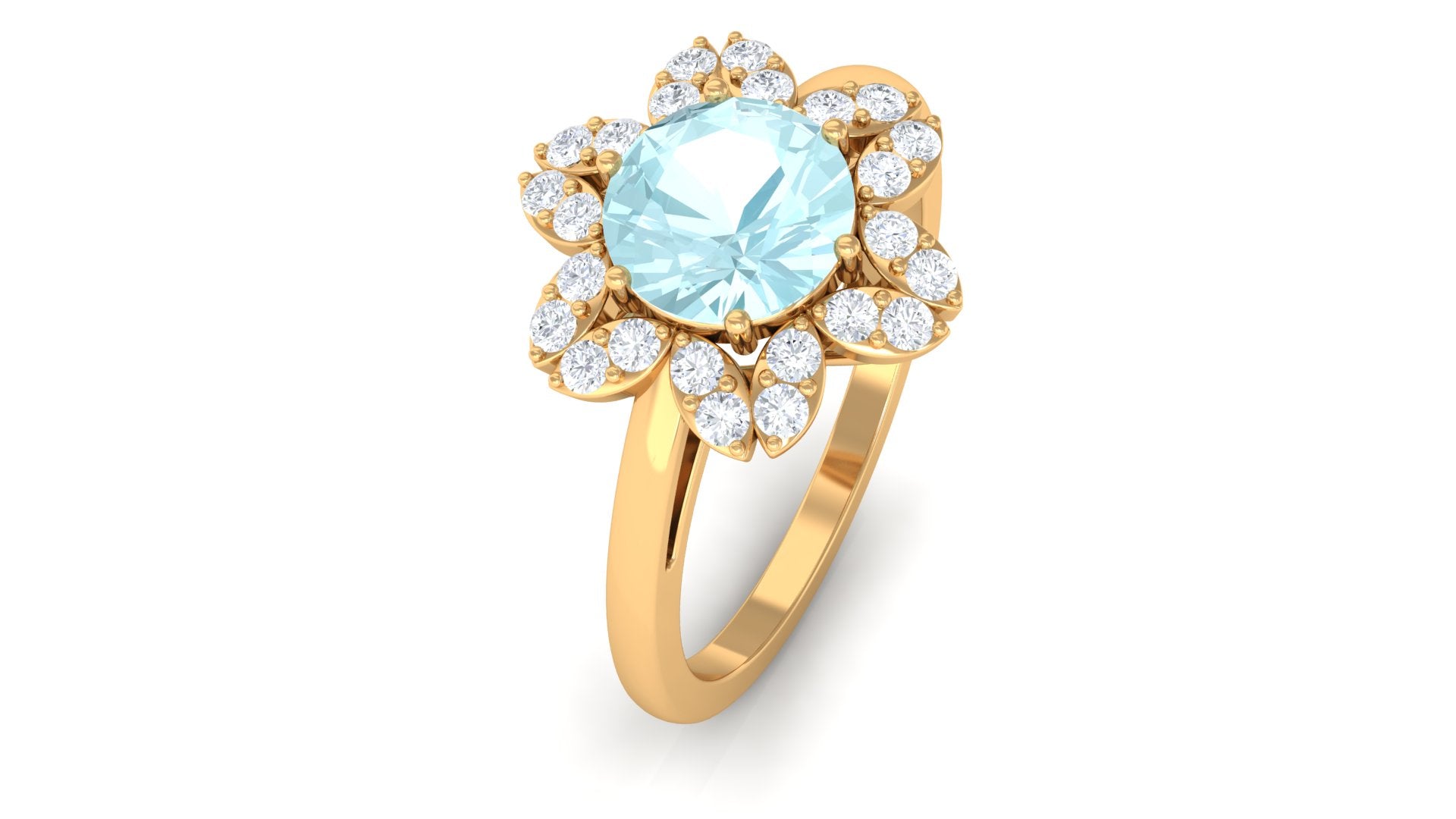 Sky Blue Topaz Flower Ring with Diamond Halo