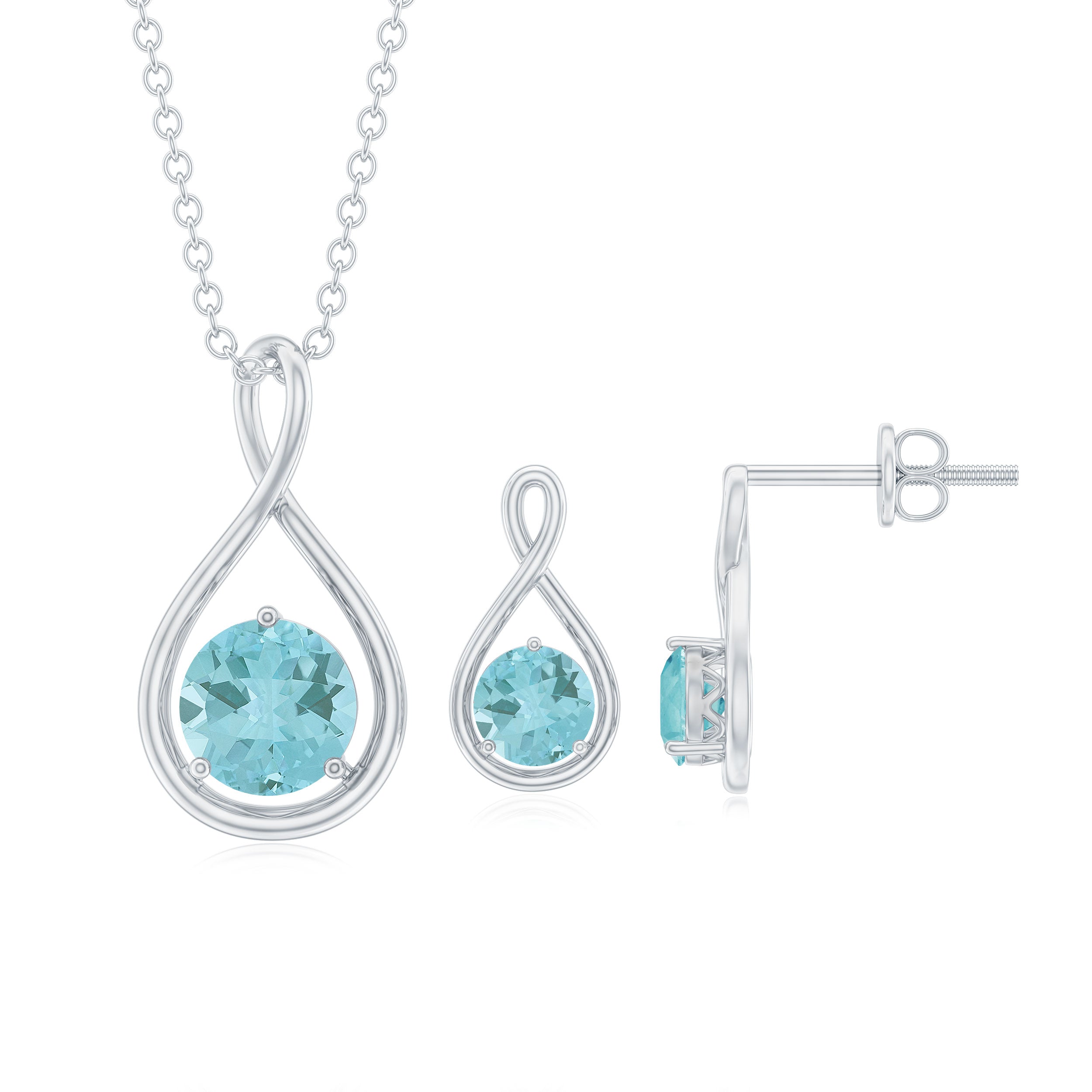 Dazzle in our Infinity Necklace Set featuring a 6 MM Round Cut Sky Blue Topaz Solitaire in a unique Infinity style Pendant gold Infinity Earrings, this classic Infinity Earrings and Necklace Set will add grace and elegance to your look.