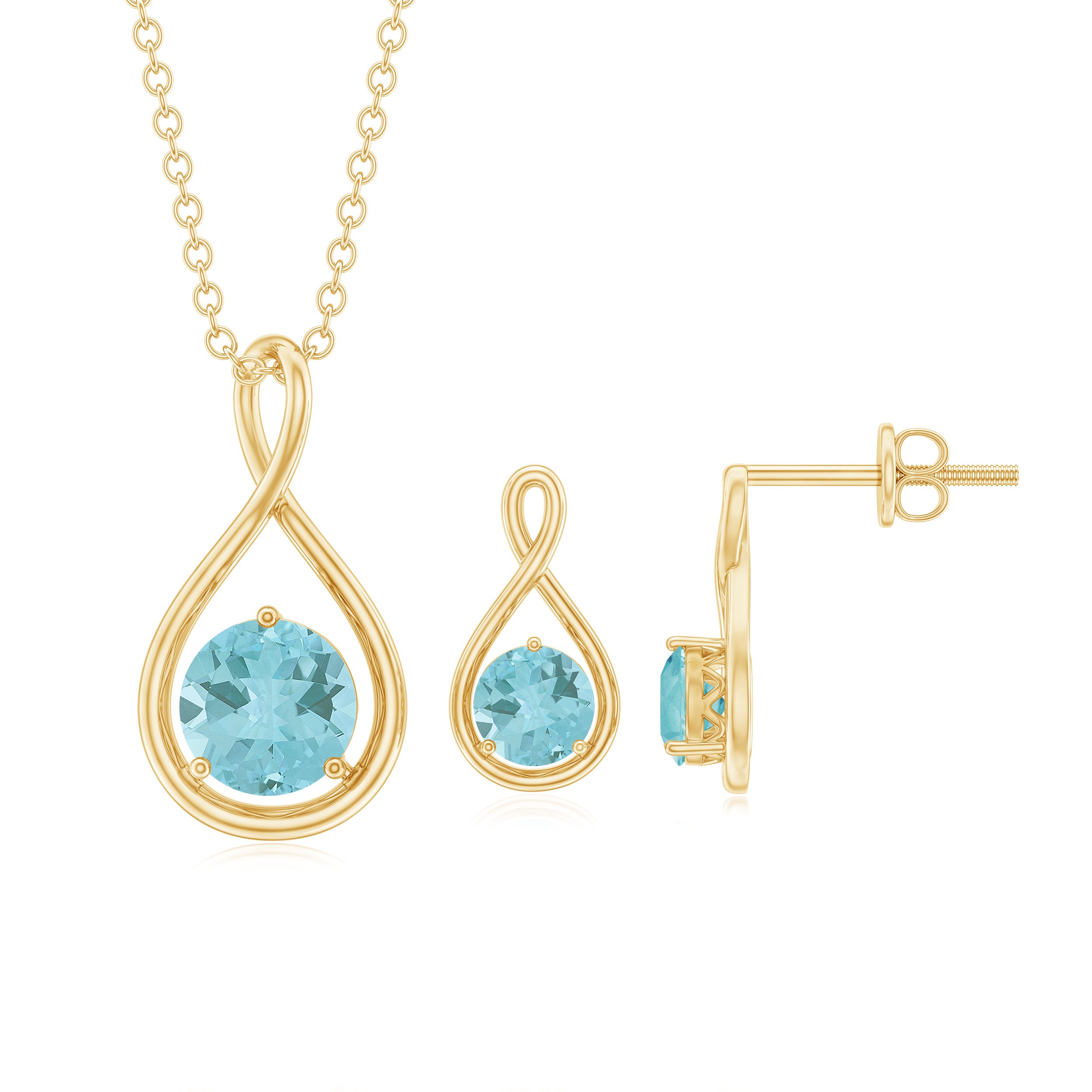 Sky Blue Topaz Solitaire and Gold Infinity Earrings and Necklace Set