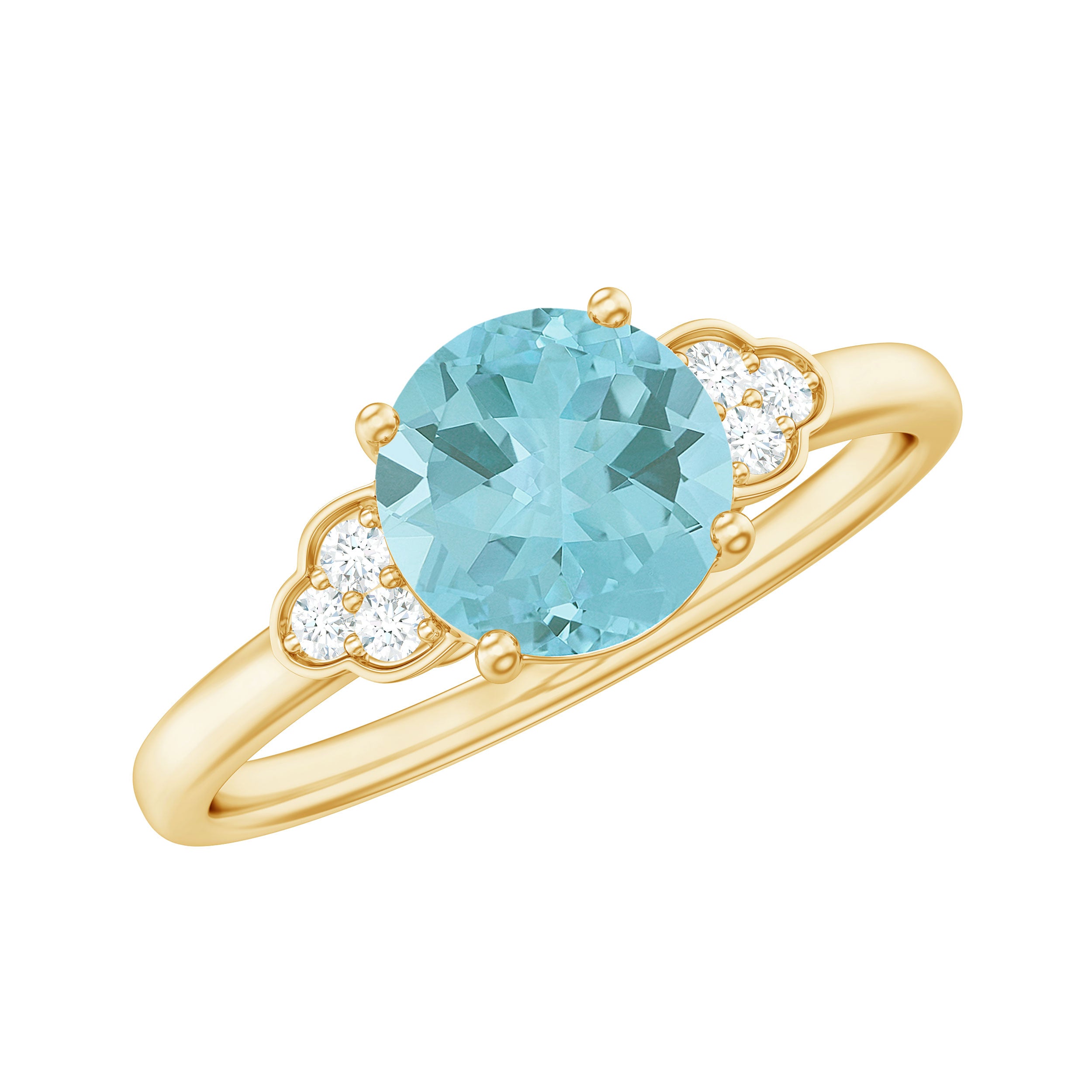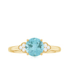 Experience the enchanting beauty of the Sky Blue Topaz Ring, a stunning piece of jewelry that sparkles with elegance. The ring boasts a Round Shape Sky Blue Topaz set in a Prong Setting, and adorned with a Diamond Trio, adding to its adorable charm.