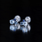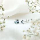 Sky Blue Topaz Three Stone Stud Earrings with London Blue Topaz and Blue Sapphire