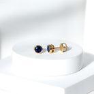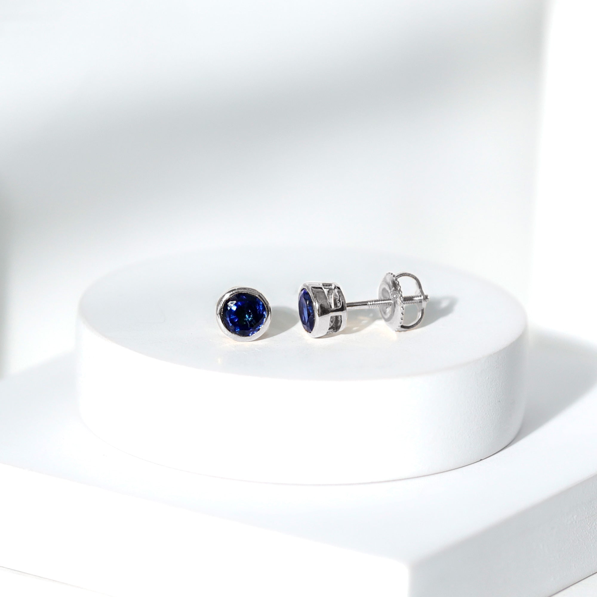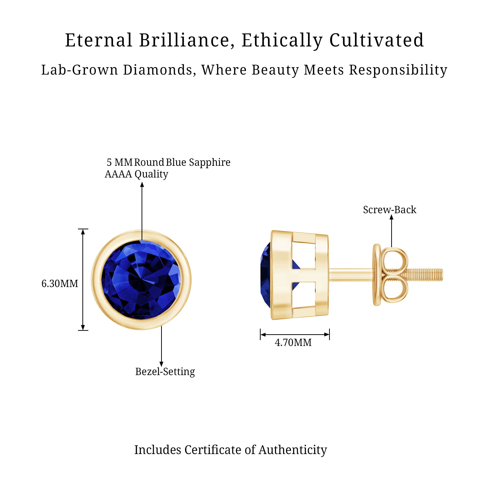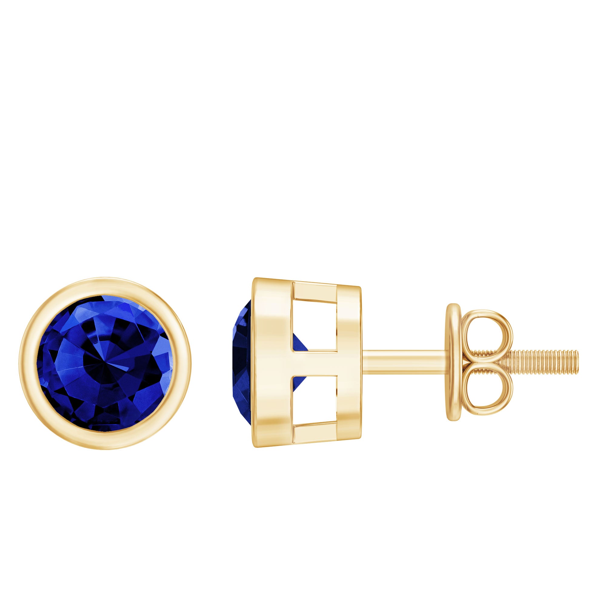 Solitaire 5MM Lab Created Blue Sapphire Stud Earrings in Bezel Setting