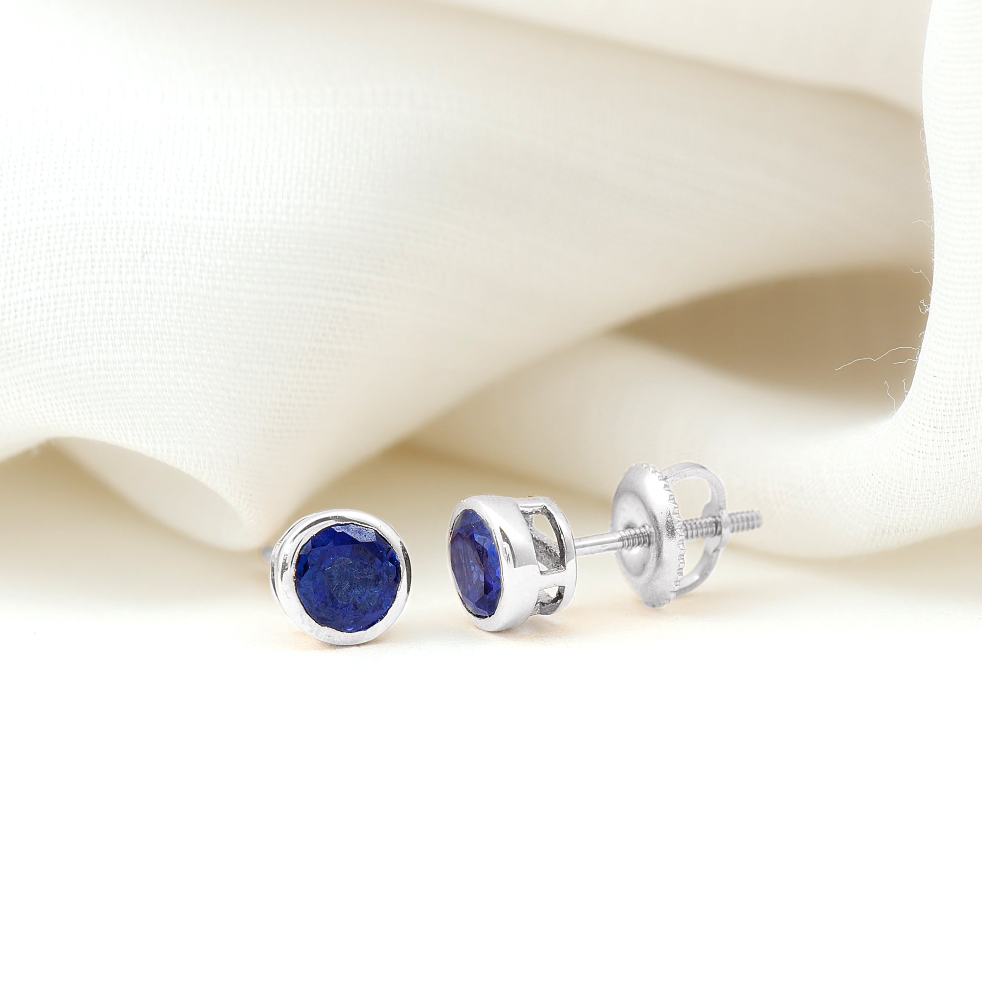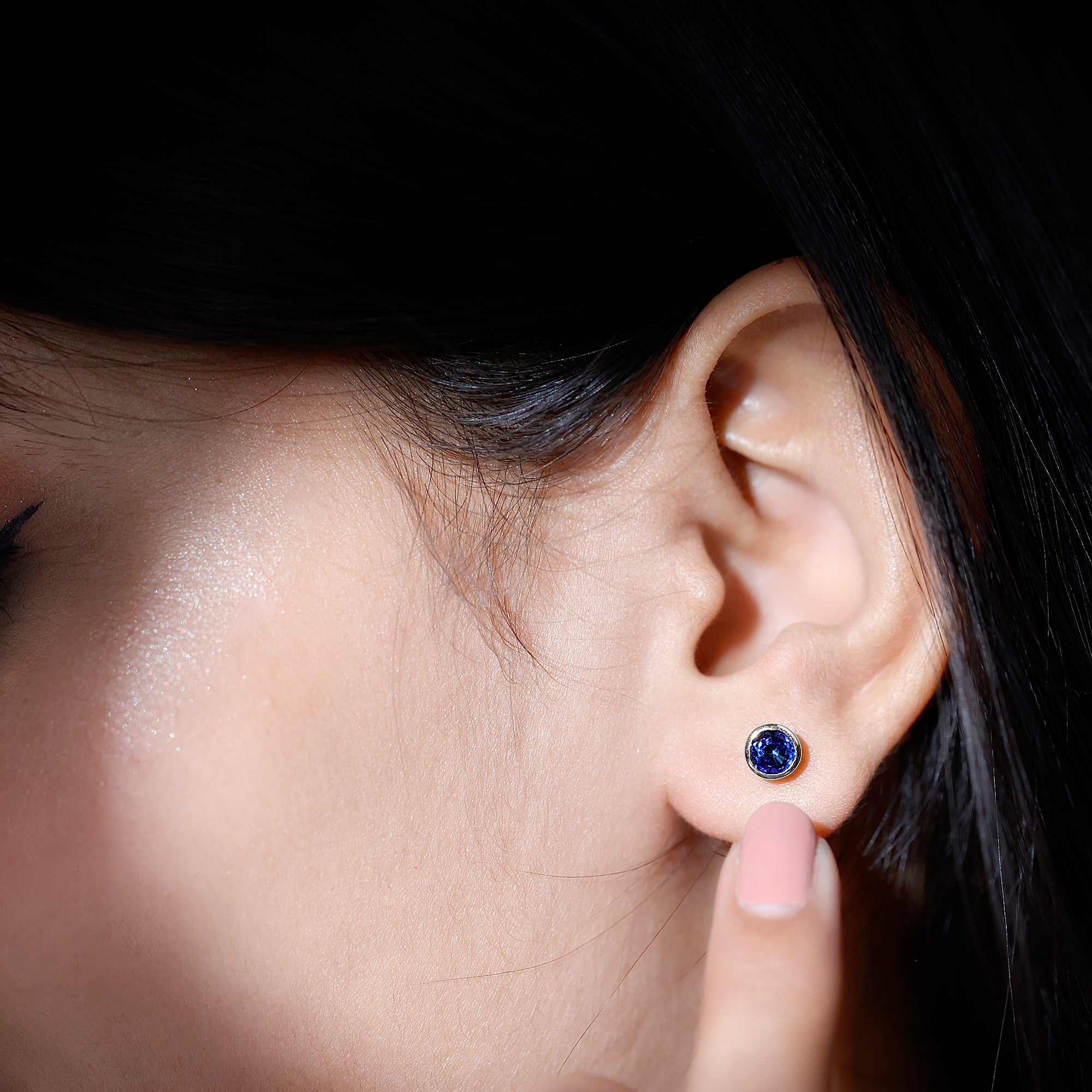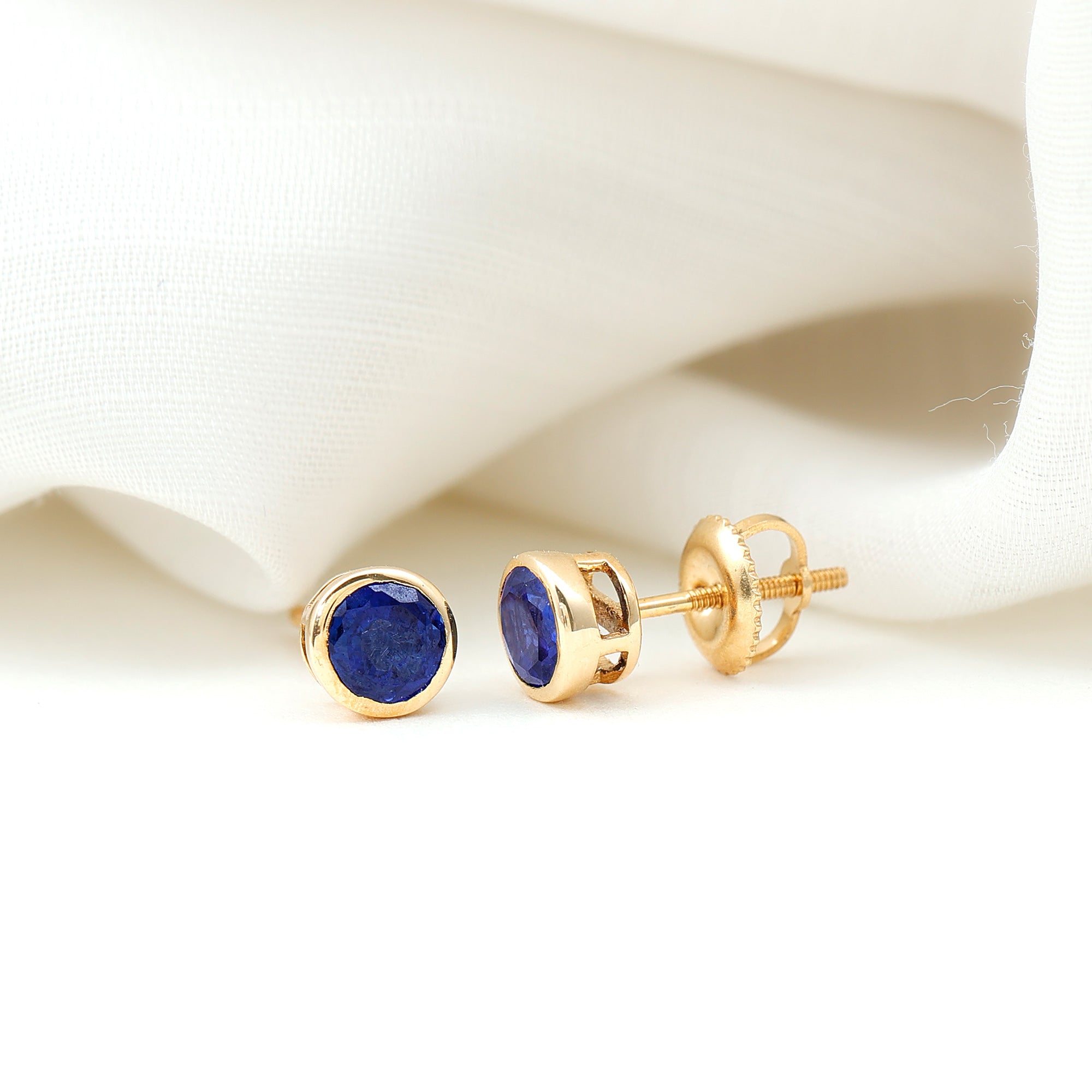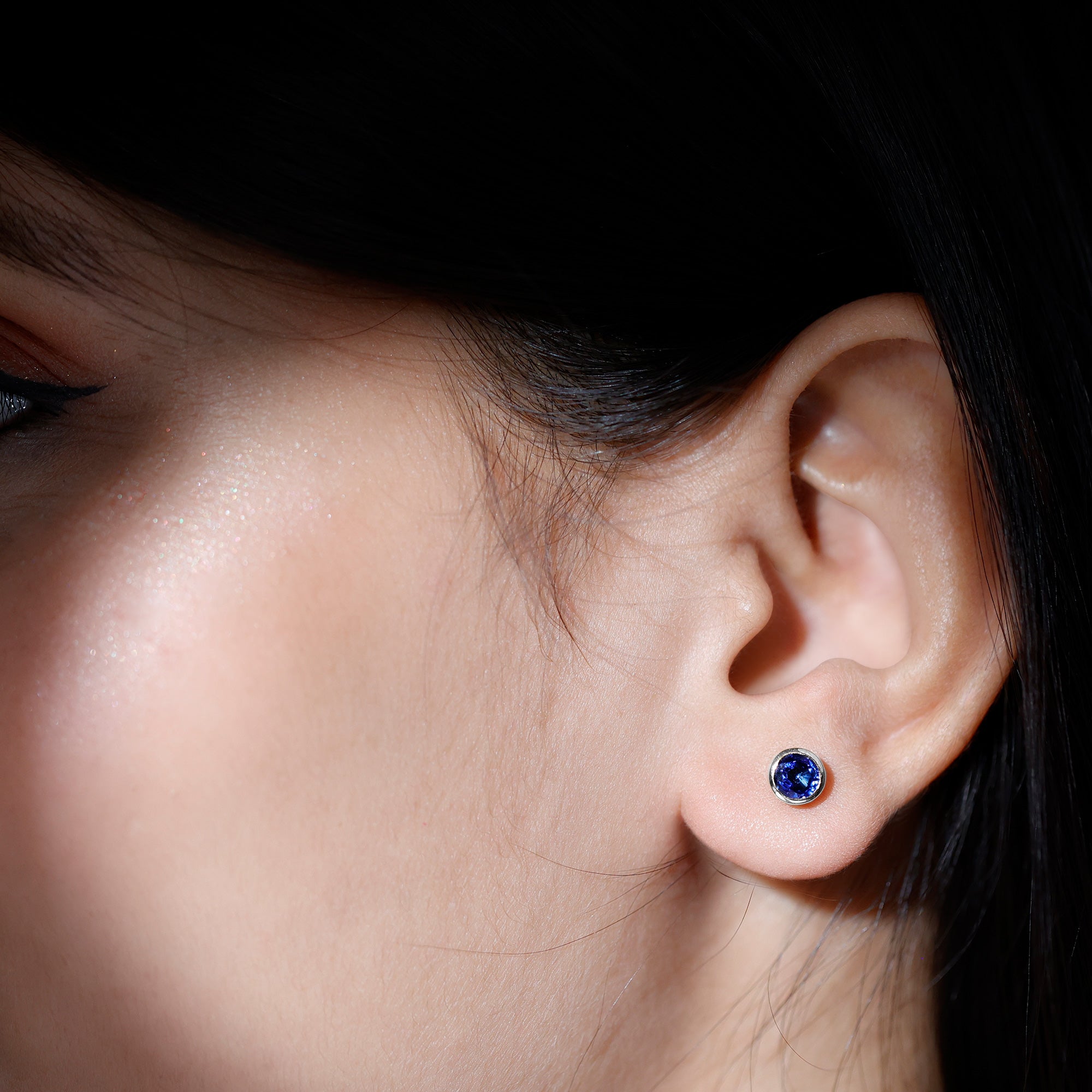 Simple, elegant, and effortlessly chic, these Solitaire Blue Sapphire Earrings are designed to add a subtle sparkle to your everyday look. The 5 MM round cut lab created blue sapphire sits perfectly in bezel setting, giving the Solitaire Stud Earrings a modern appearance that feels classic. Their simple design makes them versatile enough to wear from morning coffee to evening dinners, seamlessly complementing any outfit. The solitaire design emphasizes the natural beauty of the stone while keeping the overall style understated and classy. Screw back closures ensure a secure fit while making these Blue Sapphire Stud Earrings quick and easy to put on, so you dont have to worry about losing an earring during the day. These Bezel Set Stud Earrings also make a thoughtful gift. Whether it is a birthday, anniversary, or just a little surprise to show someone you care, these Round Earrings convey elegance in the simplest and most meaningful way. Lightweight and comfortable, they are perfect for women who appreciate jewelry that combines style and practicality.