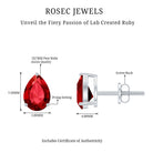 Solitaire 5X7MM Pear Shaped Lab Created Ruby Stud Earrings