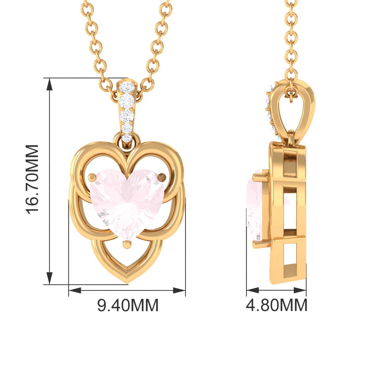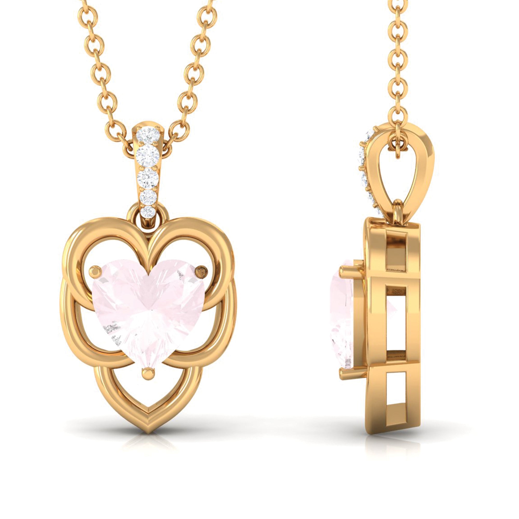 Solitaire 8 MM Rose Quartz Heart Necklace with Diamond
