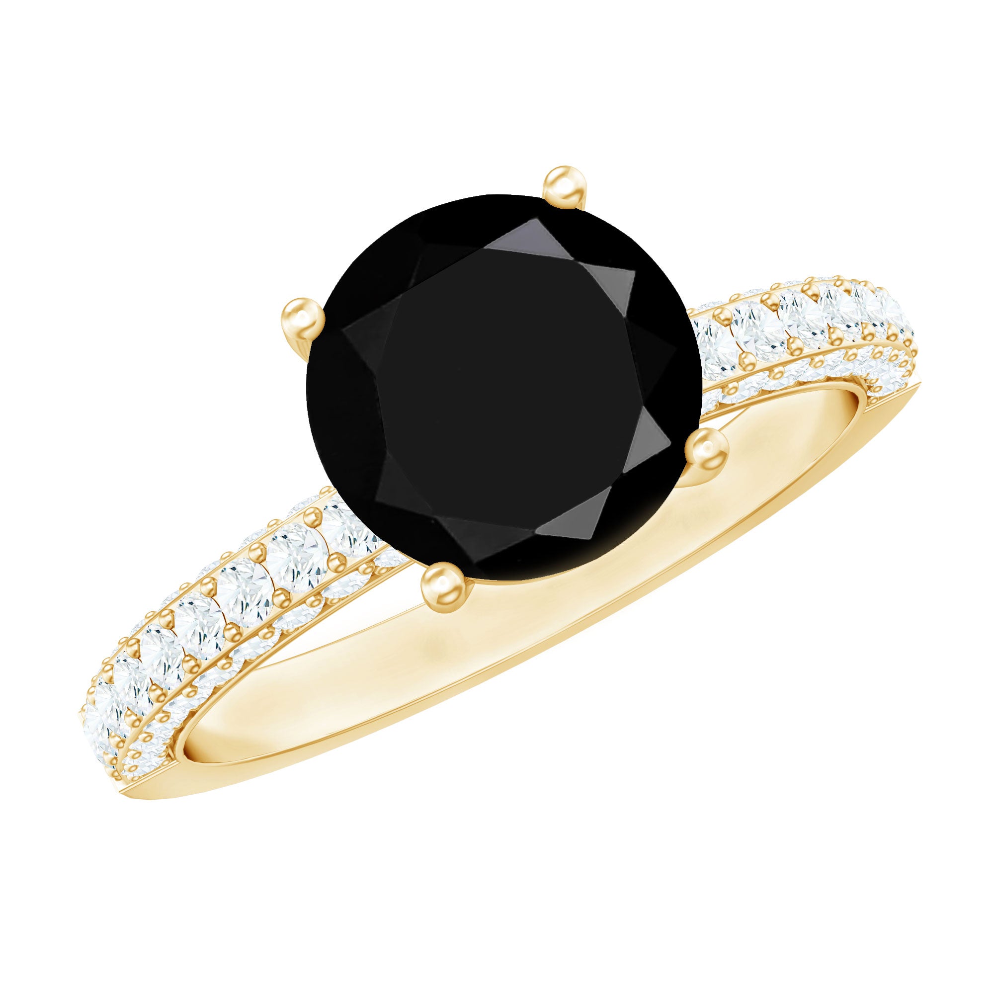 Solitaire 8MM Black Onyx Engagement Ring with Moissanite