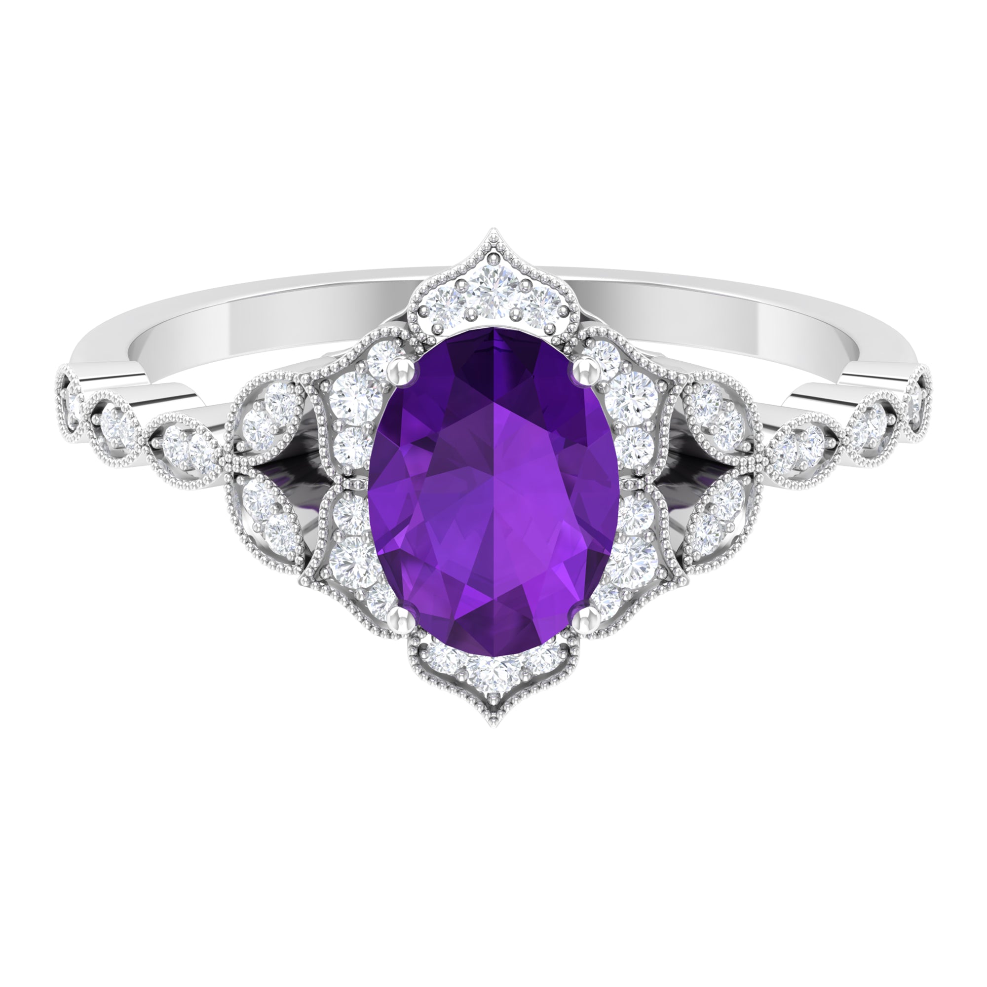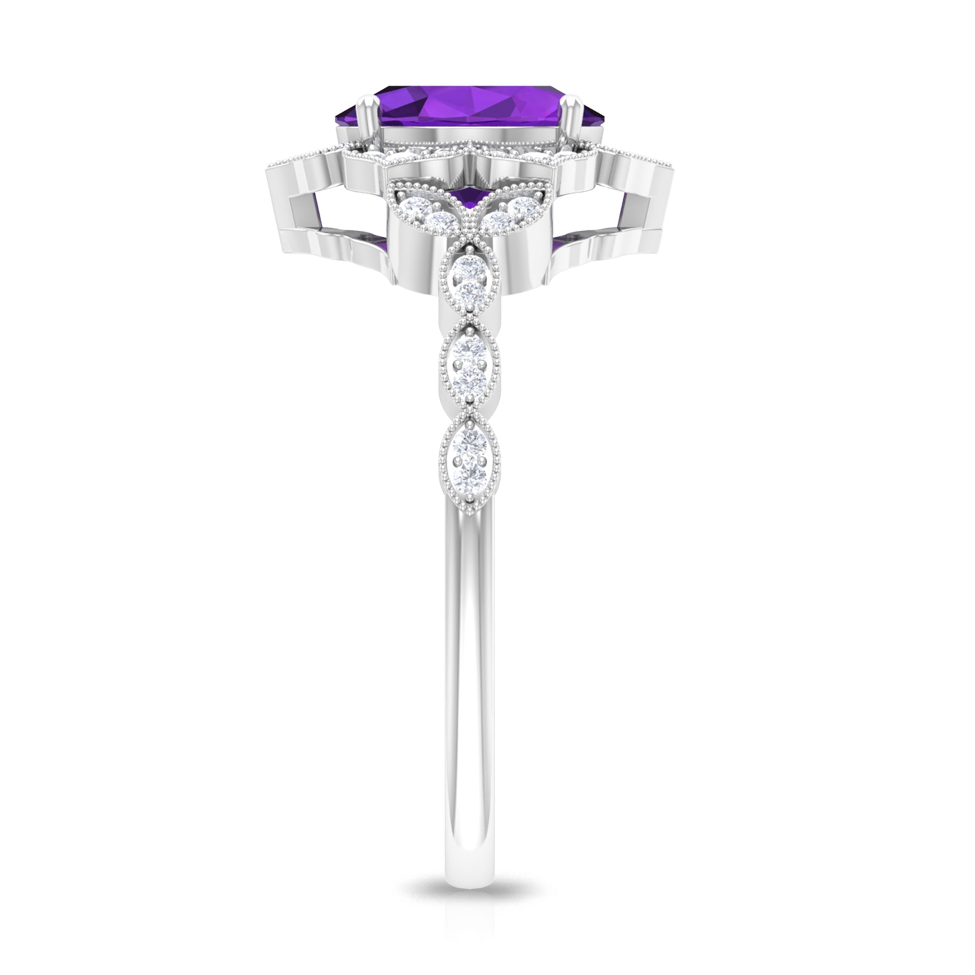 Solitaire Amethyst Engagement Ring with Diamond Accent