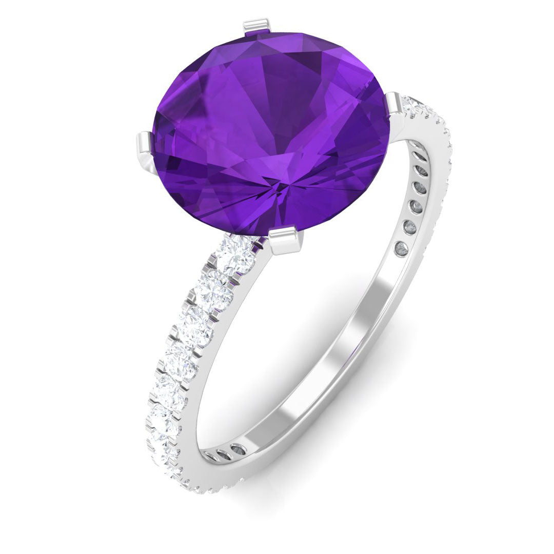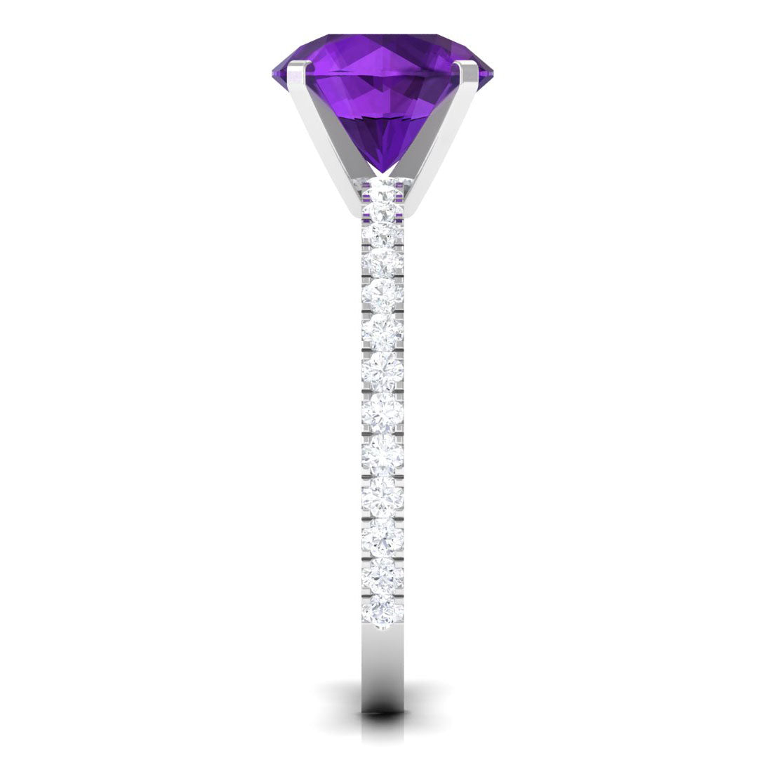 Solitaire Amethyst Engagement Ring with Diamond Side Stones