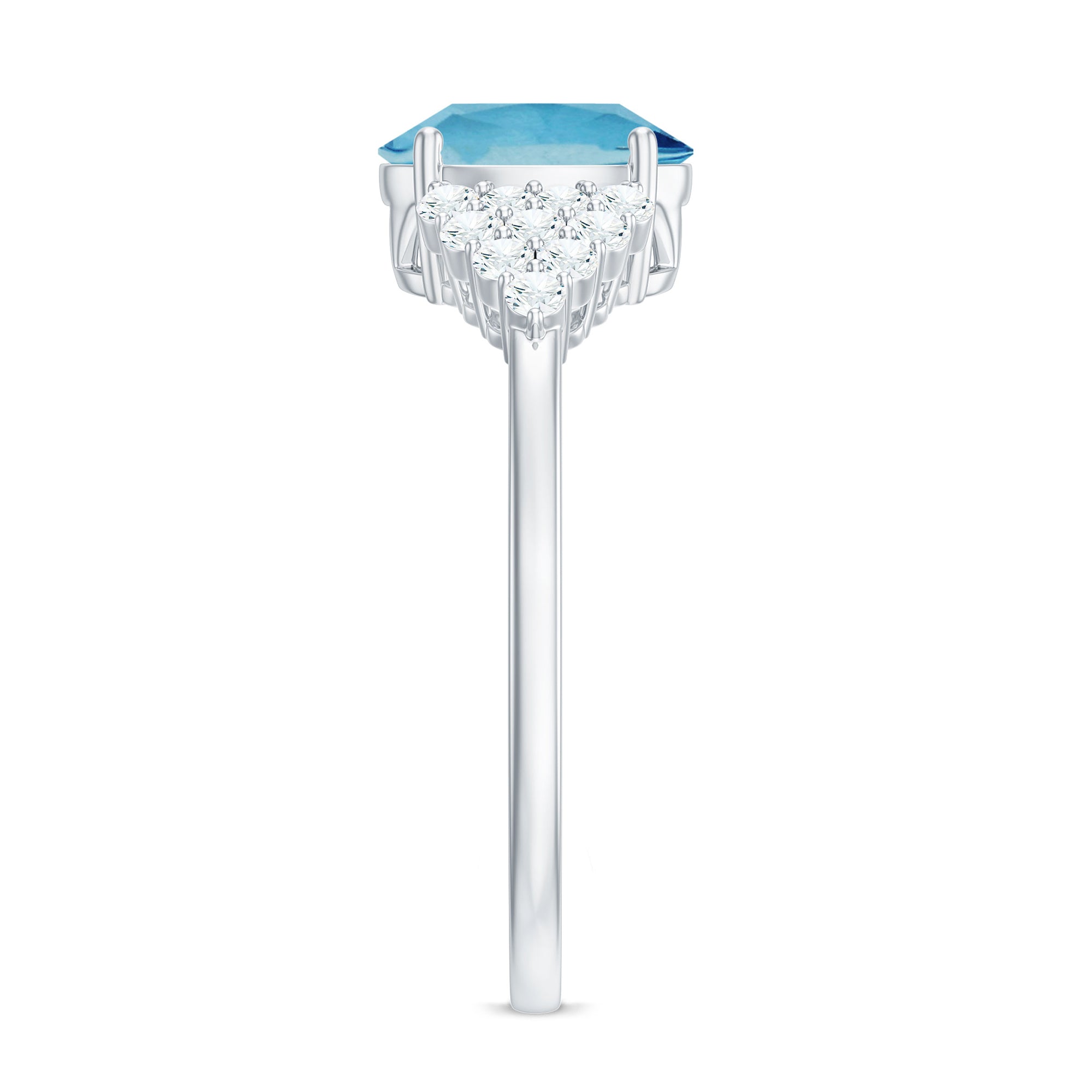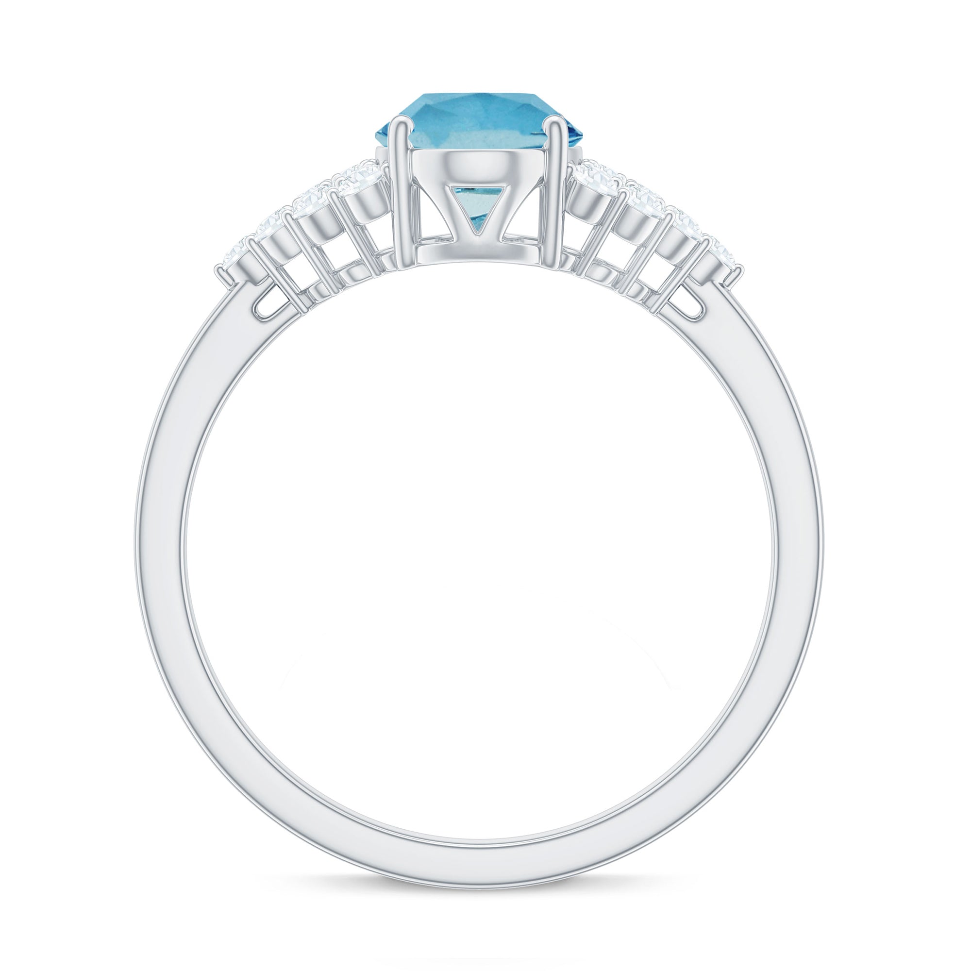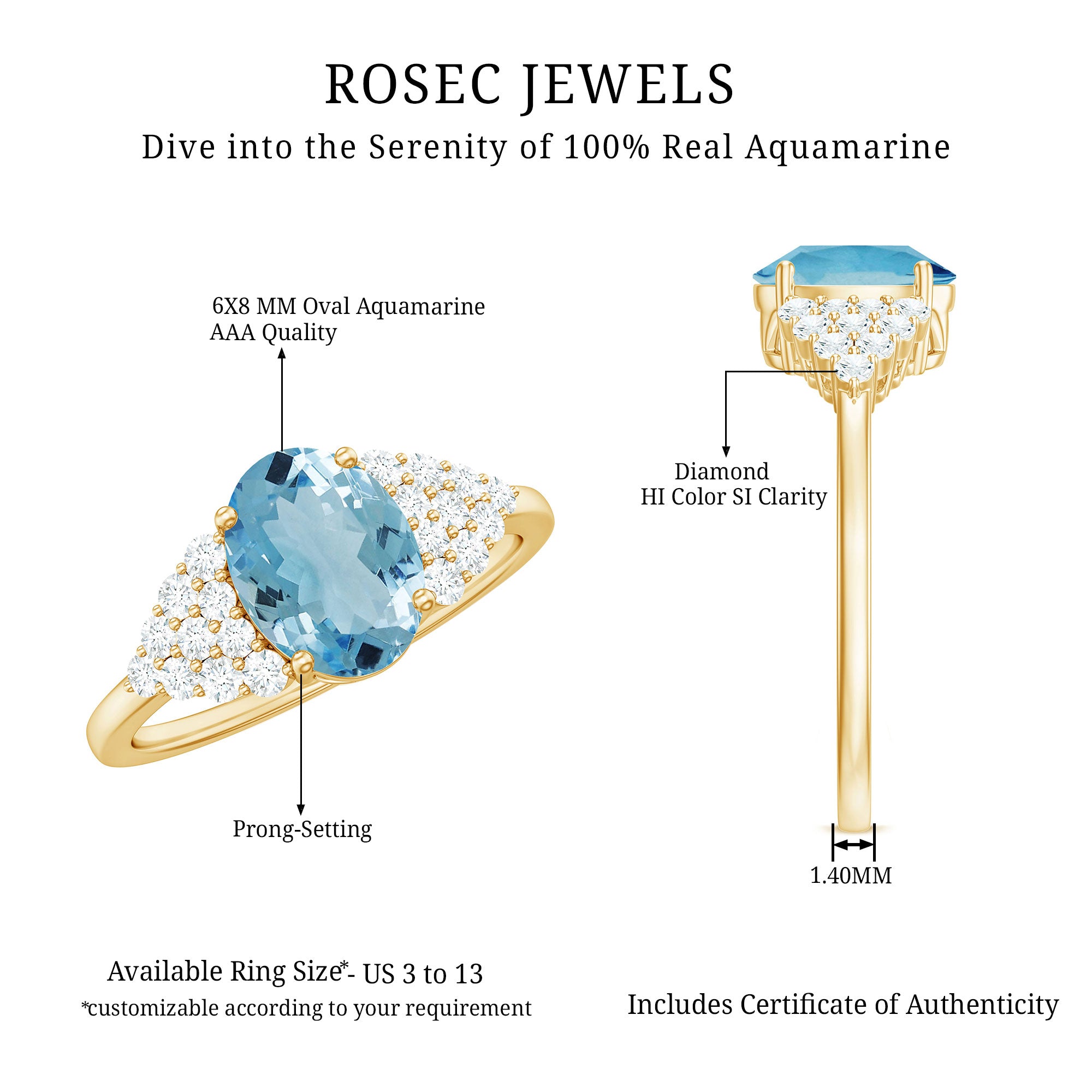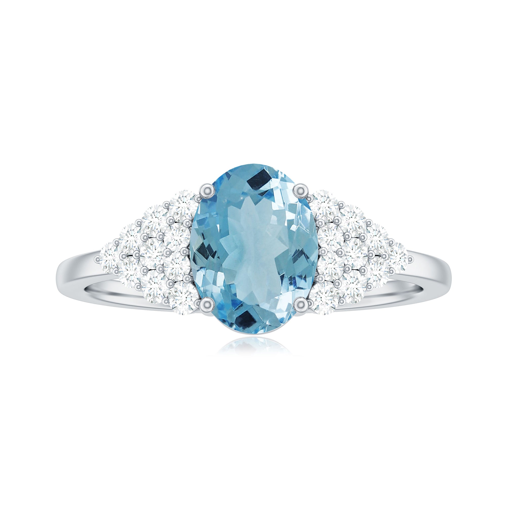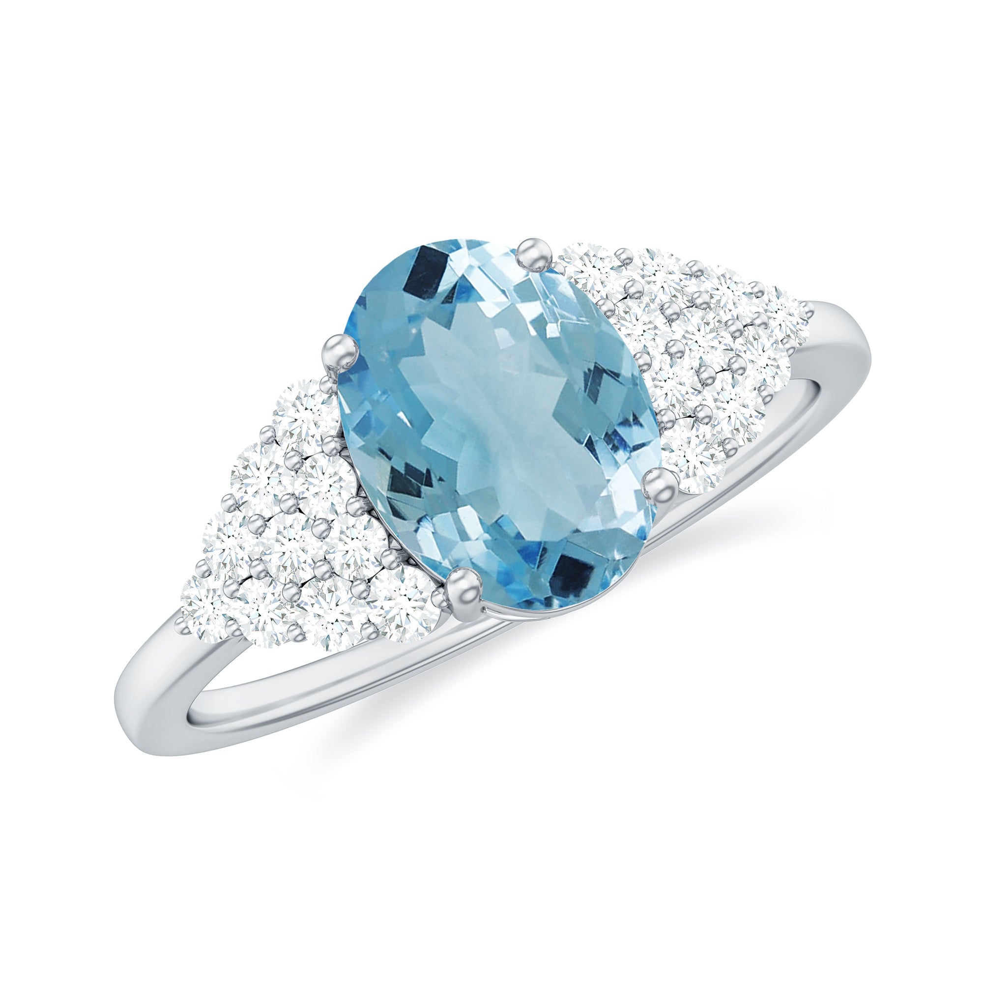 Solitaire Aquamarine Oval Engagement Ring with Diamond