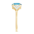 Profess your undying love for the woman of your life with this Oval Solitaire Engagement Ring. This Gold Engagement Ring is embellished with Oval Shape Aquamarine as a solitaire in a prong setting with round Diamond cluster in a prong setting. This Aquamarine Engagement Ring is available in gold metal.