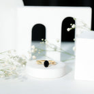 Solitaire Black Onyx Oval Engagement Ring with Diamond
