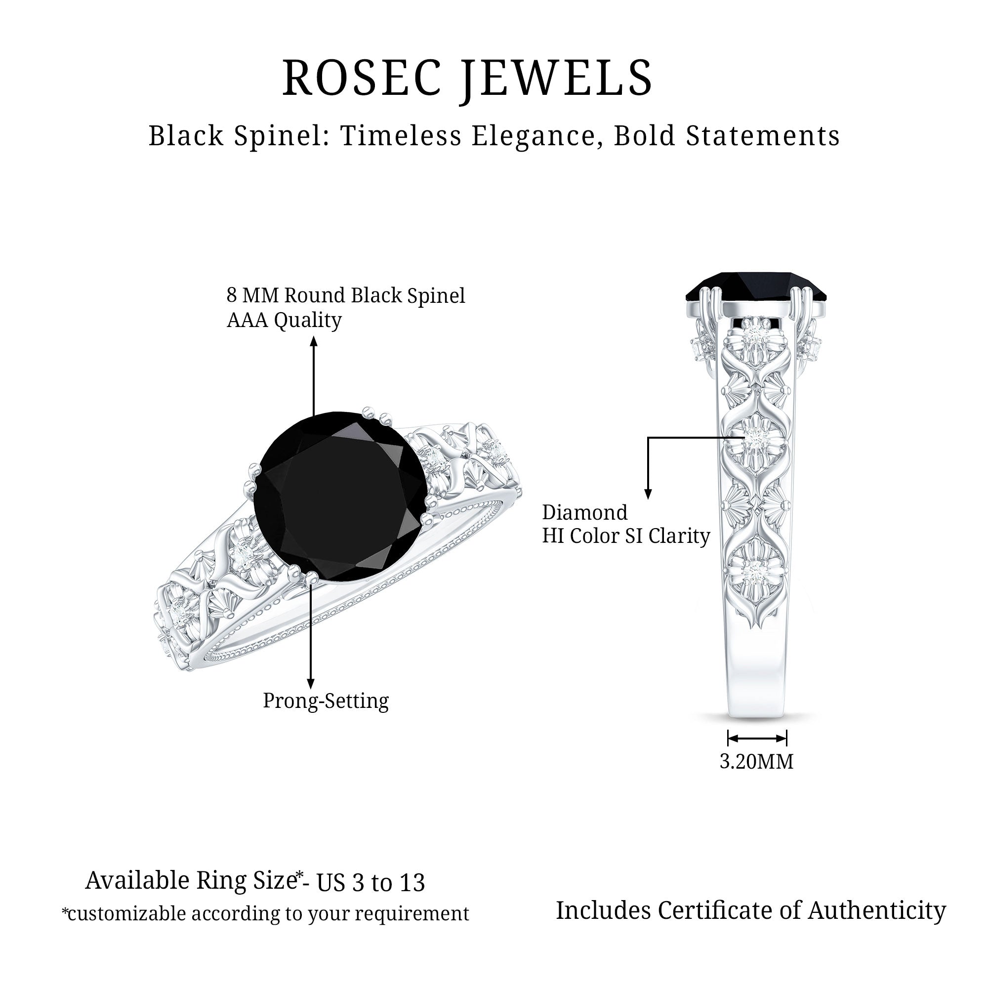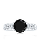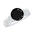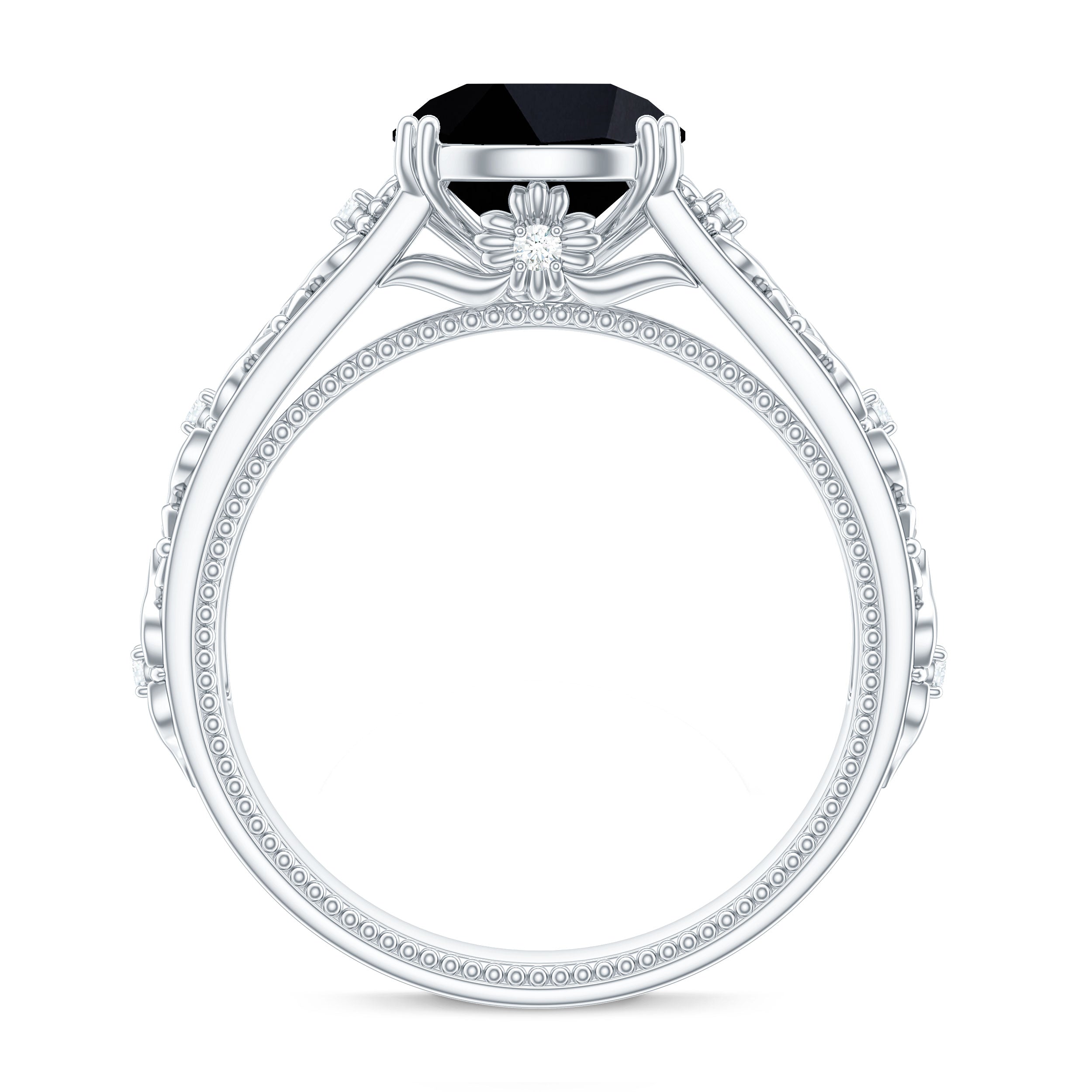 Solitaire Black Spinel Flower Engagement Ring with Diamond