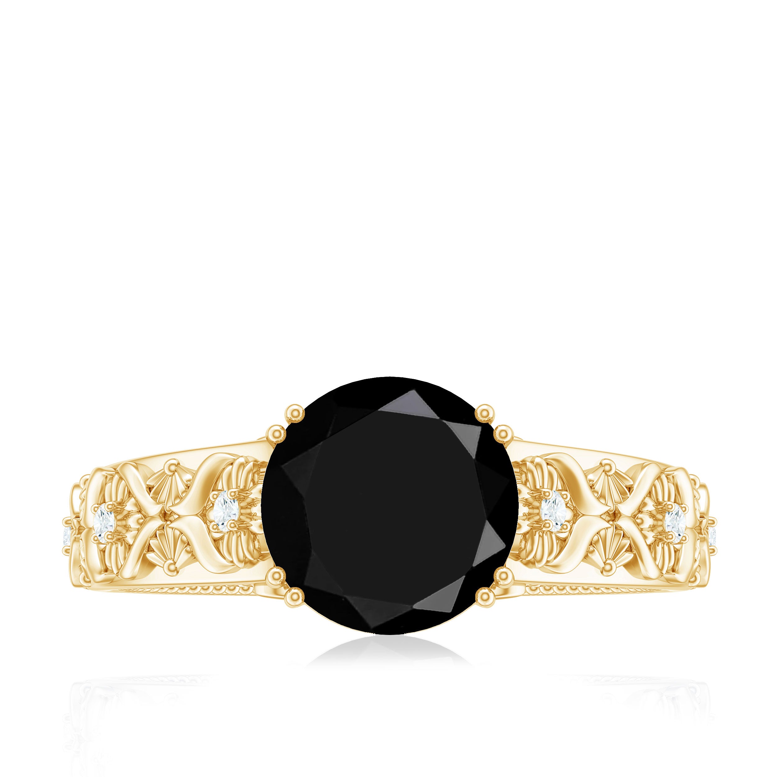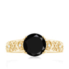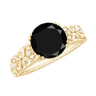 This engagement ring captures the exquisite allure of nature with its floral design. It features a Round Black Spinel as the centerpiece, accentuated by gold flowers on the band adorned with youthful and joyous Diamond stones. This vintage-style ring is available in solid gold and perfect for your special occasion.