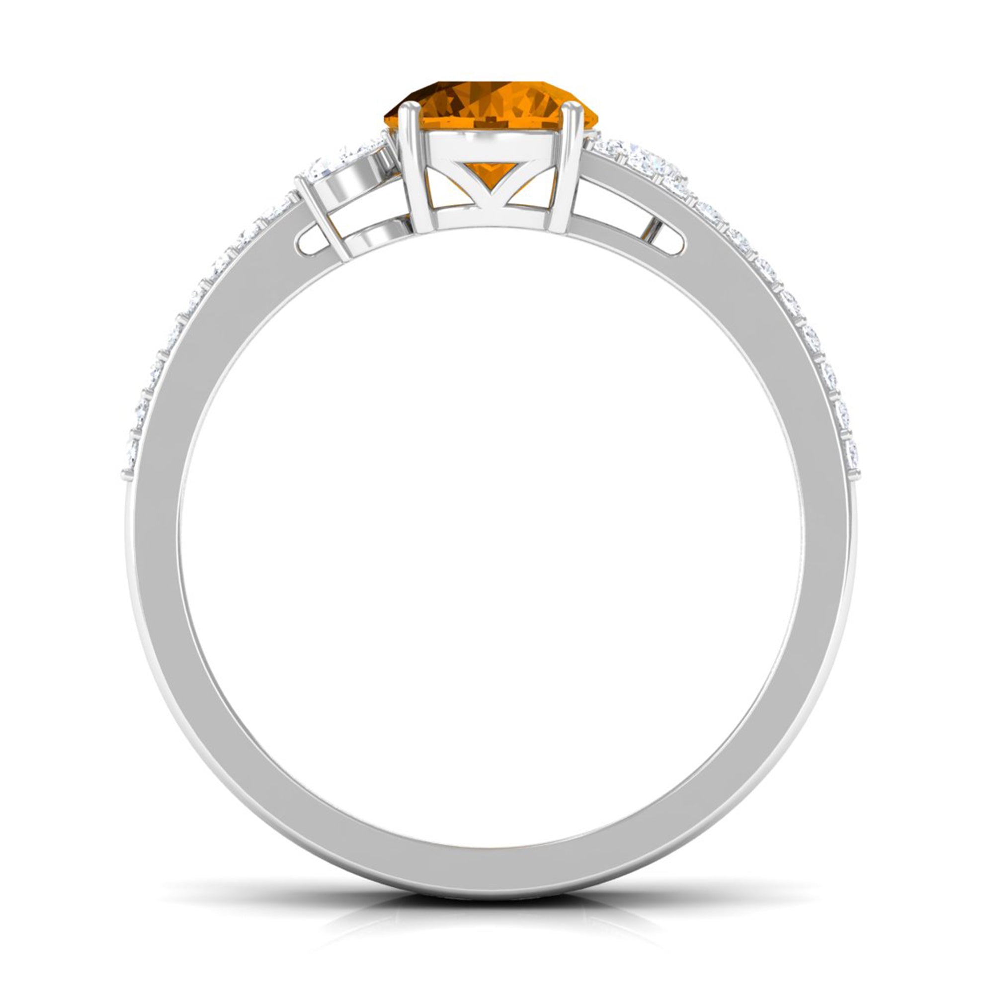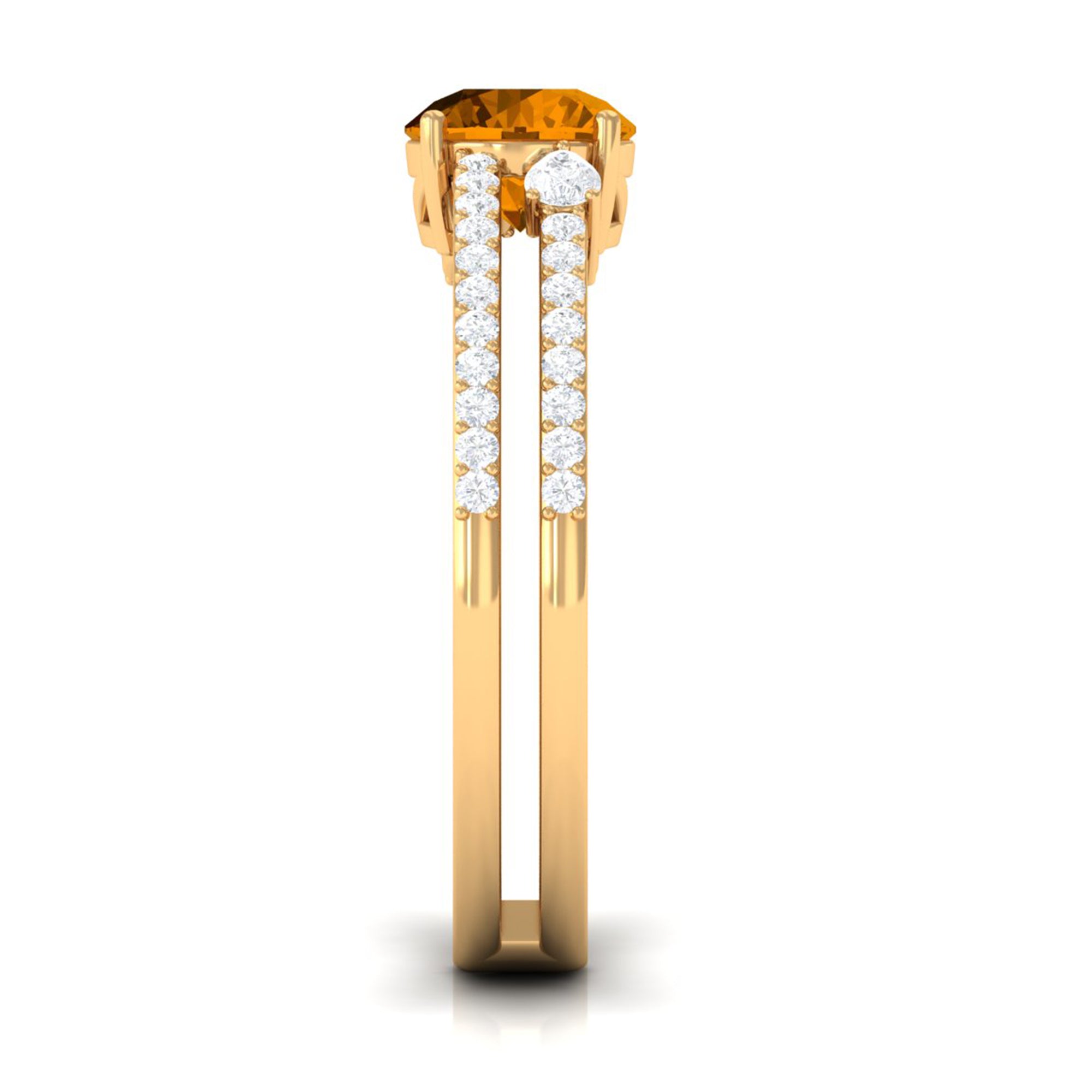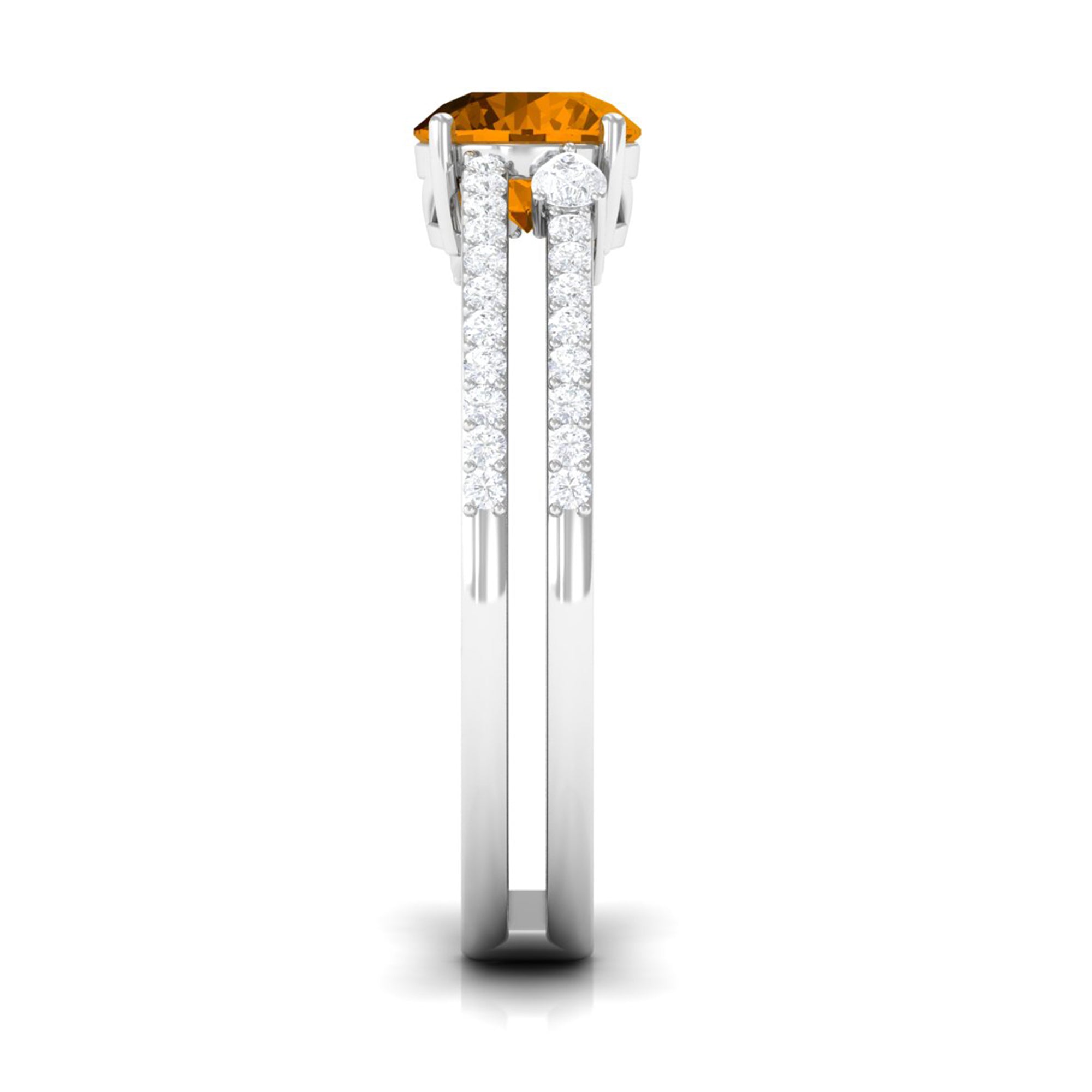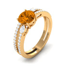 Solitaire Citrine Double Band Engagement Ring with Diamond
