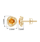 Solitaire Citrine Swirl Stud Earrings in 3 Prong Setting