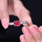 This beautiful solitaire ring features a created ruby center stone with unique Celtic knot design, accented with shimmering Diamond stone on each side. The deep red hue of the created ruby adds a touch of passion and romance to the ring, while the intricate knot design symbolizes eternal love and commitment. The shimmering Diamond stones provide a stunning contrast and add a touch of glamour and sophistication to the ring.
