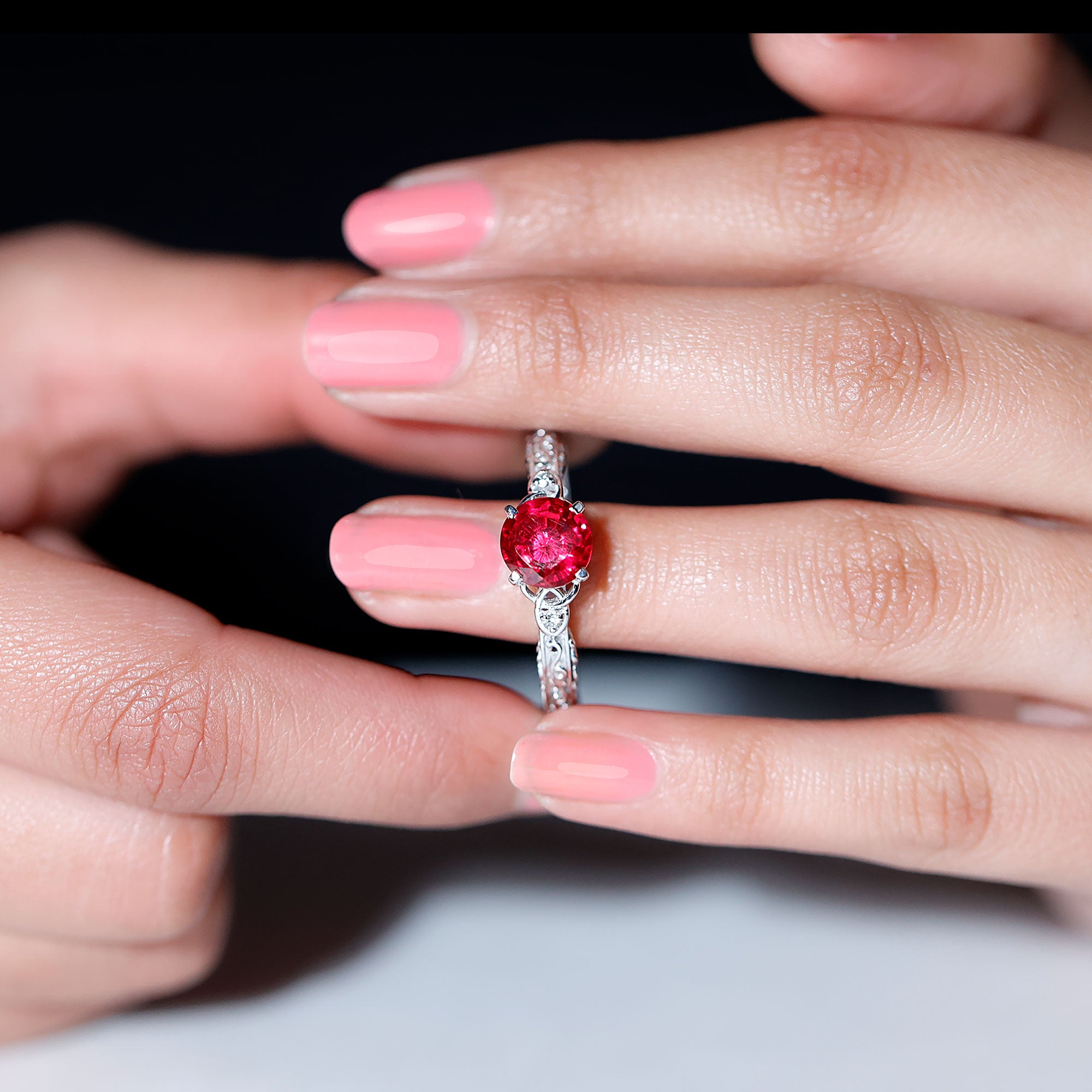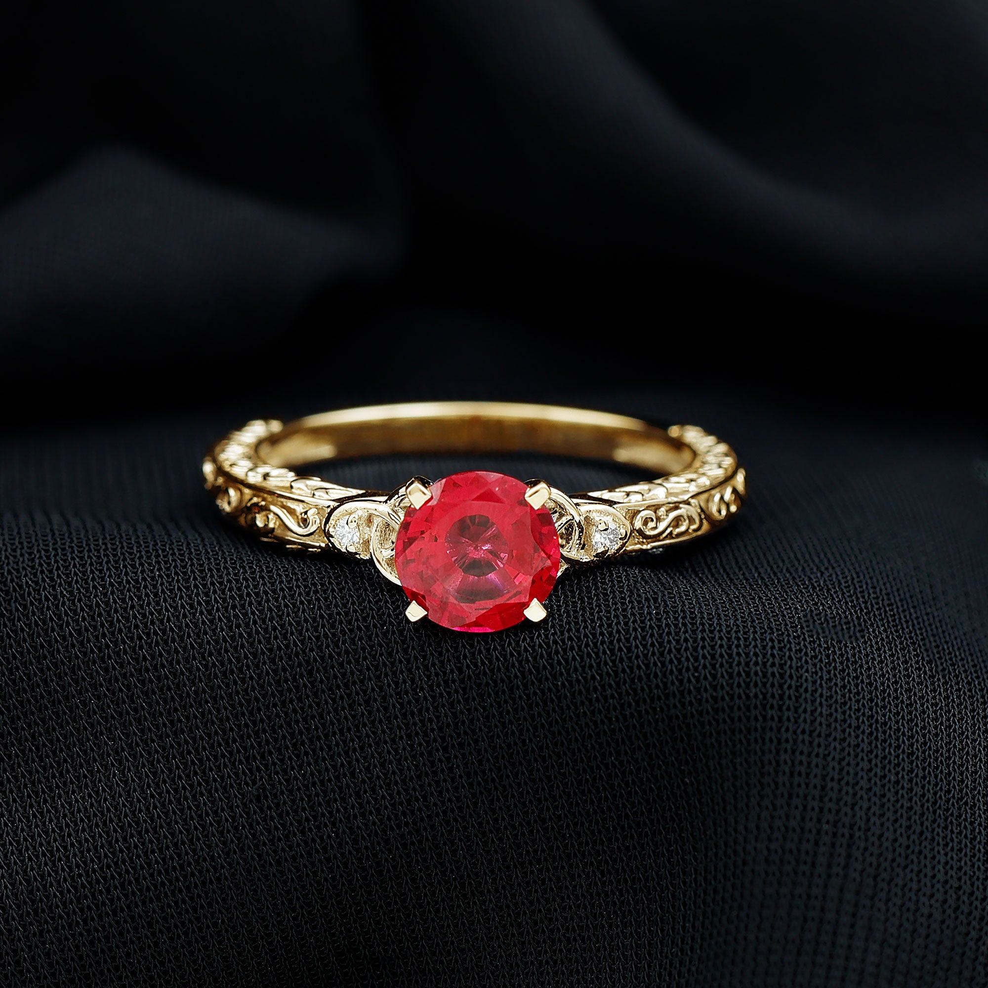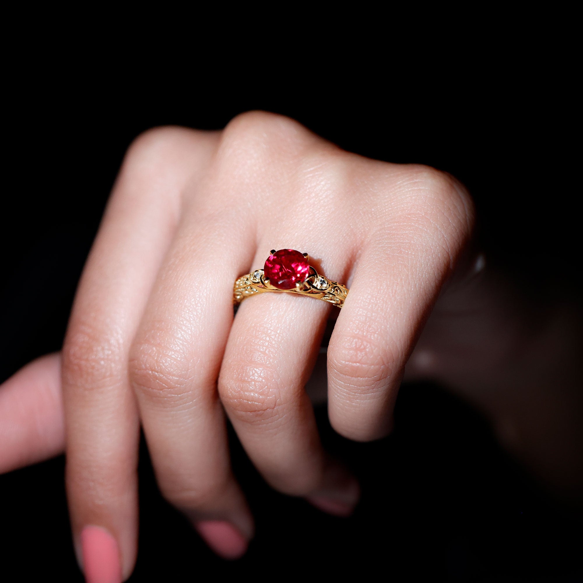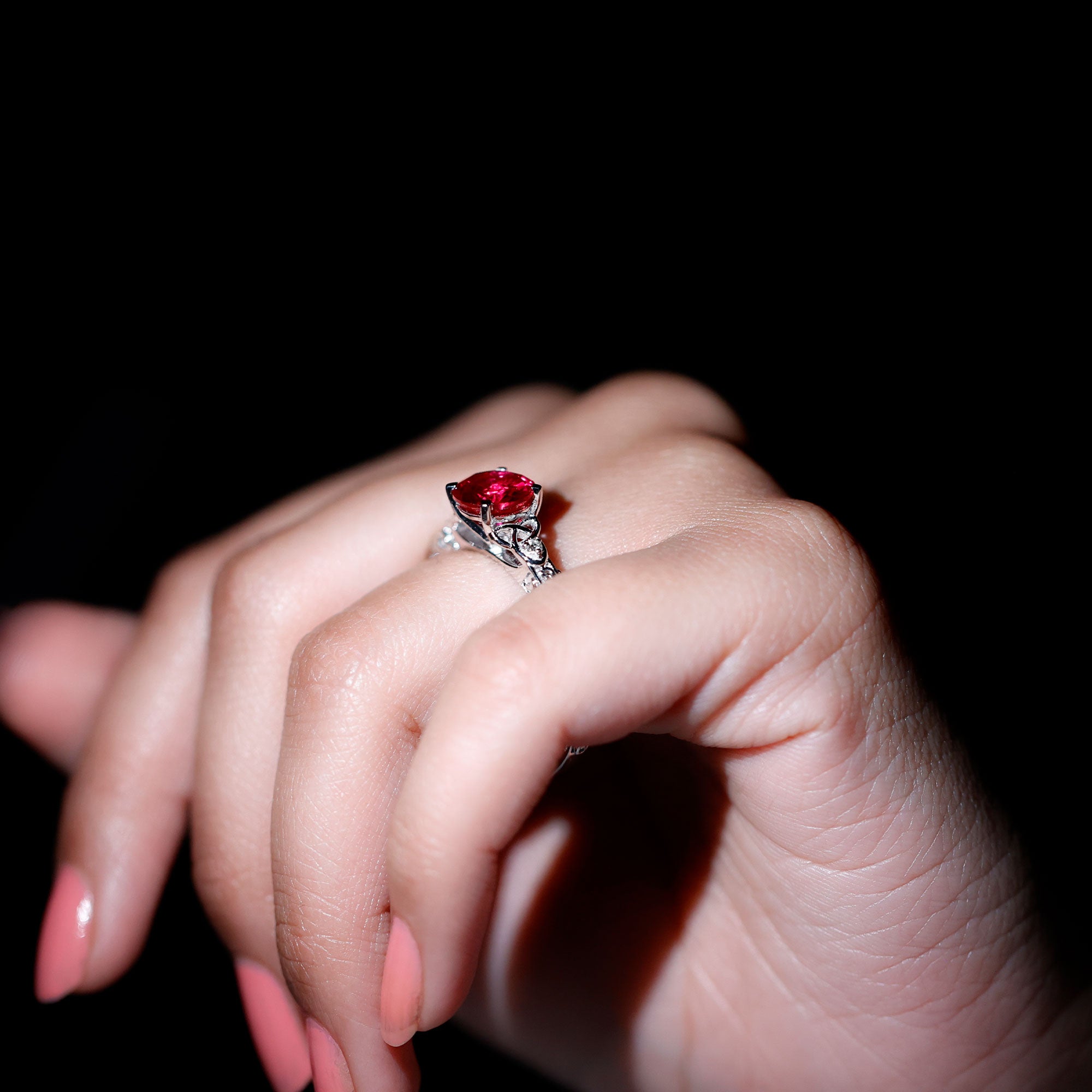 Solitaire Created Ruby Celtic Knot Ring with Diamond