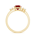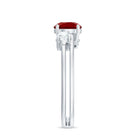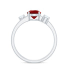 Adorned with a round shape created ruby, this dazzling ring is complemented by two round shape Diamond stones for added luster. The stones are elegantly set on a double-band shank, enhancing the classic style. If you love the 3-stone ring design, this is the perfect piece to grace your finger with dazzle and allure.