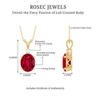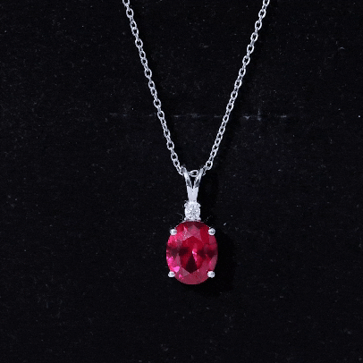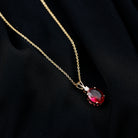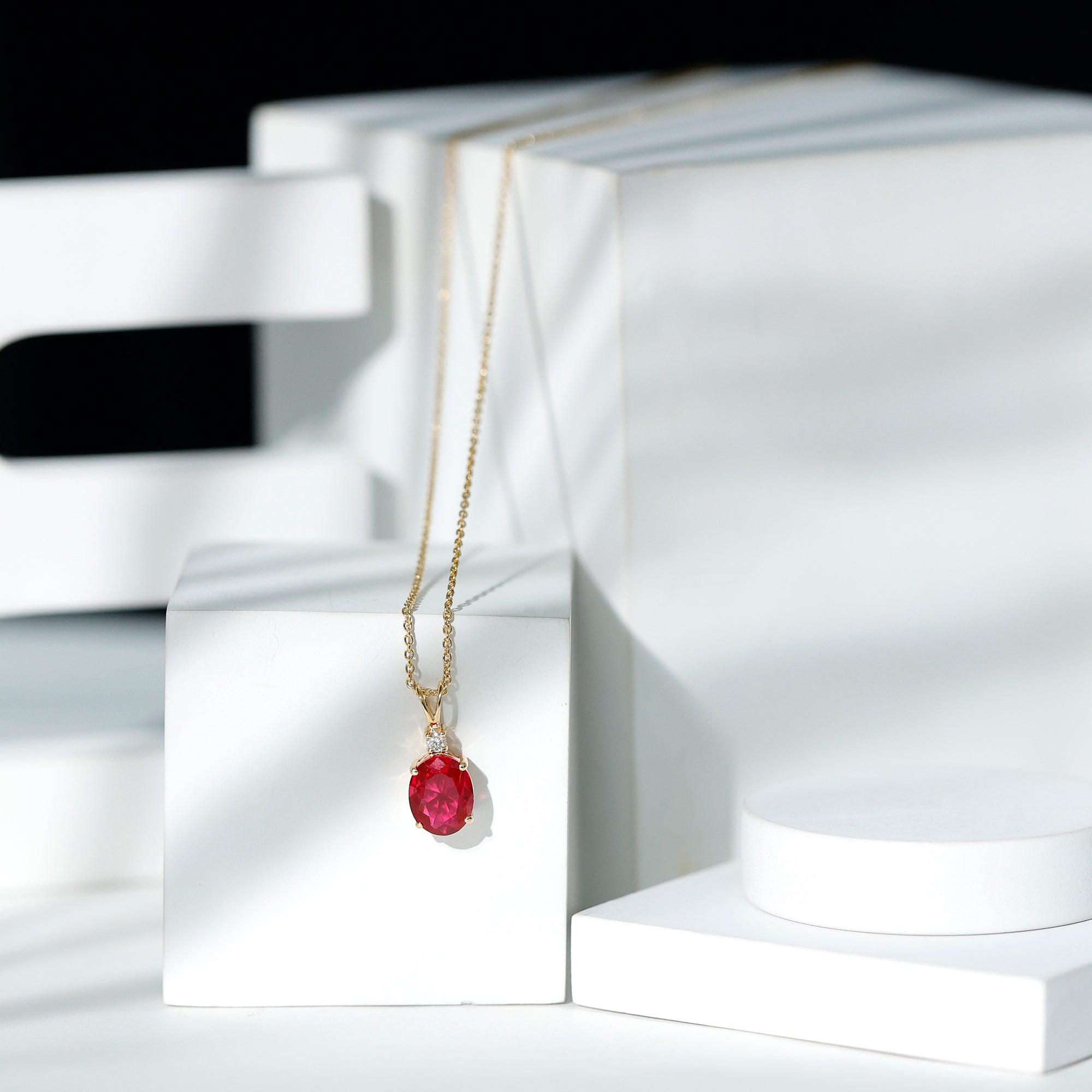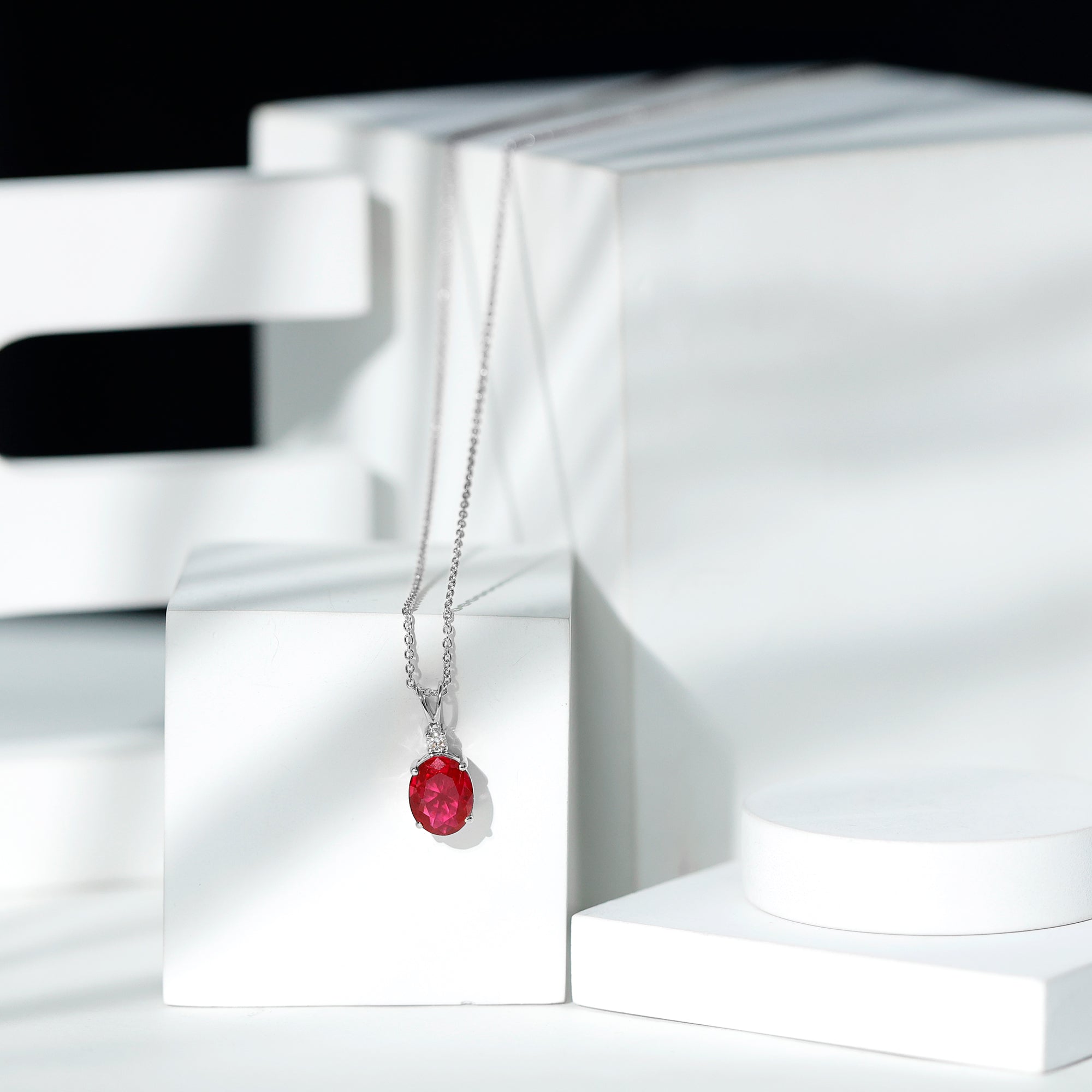 Solitaire Created Ruby Oval Pendant with Moissanite