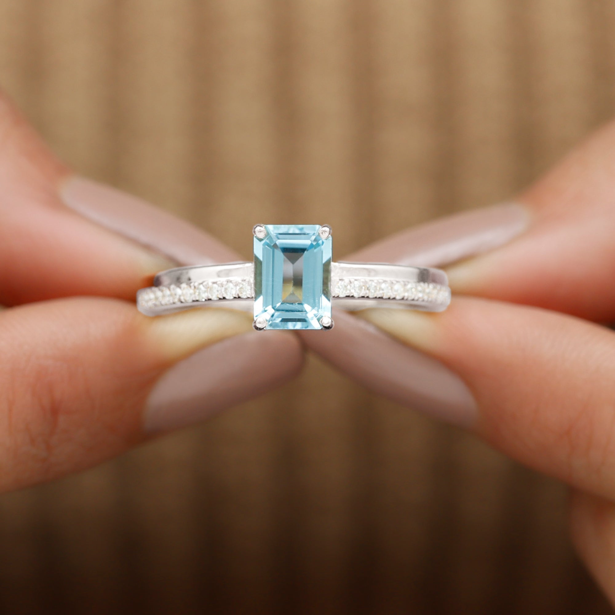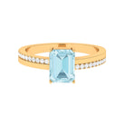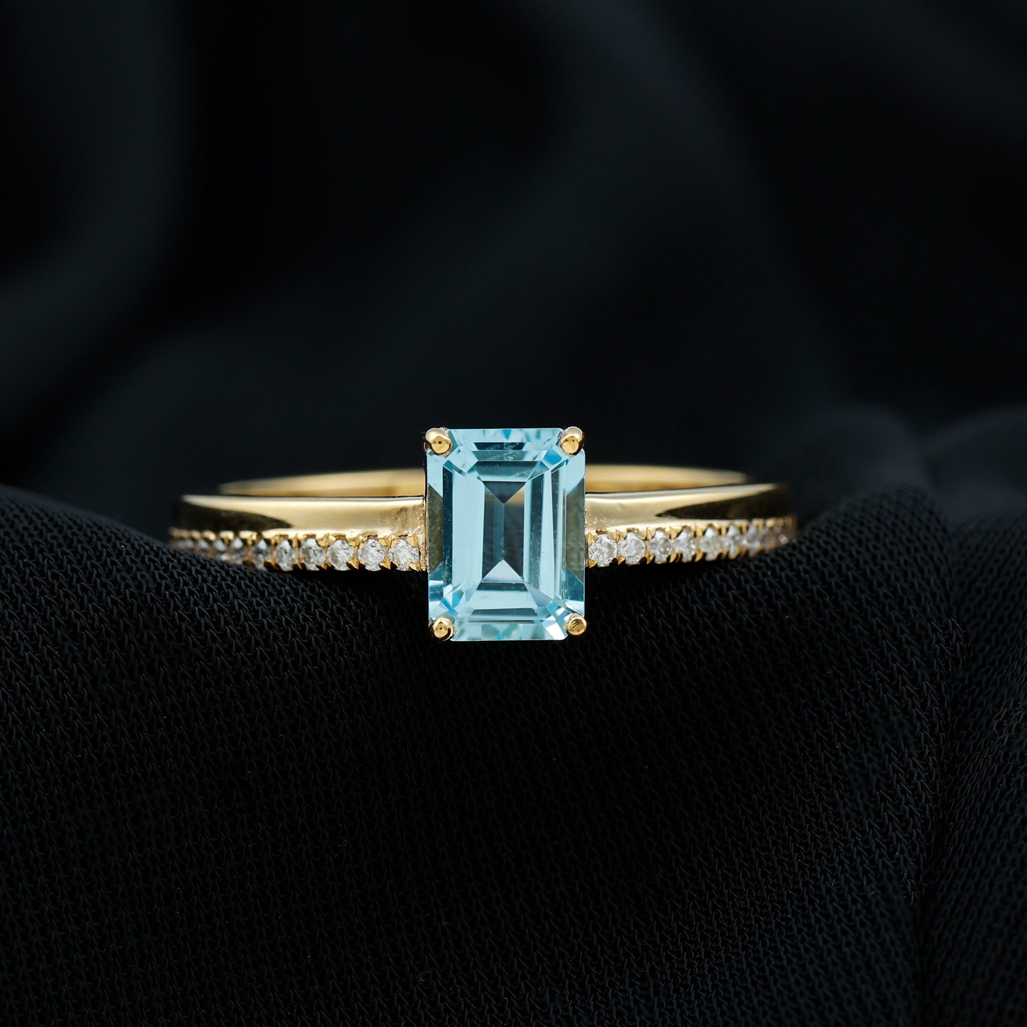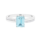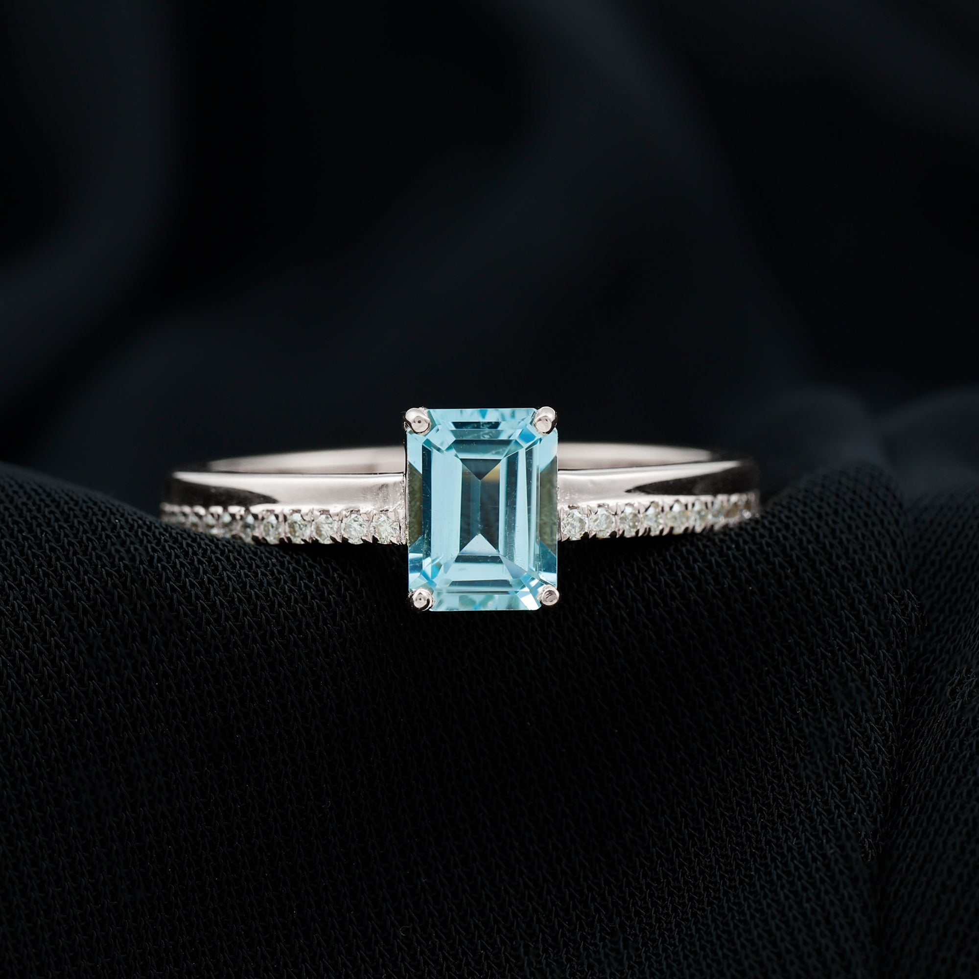 Solitaire Engagement Ring with Emerald Cut Sky Blue Topaz and Diamond