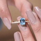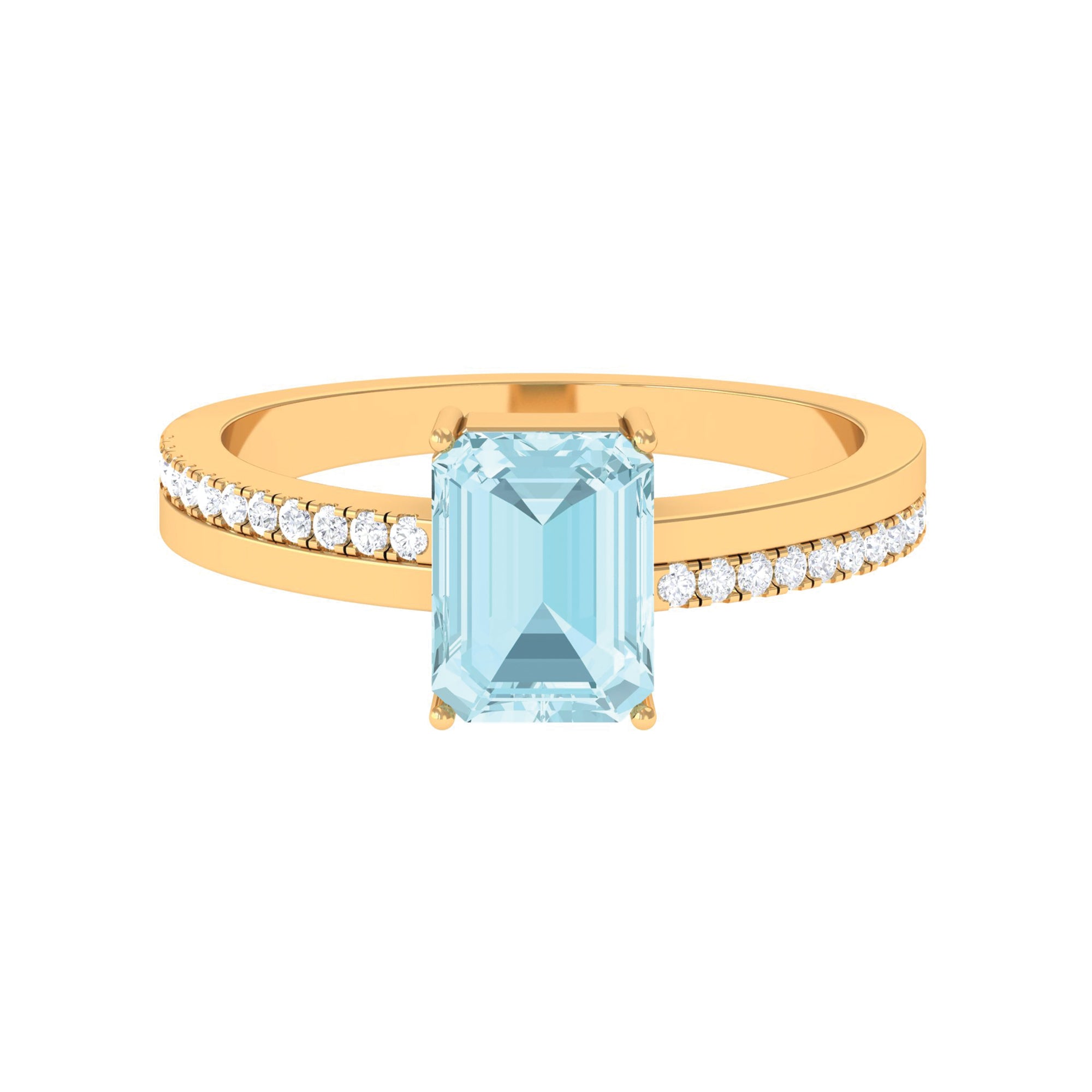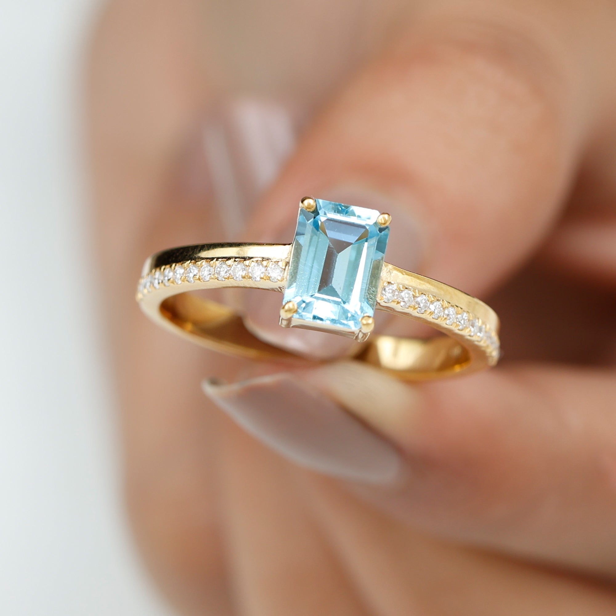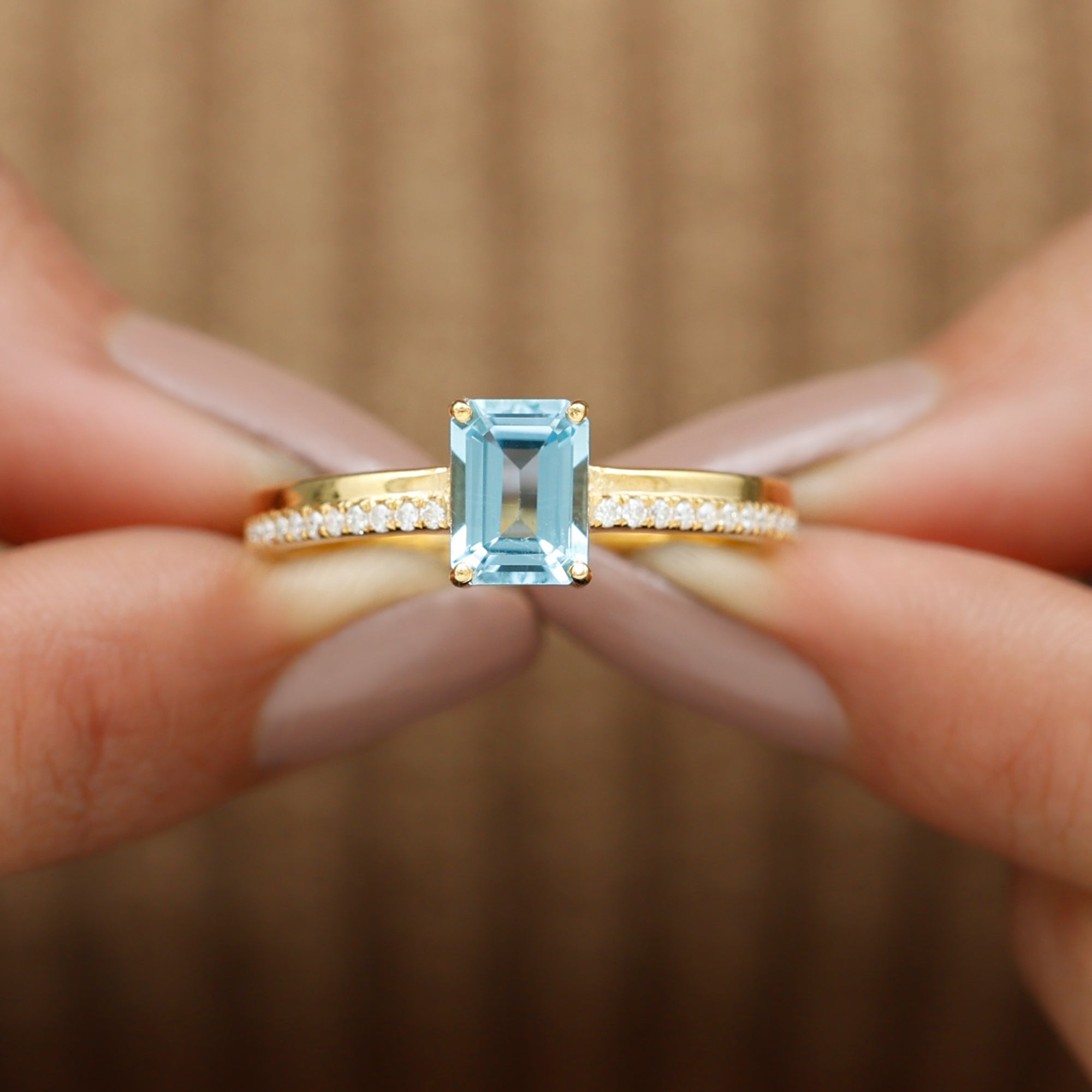 Solitaire Engagement Ring with Emerald Cut Sky Blue Topaz and Diamond