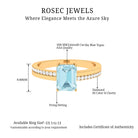 This refined solitaire ring showcases a mesmerizing emerald-cut Sky Blue Topaz gemstone, offering a modest yet exceptional present for your beloved. The gemstone elegantly occupies the center stage within a prong setting. Furthermore, round-cut Diamond gemstones partially embellish the band.
