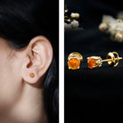 Solitaire Fire Opal Stud Earrings with Diamond Accent
