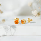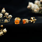 Enhance your look with these elegant gold stud earrings. Featuring a 6 MM round-shaped Fire Opal set in a Crown setting and accented with Diamond. These earrings are crafted with solid gold and are perfect for any occasion, adding a touch of elegance to any womans jewelry collection.