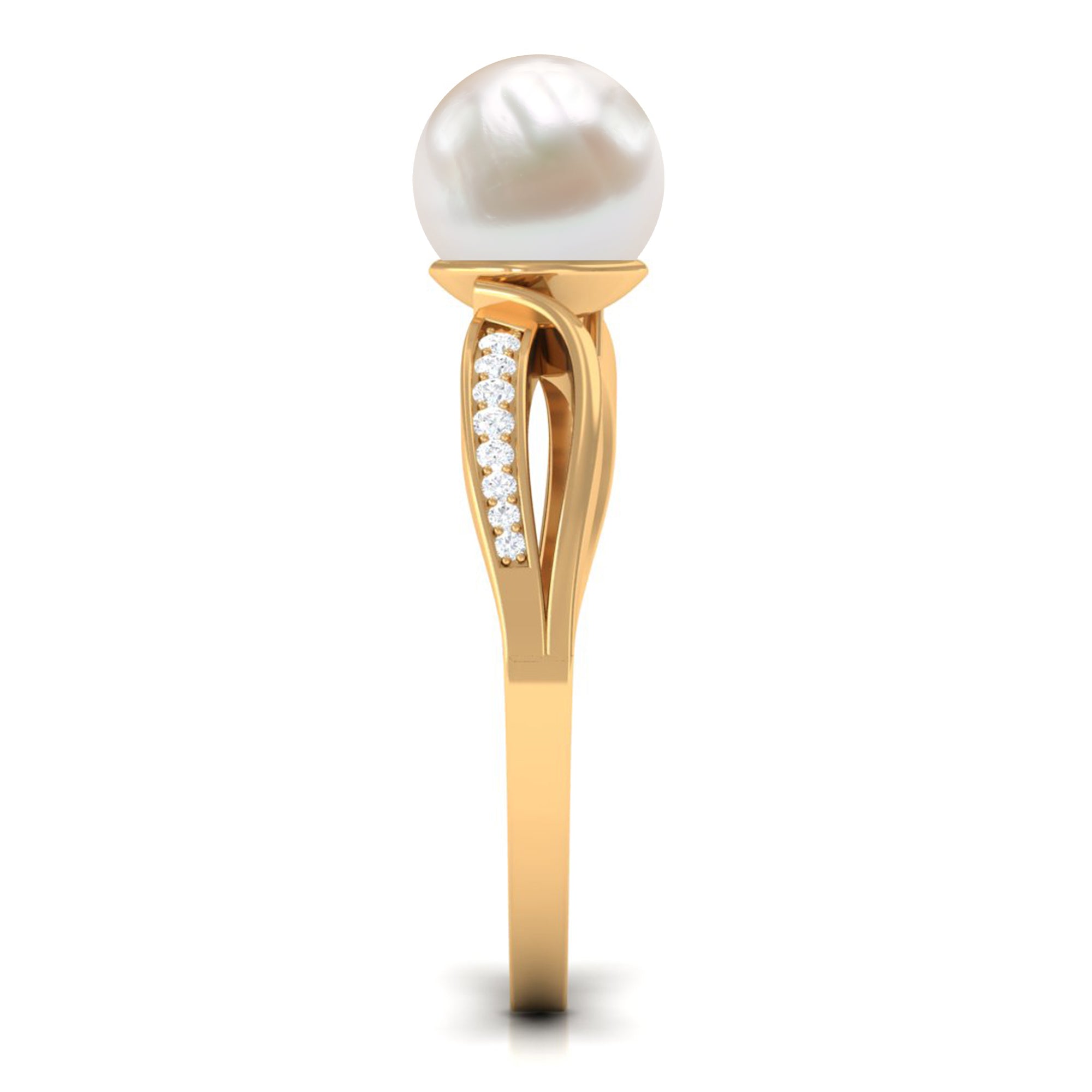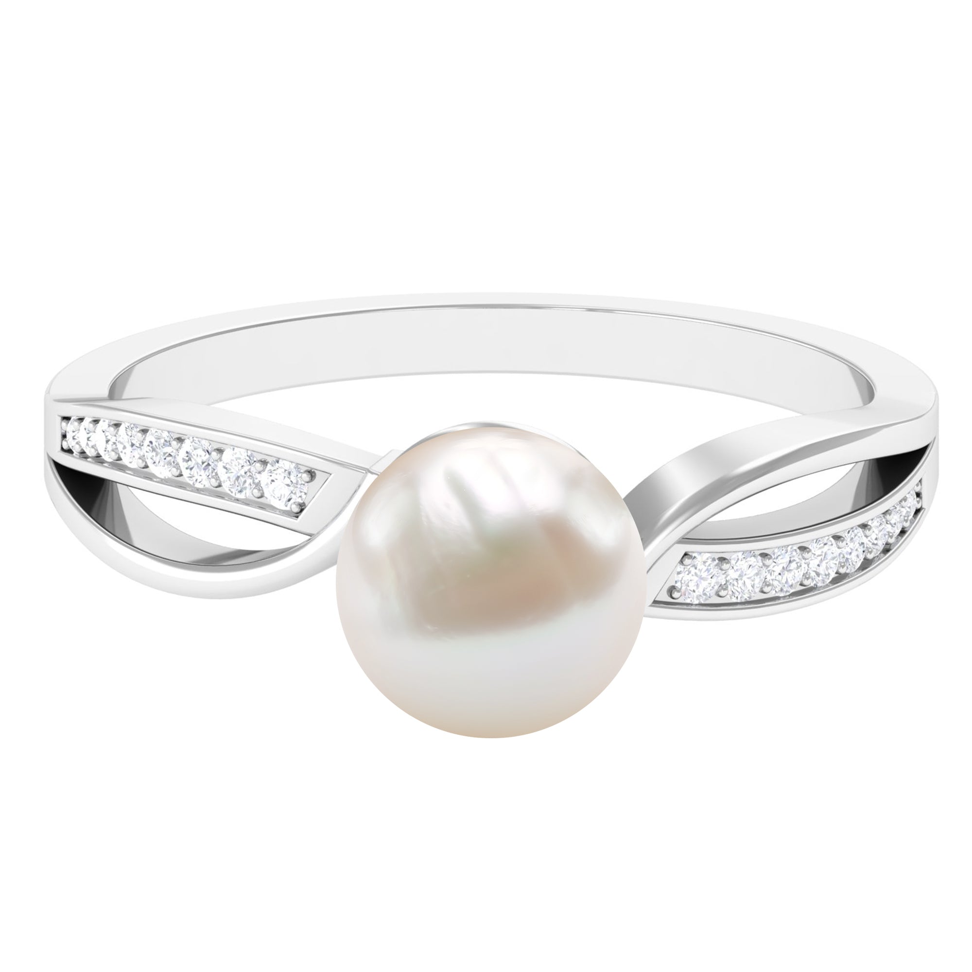 Solitaire Freshwater Pearl and Diamond Infinity Ring