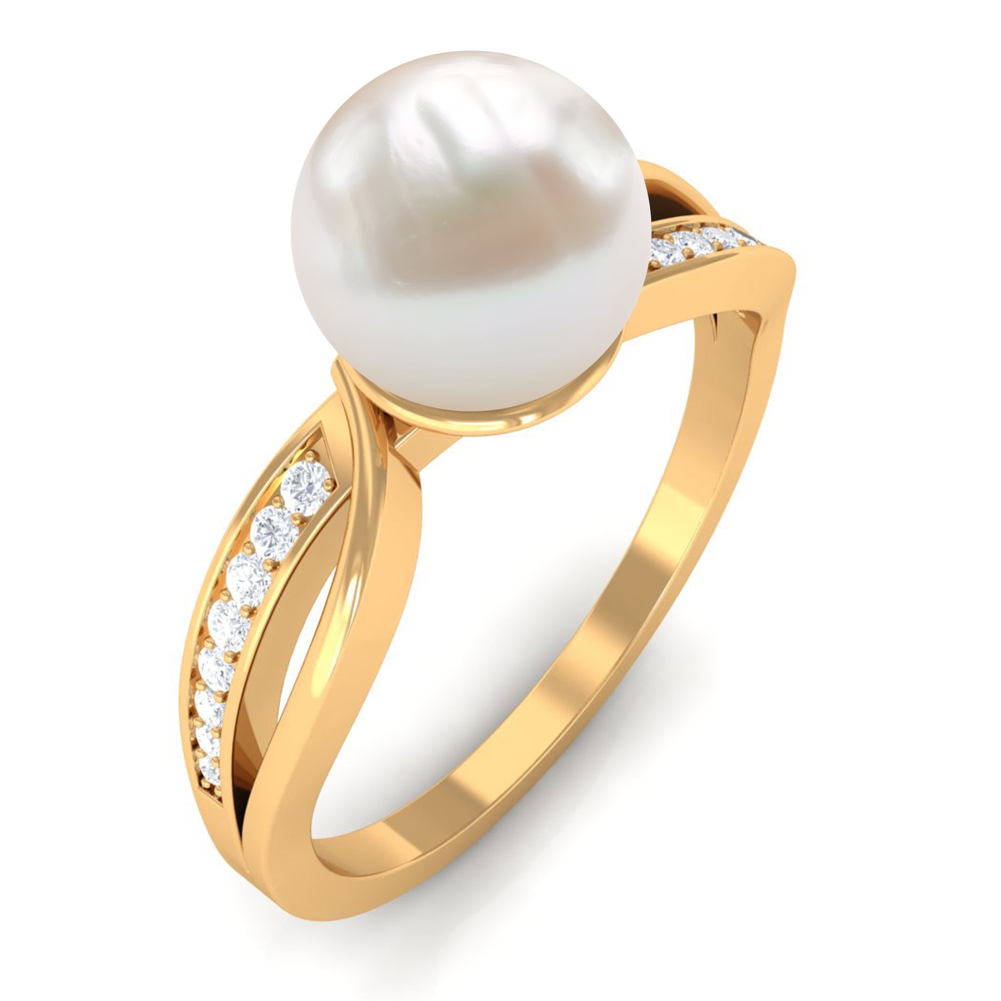 Tell her theres nothing tearing you two apart till the end of eternity with a Freshwater Pearl Solitaire Infinity Ring! Adorning it in sheer elegance is the Centerpiece of 8 MM Round Shape Freshwater Pearl with a series of side-stones of Diamond sitting atop the infinity shank to bring together the entire look with a sparkly touch. All the stones are certified for their top notch quality, making this Pearl Infinity Ring a timeless treasure.