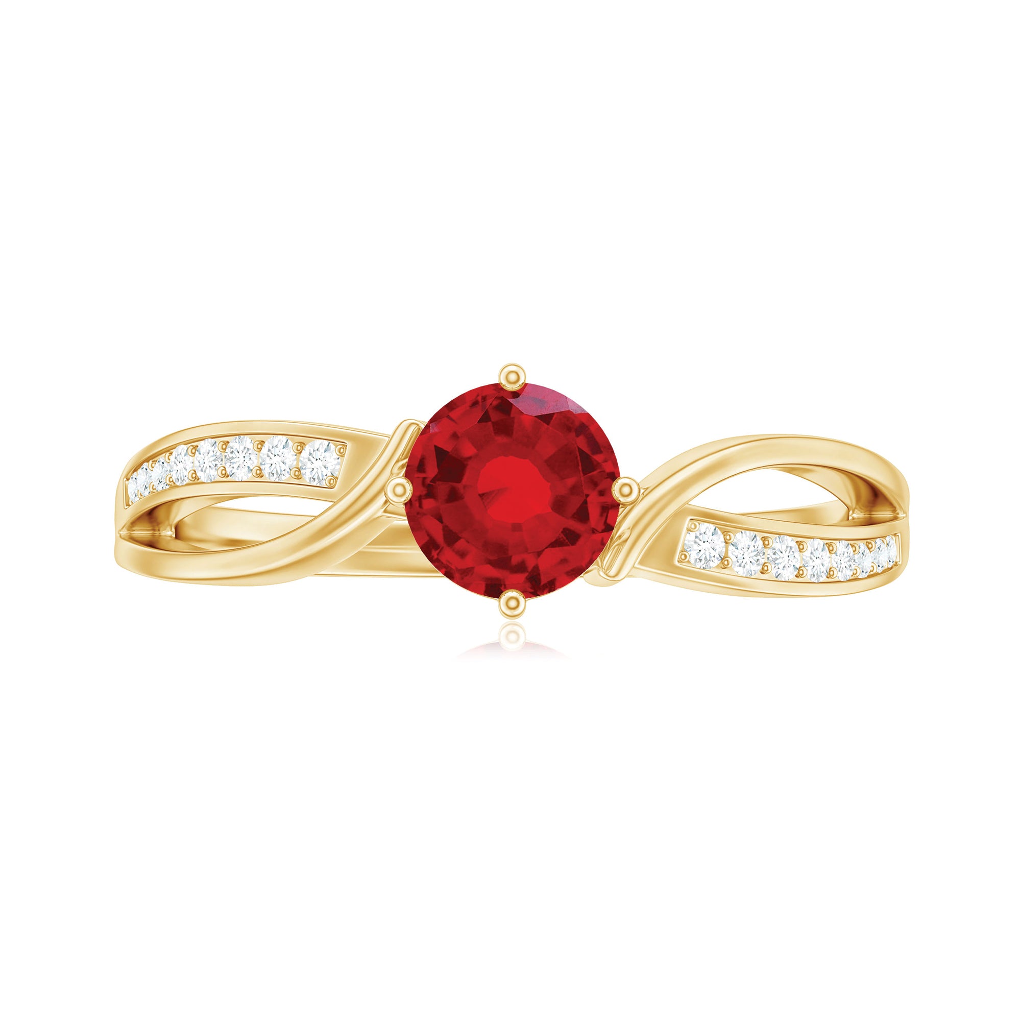 Make a statement that speaks straight from the heart with this Ruby and Diamond Engagement Ring, it is full of meaning and style. Curated with a 5 MM round lab created ruby shines brightly, set securely in 4-Prong-Diagonal-Setting. The infinity shaped band adds a special touch, decorated with sparkling diamonds that wrap around, symbolizing endless love and connection. This Infinity Engagement Ring is not just beautiful, it is a promise and a symbol of commitment that leaves a lasting impression. Perfect as a pre-engagement or promise ring, its simple yet powerful design makes it a piece you can wear every day or save for those meaningful moments. The combination of the rich red ruby and shimmering diamonds creates a look that is both classic and modern, fitting effortlessly with any outfit. This infinity band represents a strong bond and an unbreakable connection between two people. Crafted with care and attention to quality, the Lab Created Ruby Engagement Ring tells a story of love that lasts forever. Whether you are giving it as a gift or treating yourself, this Ruby Solitaire Ring is a beautiful way to show how deep your feelings truly are.