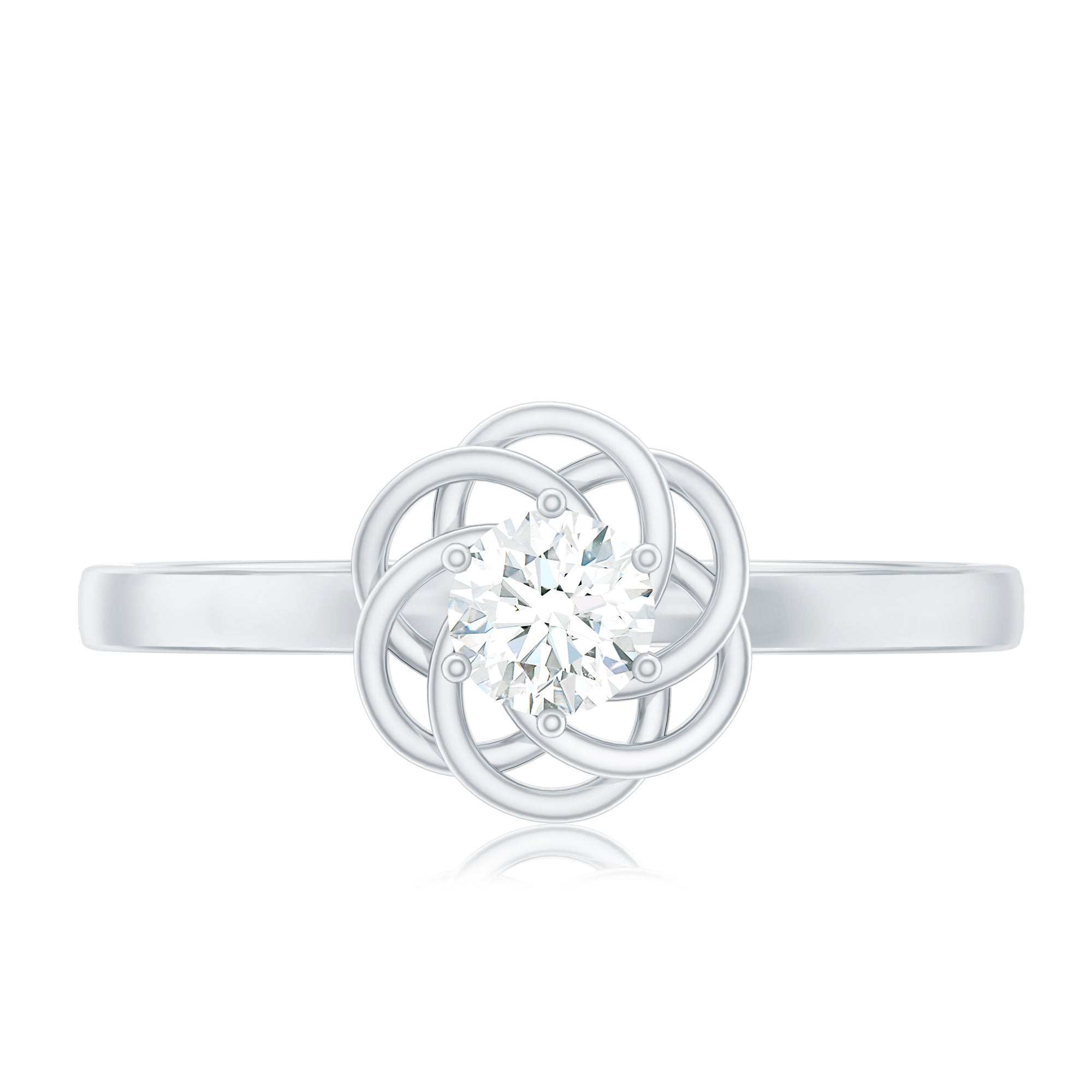 Step into a world of romance with a Flower Diamond Ring that tells a story of love, growth, and beauty. At the center of the design is a sparkling 4 MM round lab grown diamond, placed in prong setting and surrounded by interlocked metal curves that create a beautiful flower design. The Diamond Proposal Ring takes inspiration from nature and turns it into something meaningful. The floral pattern brings a gentle, elegant feel, while the simple solitaire style keeps the design classic and timeless. It is a beautiful way to express love in a thoughtful style that feels both unique and personal. Made with EF-VS quality lab grown diamond, the center stone shines with high clarity and color, offering the same brilliance as a mined diamond. Whether it is for a proposal or simply to show how much you care, the Lab Grown Diamond Promise Ring for Her holds a quiet magic that speaks of true love. With its floral shape, high quality lab diamond, and soft romantic details, this Solitaire Ring is a lovely symbol of a love that keeps blooming with time.