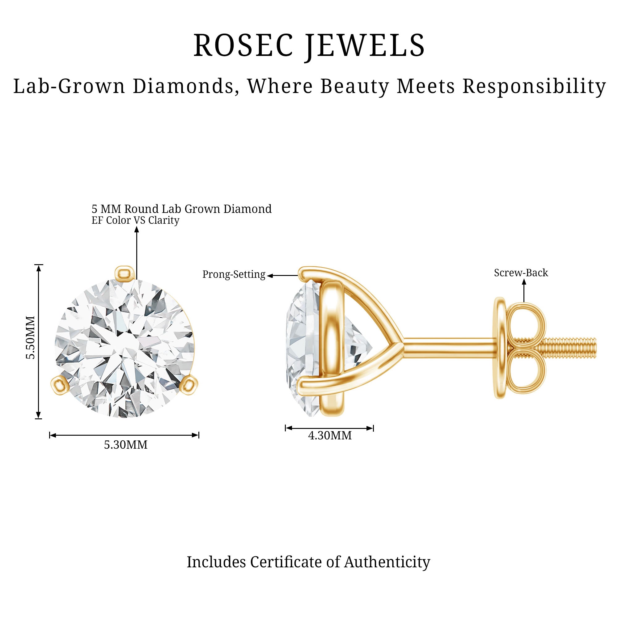 These earrings feature lab grown diamonds created without traditional mining. Their environmental impact varies by production and energy source. Lab grown diamonds share the same fundamental physical and optical characteristics as mined diamonds, including durability appropriate for everyday jewelry.
