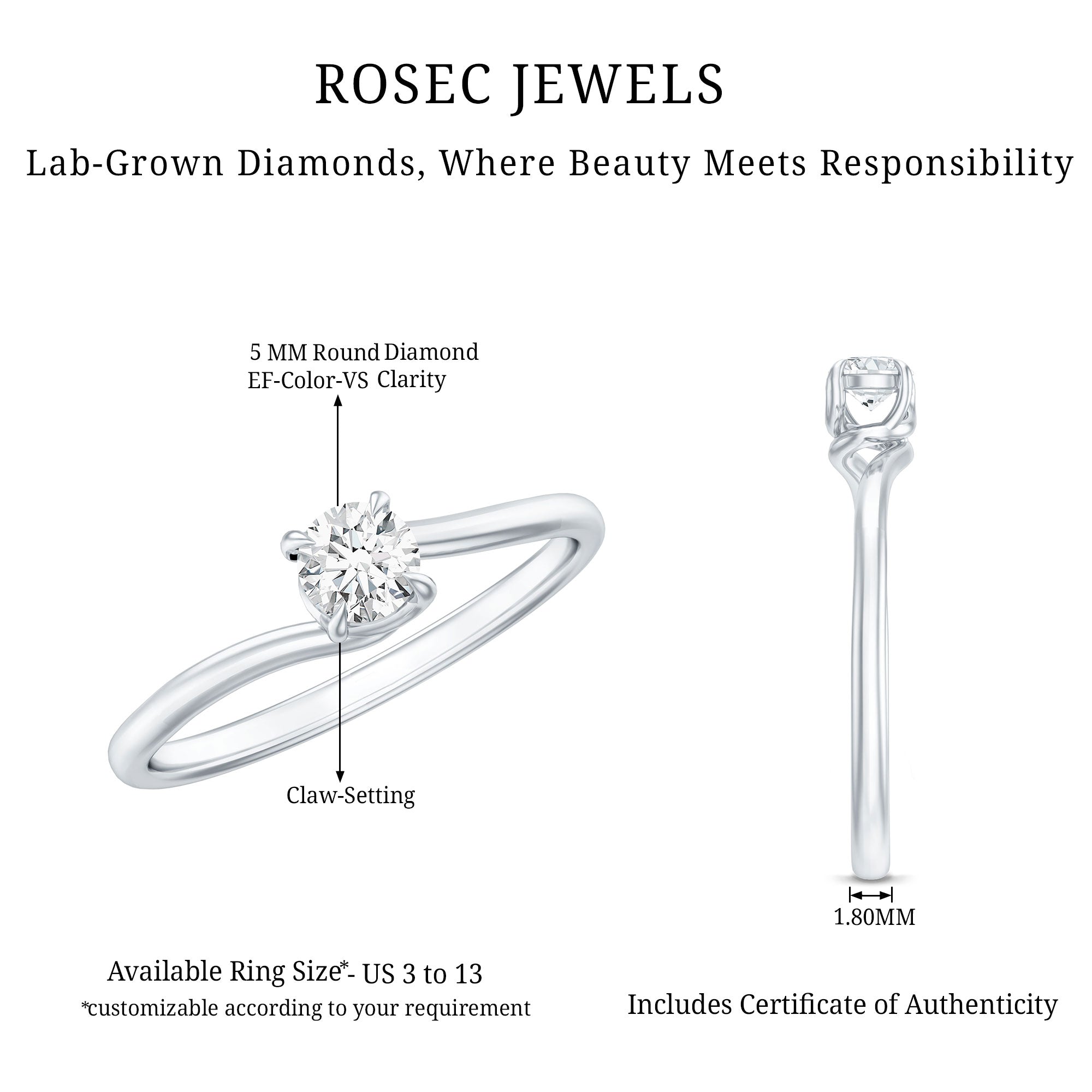 The Solitaire Lab Grown Diamond Promise Ring is designed to represent commitment in its most refined form. Centered around a single diamond, the design focuses on clarity, balance, and symbolism, making it an ideal choice for marking personal milestones, relationships, or meaningful moments.