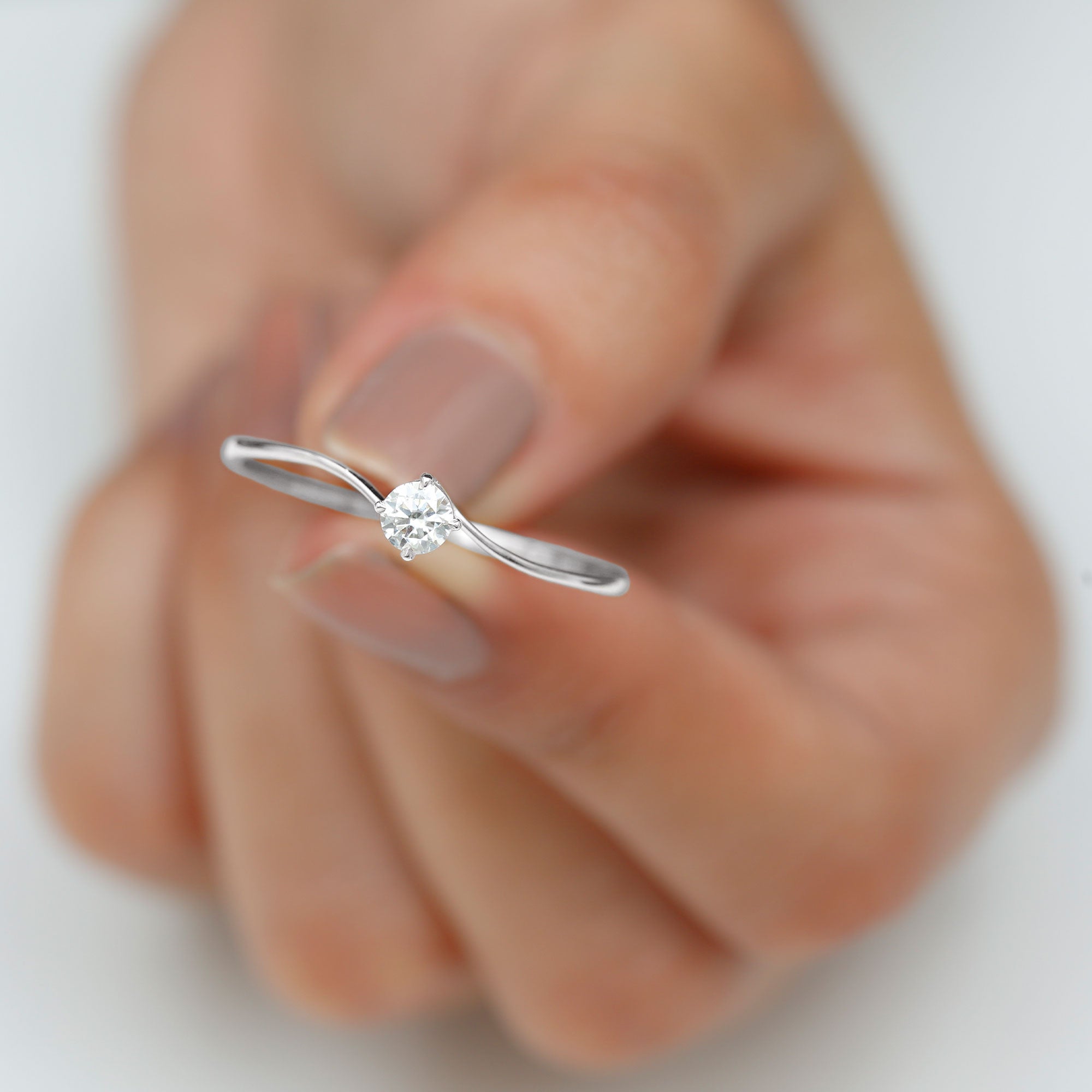 Promise her the kind of love that would forever sparkle as bright as this Lab Grown Diamond Promise Ring. Effortlessly stealing all the attention is the centerpiece of 5 MM Round Shape Lab Grown Diamond that is secured by 4 Claw Prong Twist Setting. Adding a twist of contemporary touch to it, Bypass Shank uniquely puts together the look of this Lab Grown Diamond Solitaire Ring.